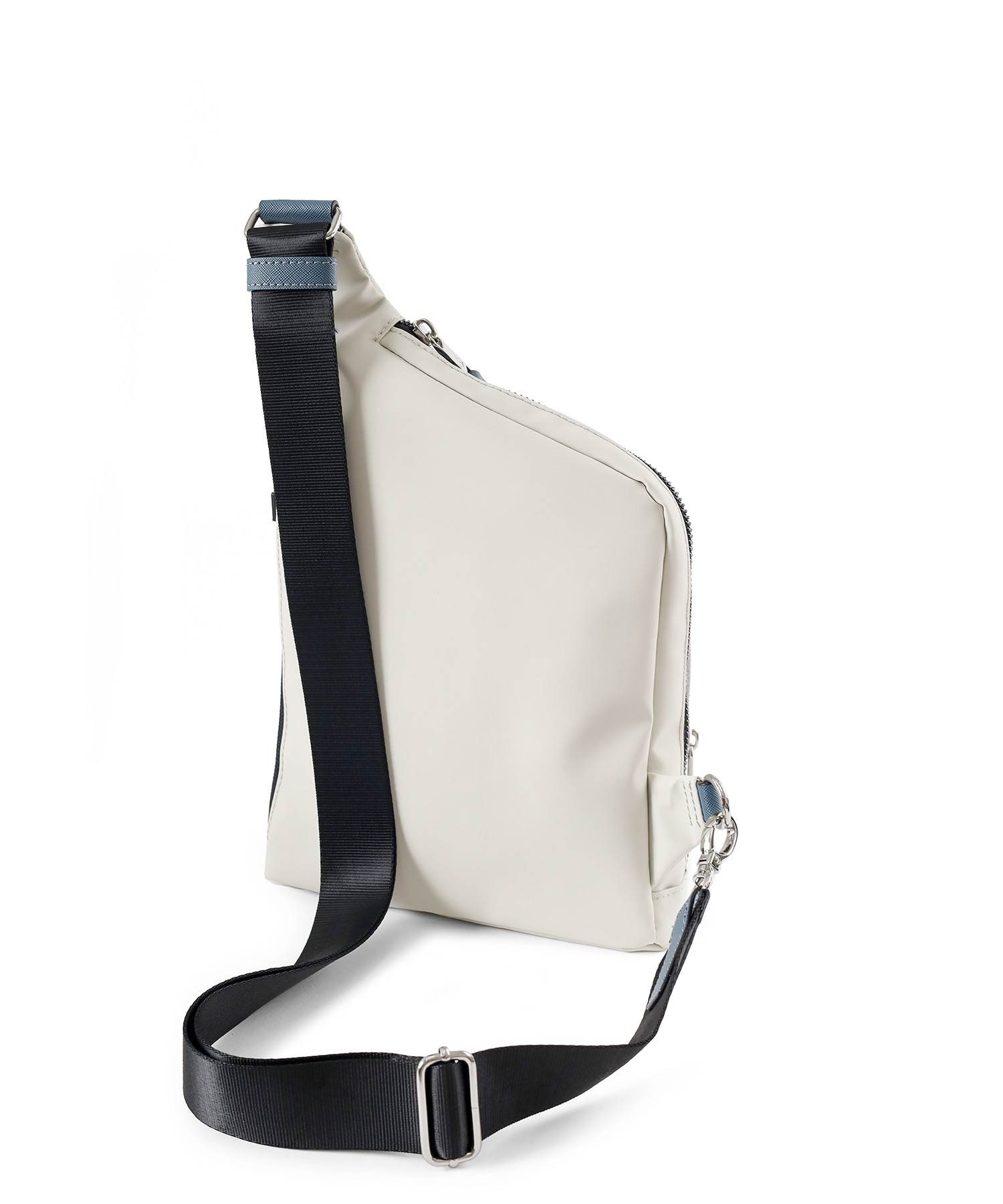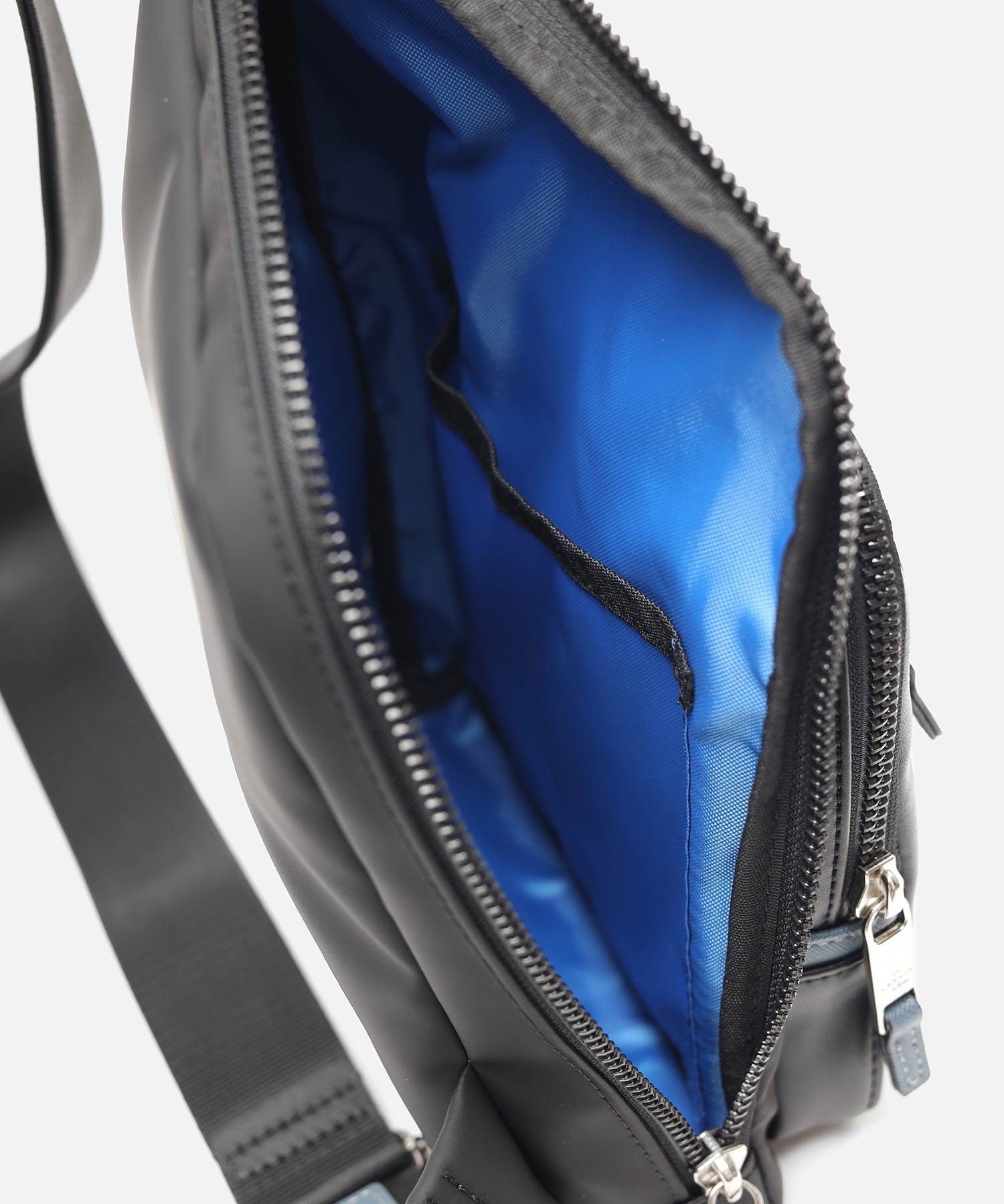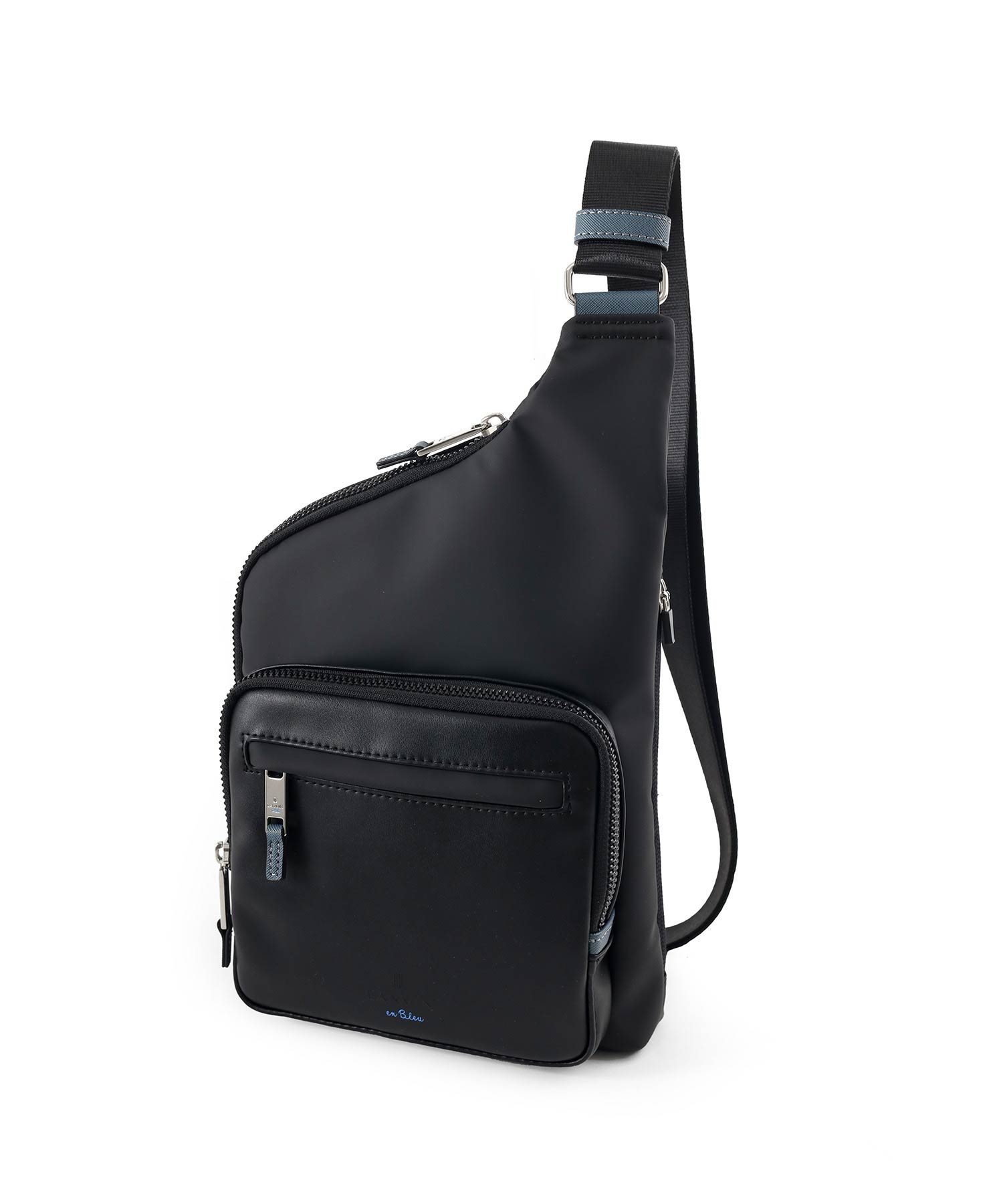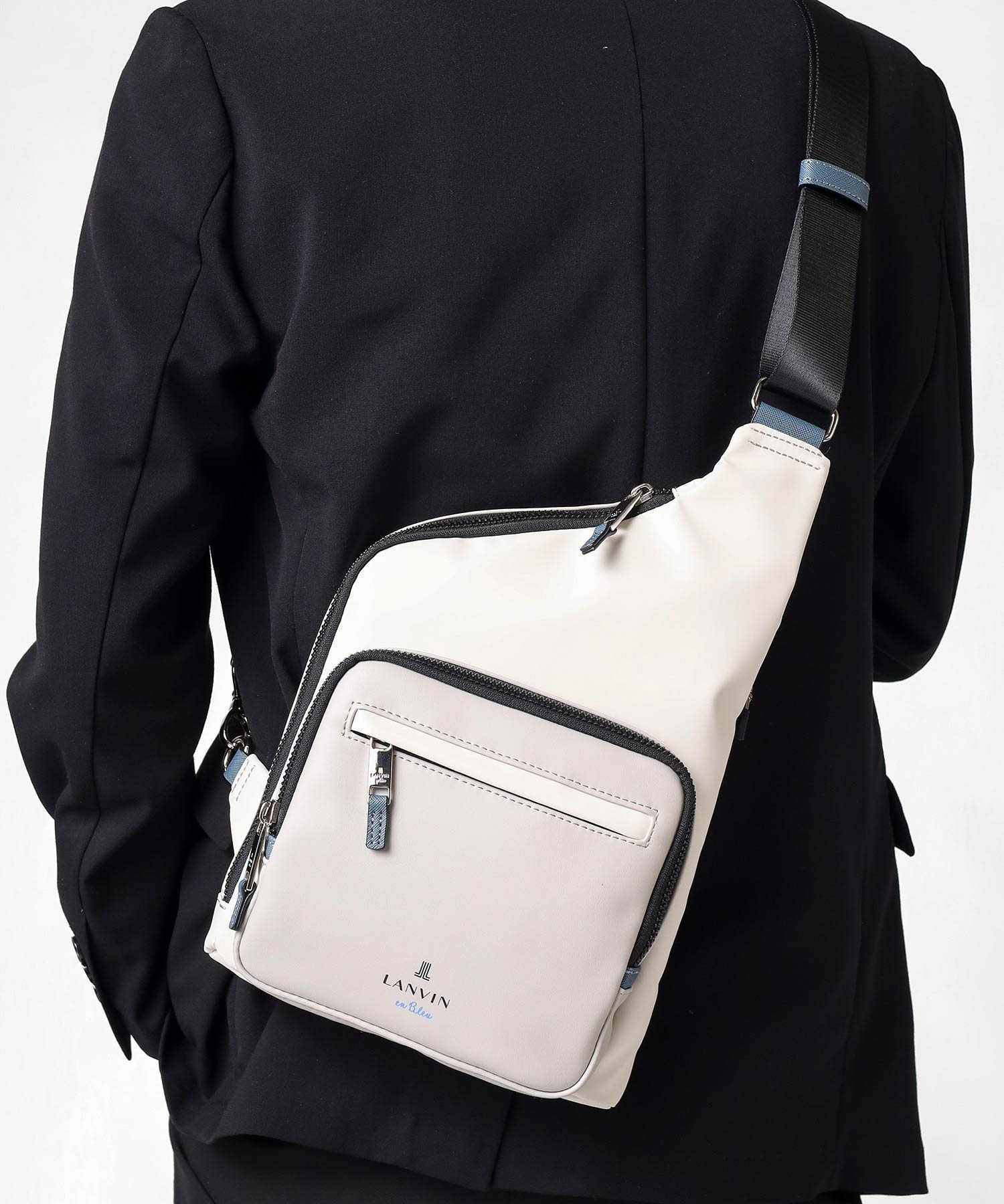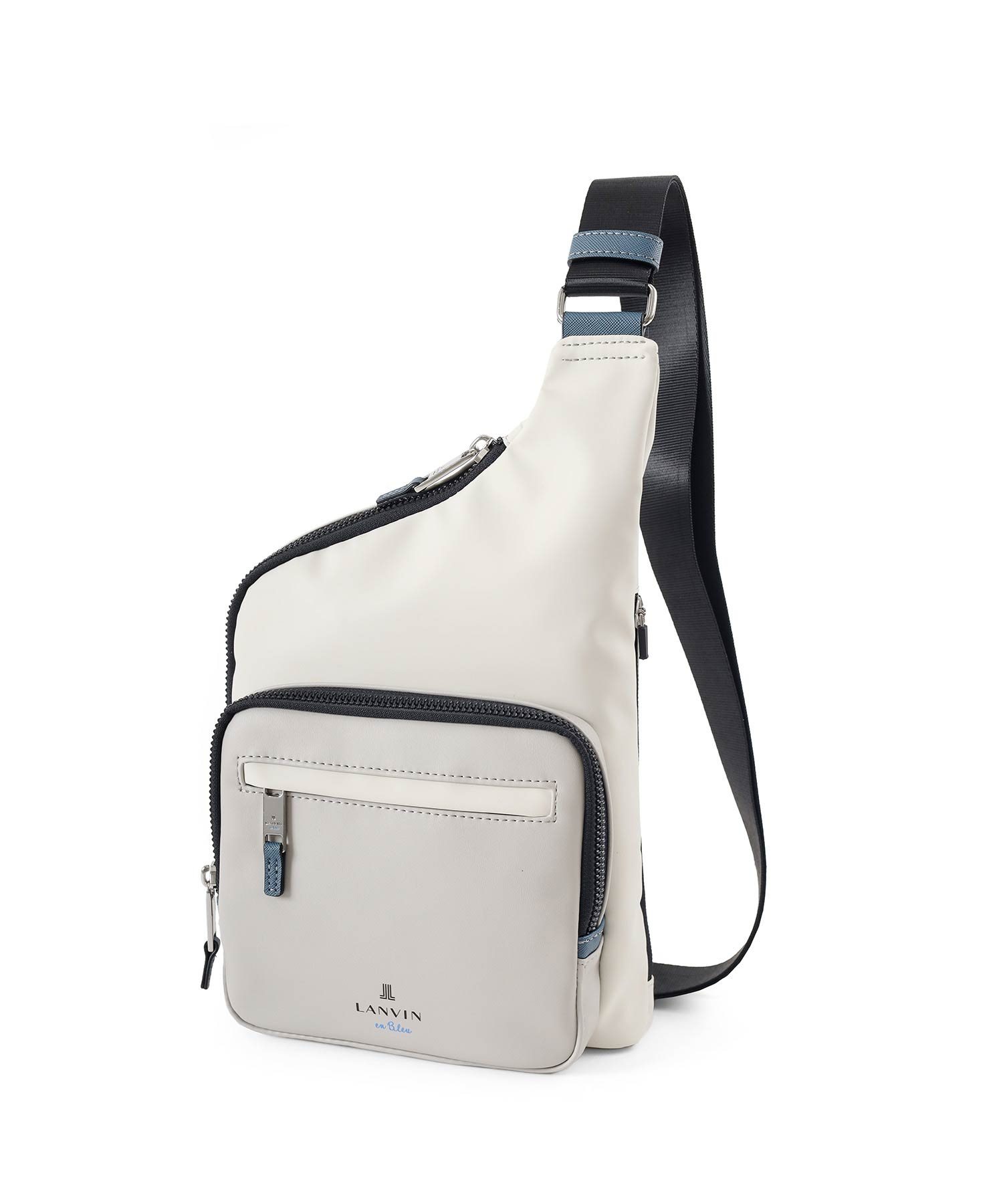 3素材MIXでブランドらしい遊び心を表現したランバンオンブルーのカジュアルワンショルダーバッグ。ブルーカラーのポイント使いが、シンプルながらもデザインにアクセントを加えています。上品さもある素材感で、カジュアル・ジャケパンどちらのスタイルにもお使いいただけます。貴重品や日用品が収まるお出かけにちょうど良いワンショルダーバッグです。