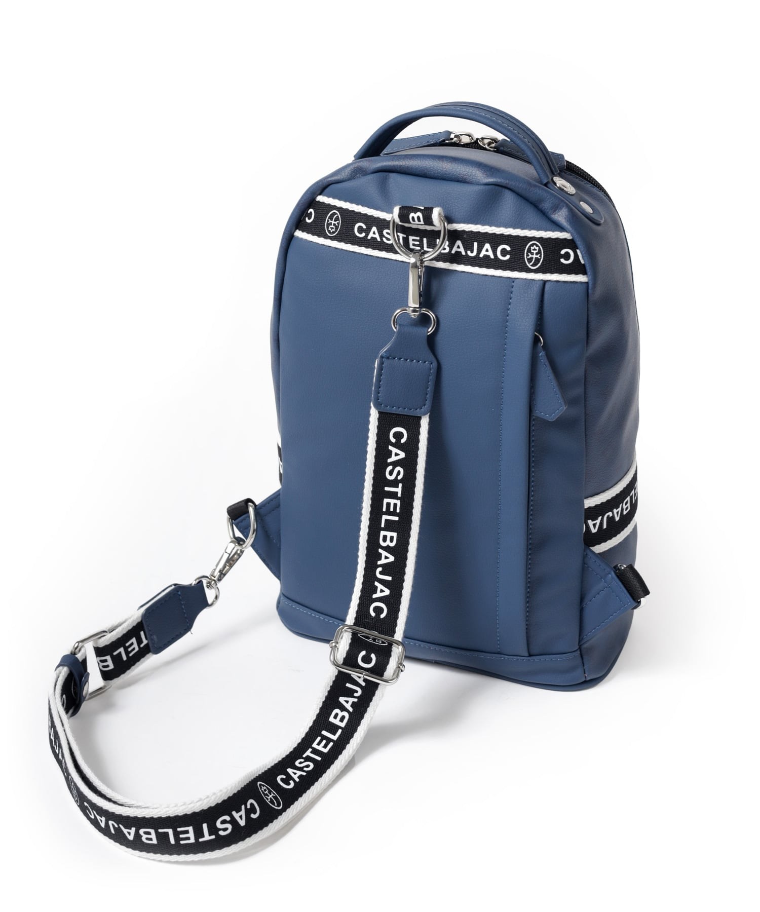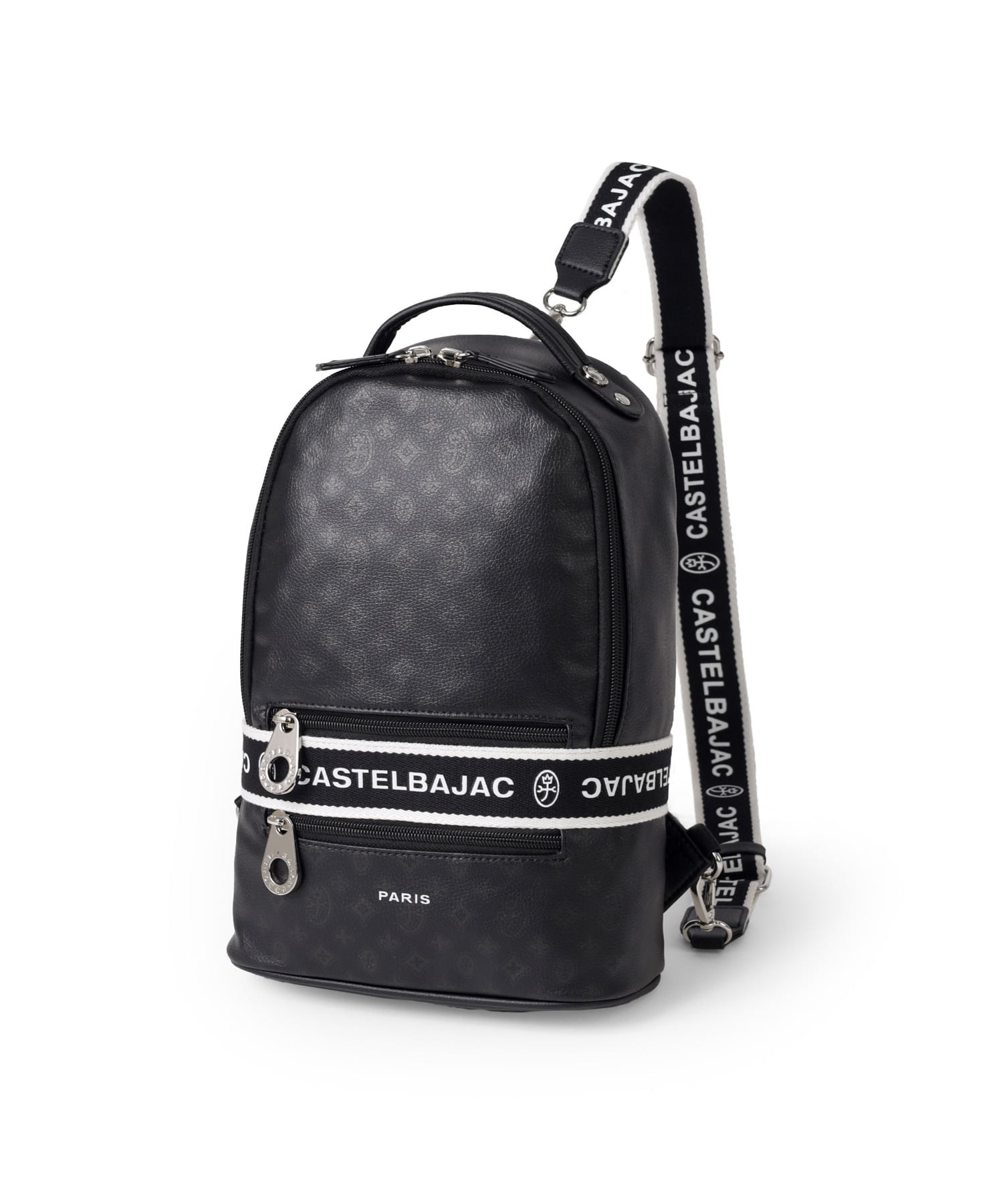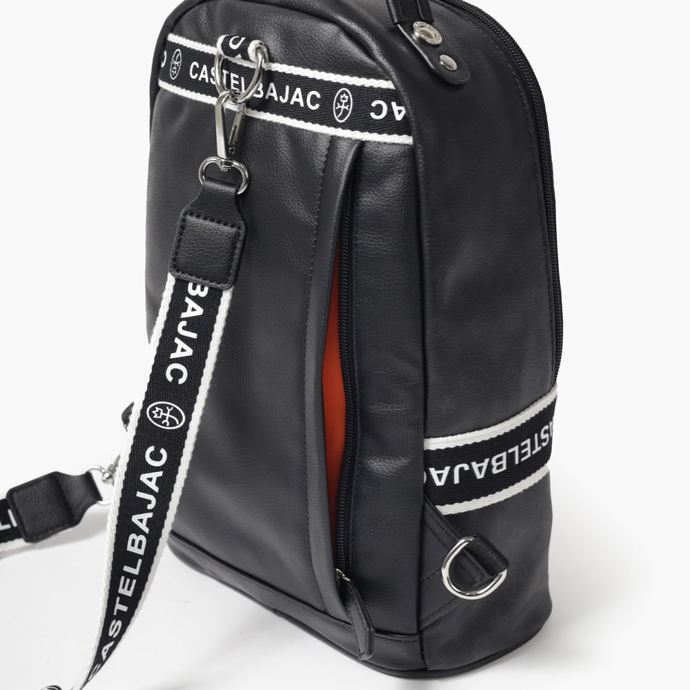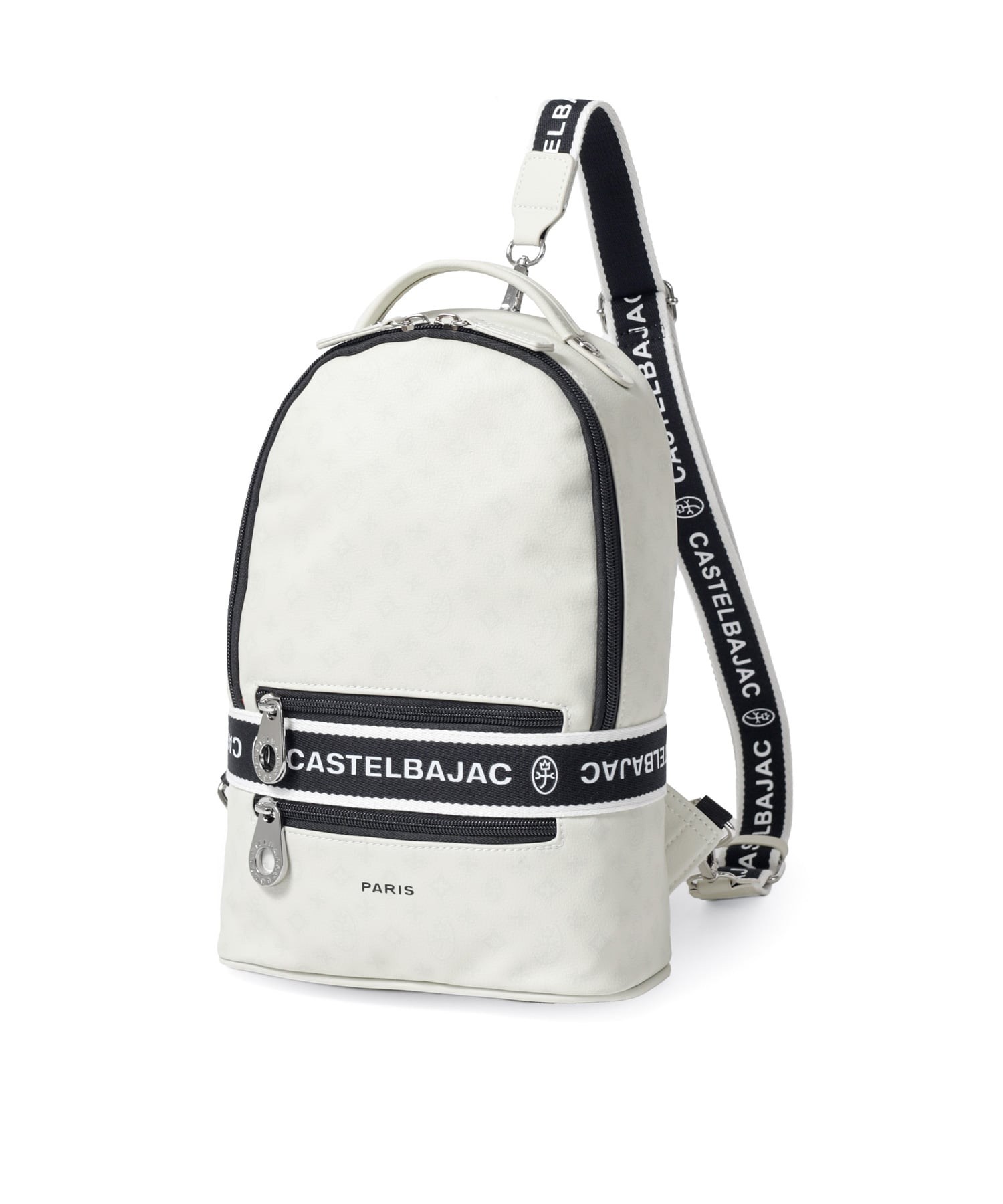 タウンからトラベルまで幅広く使える多機能なカステルバジャックのワンショルダーバッグ。取り外し可能なショルダーベルト2つが付属し、リュックスタイルでもお使いいただける2WAY仕様です。このバッグの素材には、プリントにWコーティングを施し、奥深く透明感のある生地に仕上げています。耐久性と美しさを兼ね備え、あらゆるシーンでスタイリッシュにお使いいただけます。