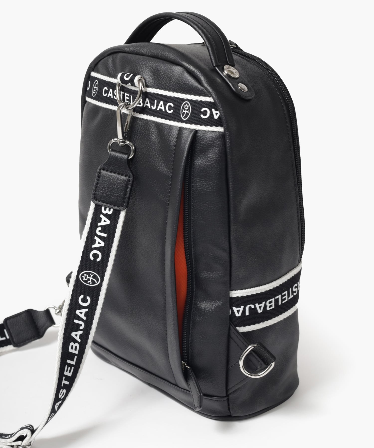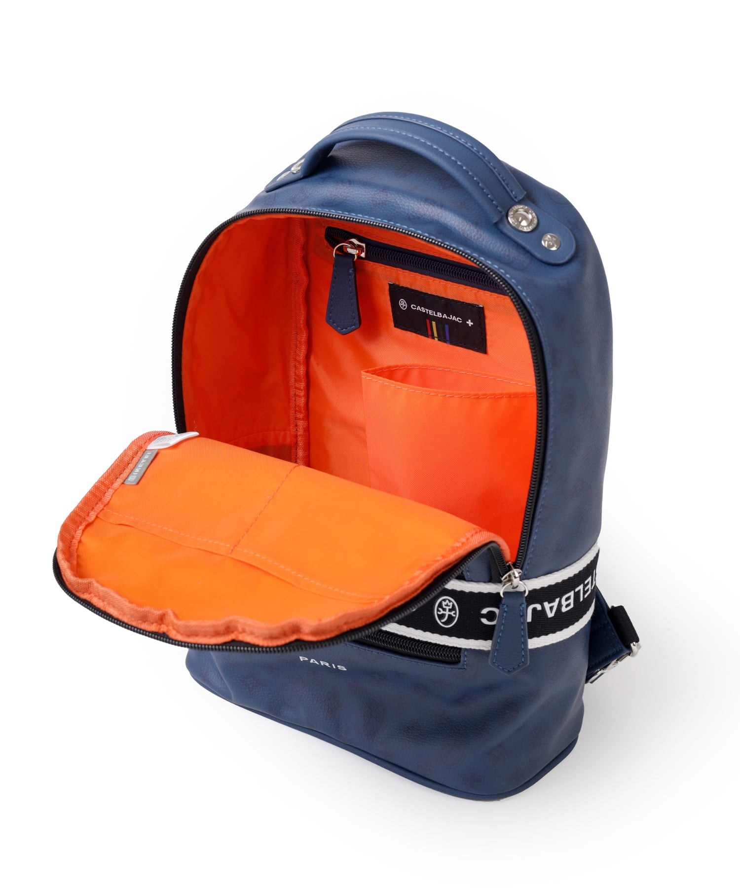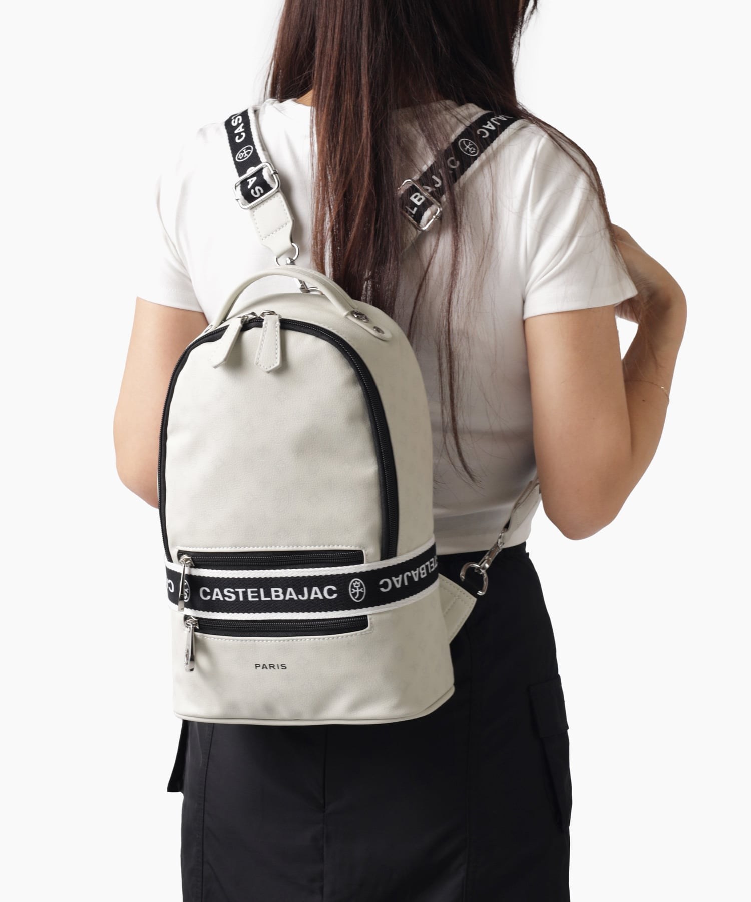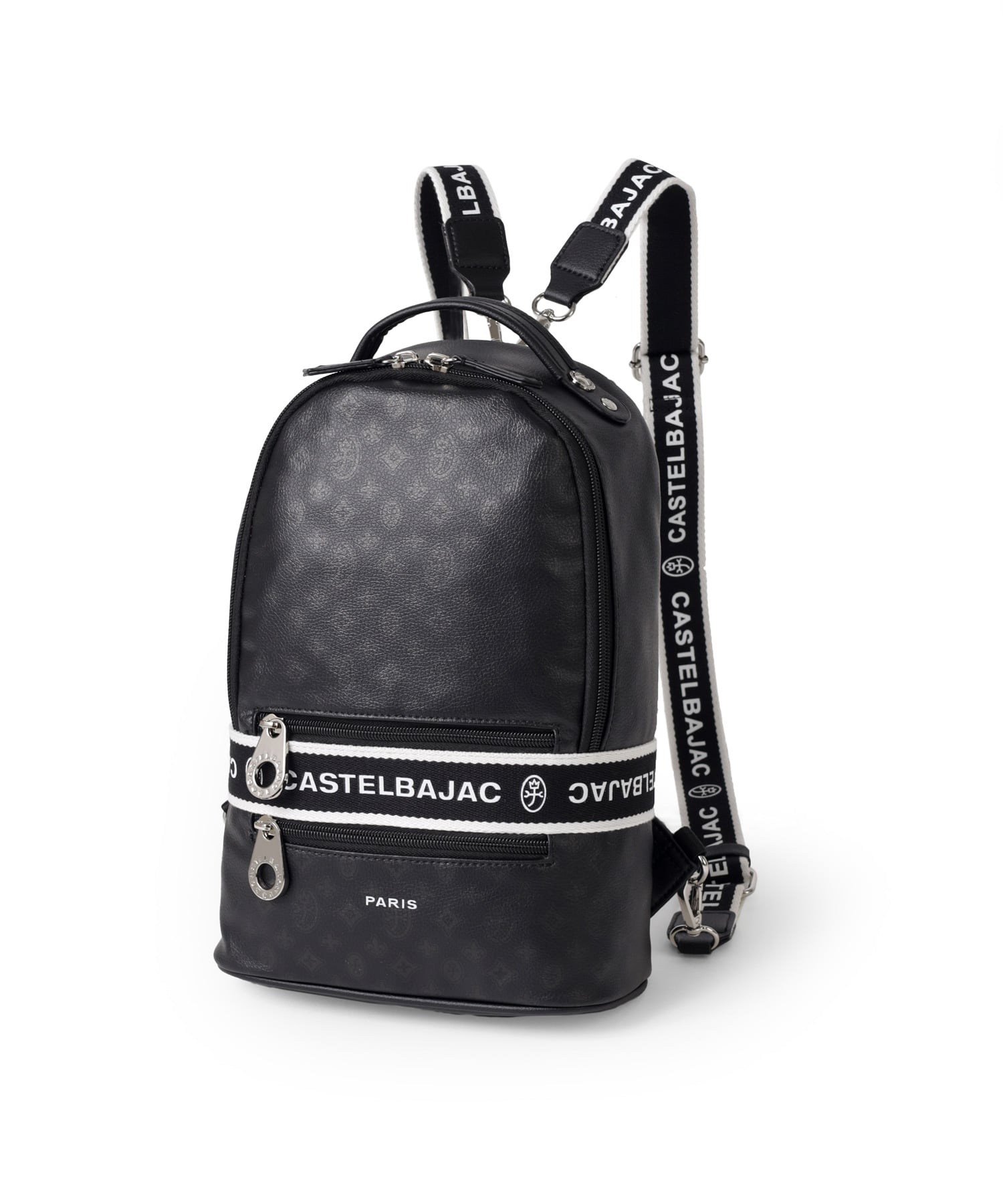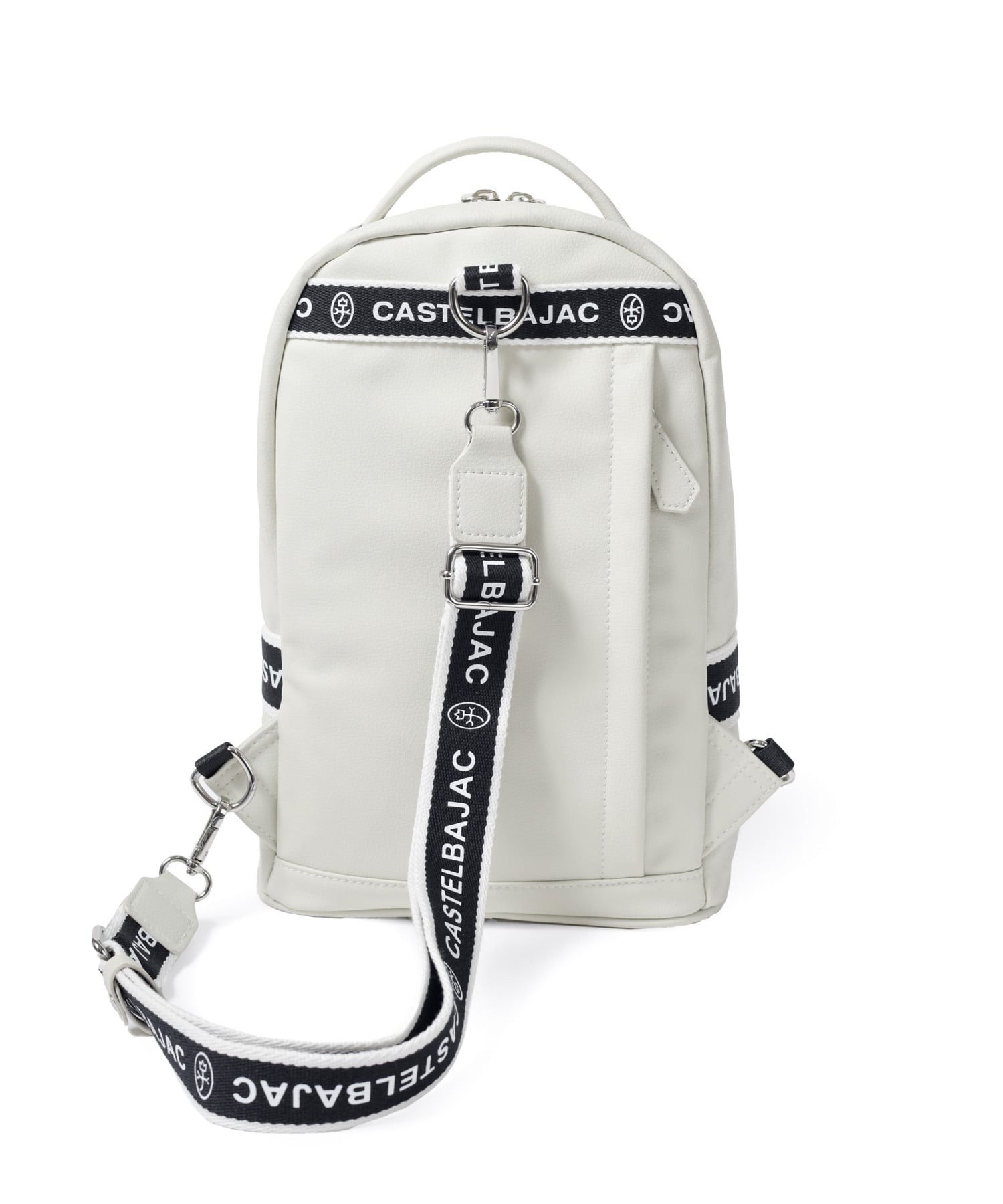 タウンからトラベルまで幅広く使える多機能なカステルバジャックのワンショルダーバッグ。取り外し可能なショルダーベルト2つが付属し、リュックスタイルでもお使いいただける2WAY仕様です。このバッグの素材には、プリントにWコーティングを施し、奥深く透明感のある生地に仕上げています。耐久性と美しさを兼ね備え、あらゆるシーンでスタイリッシュにお使いいただけます。