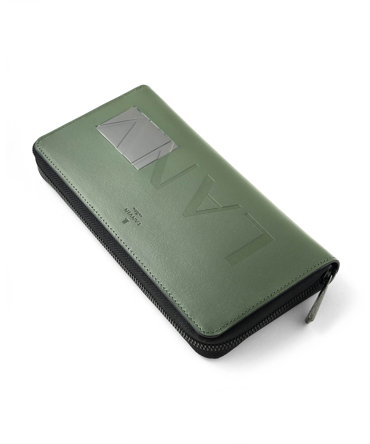 プレートと本体に押されたブランドロゴが繋がったように表現したモードなランバンオンブルーのラウンドファスナー長財布です。財布が大きく開いてカード収納が一目で分かるセカンドウォレットタイプです。プレートをあえて大きめにすることで全体のワンポイントにもなり、シンプルベーシックな中にも上品さを演出してくれています。