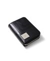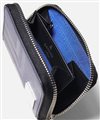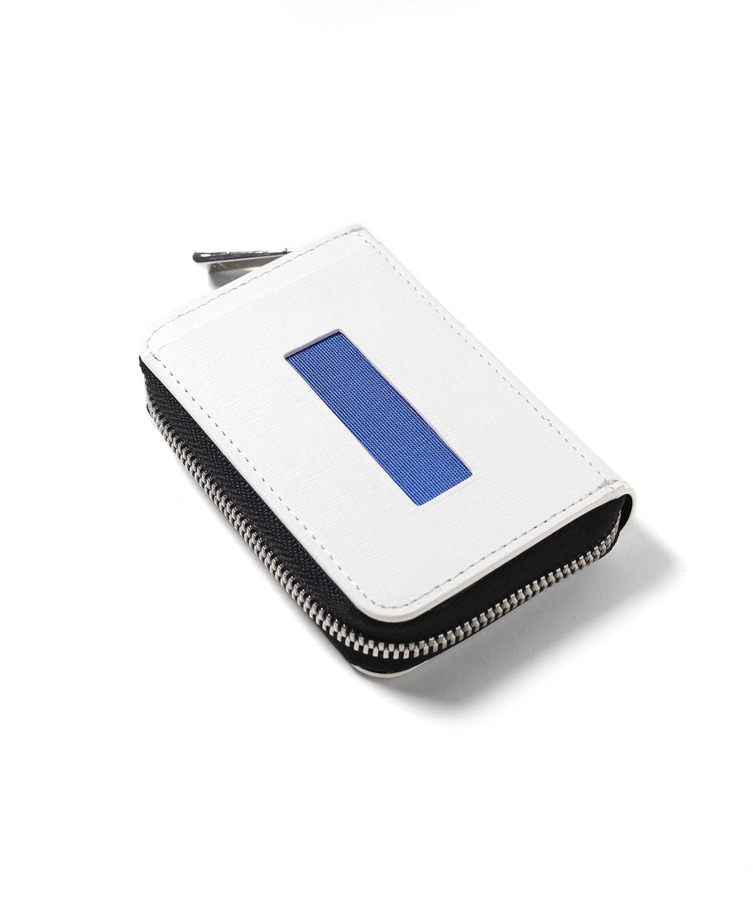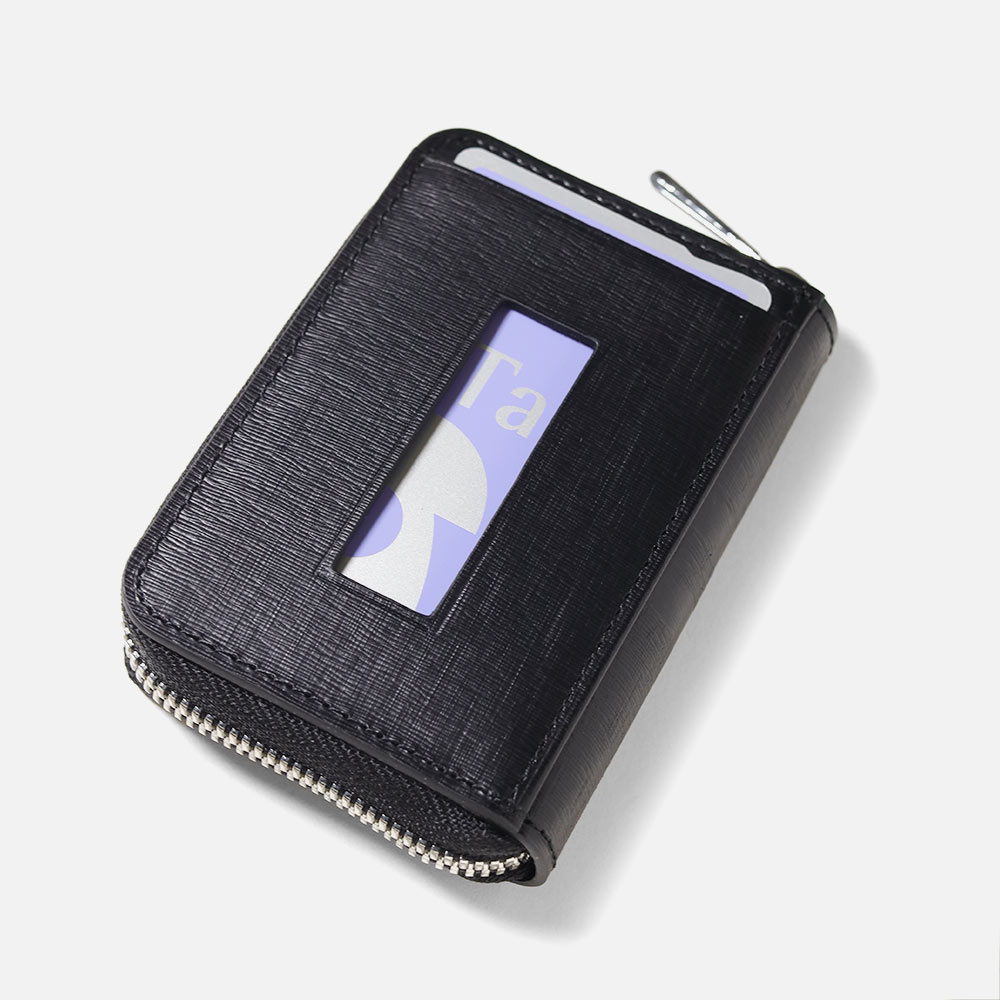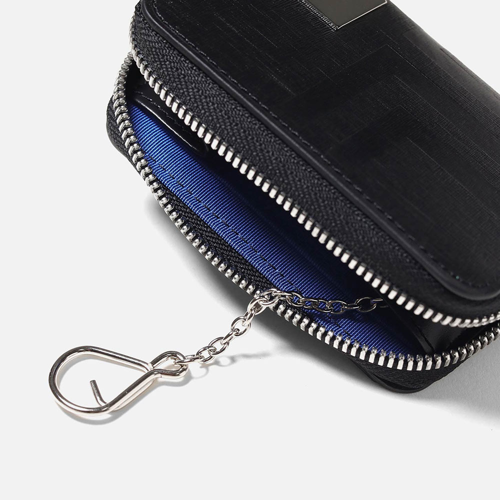 ファスナータイプの小銭入れを開くと、小銭収納部分は仕切り付きで硬貨を分けて収納が可能です。さらにカードポケットが2つと、内側にはホックで取り外しが可能なキーチェーンが1つあります。小銭入れの背面には窓付きのカードポケットが1つあり、カードや定期券などの収納に便利で、パスケースとしても活躍します。