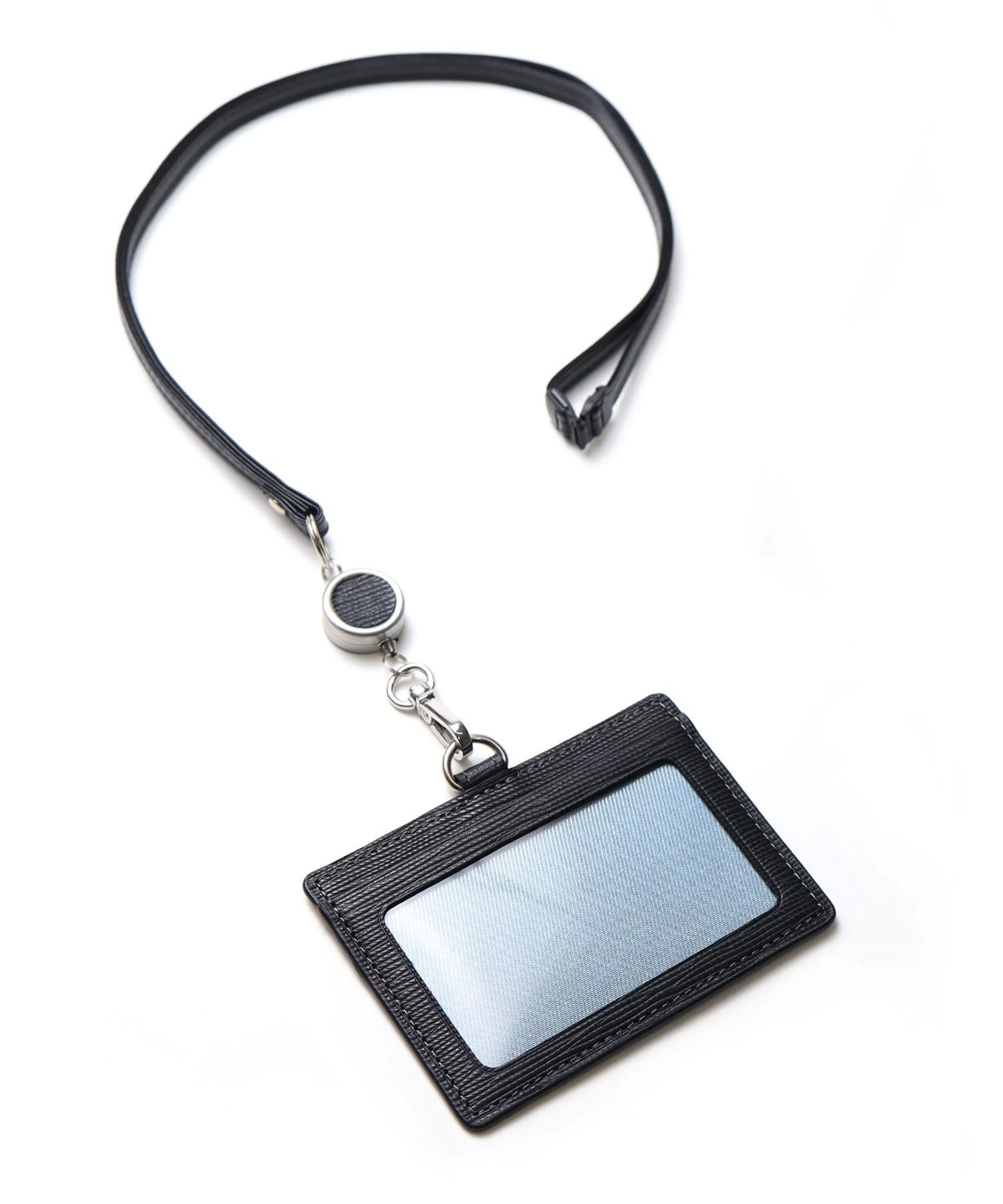 水シボエンボスレザーを使用した、ランバンオンブルーらしいシンプルな外装と、大胆な色使いの内装。そんな内外のギャップが魅力のリール付きIDカードケースです。