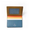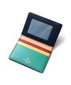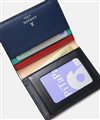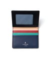シンプルな外装とは裏腹に、内装はポップでカラフルな色使い。ランバンオンブルーのテーマカラーからピックアップした3色のカラーは、クロ、キャメル、コンでそれぞれ違っています。大胆な組み合わせのカラーリングが、パスケースを開くたびに気分を上げてくれます。