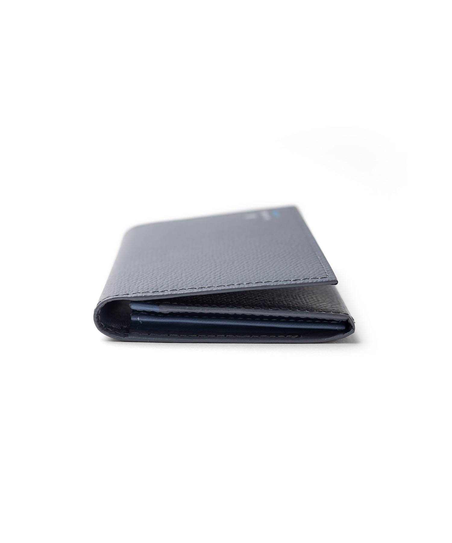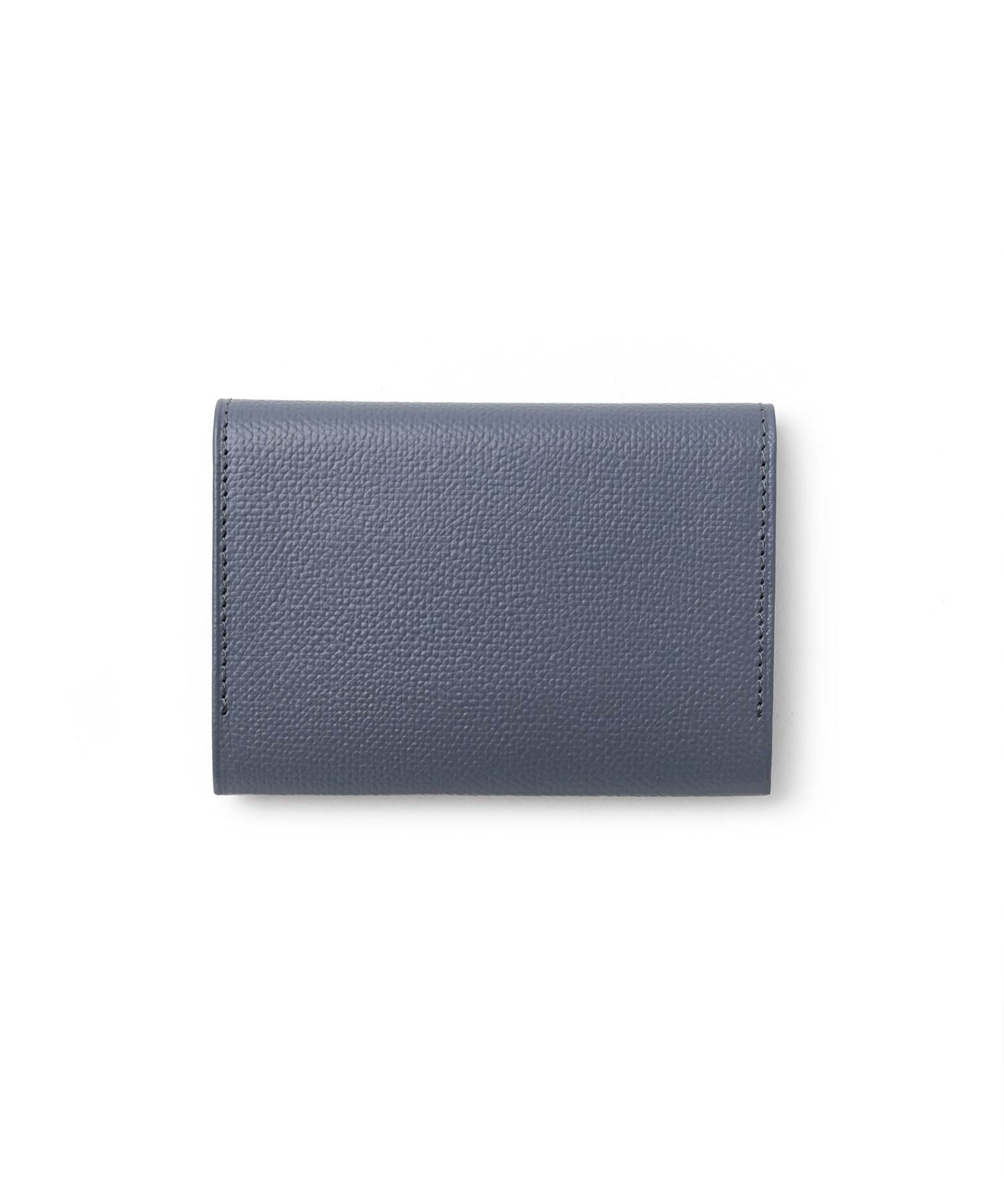 トーンオントーンのダスティカラーがポイントの、ランバンオンブルーの名刺入れ。本体素材は、繊細な型押し牛革を使用しています。外側と内装との色合いをトーンオントーンで表現しています。