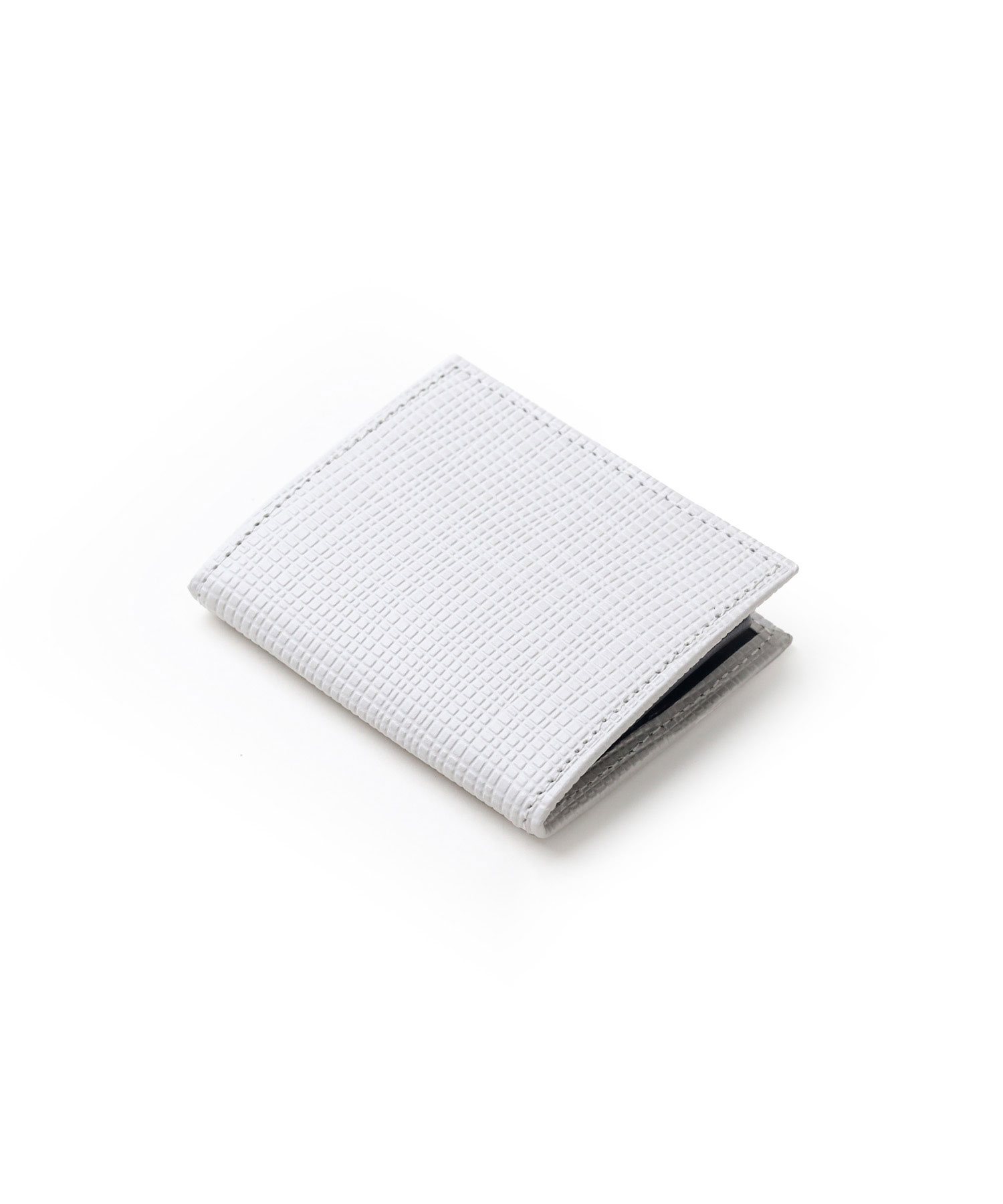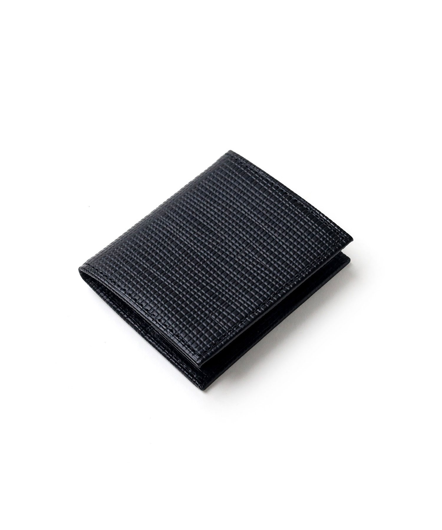 本体には、少し大きめで不規則な角シボの型押し牛革を使用しています。染色は凹部を明るく、凸部を暗めにし、マットな質感で表現しています。この革は顔料で発色が良く、傷もつきにくく、非常に丈夫な素材です。時間が経ってもへたれにくいので、長くお使いいただけます。また、ロゴはクロニッケルの極薄の金具を熱圧着で密着させ、非常に繊細で上品な表現に仕上げました。