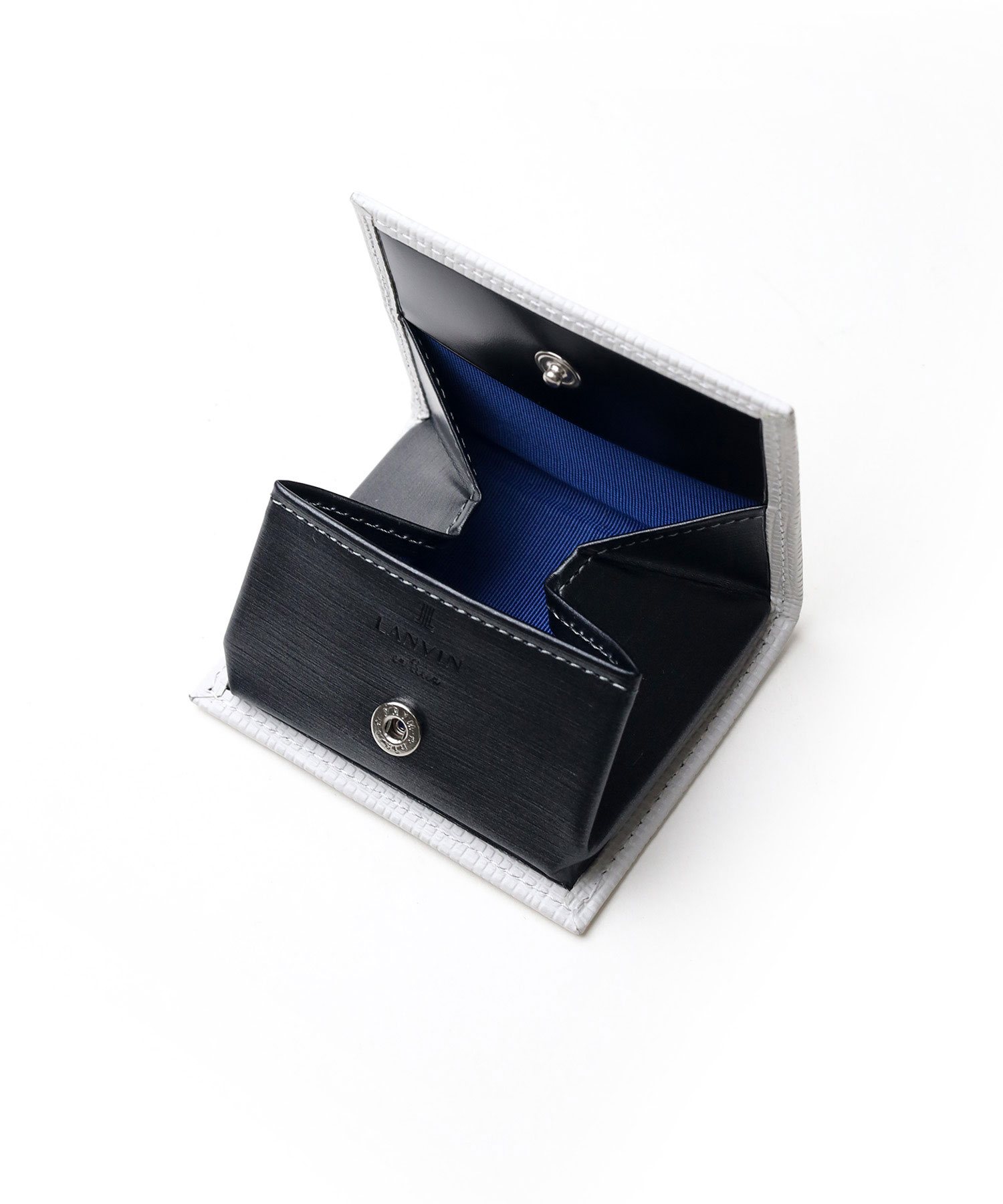 ラグジュアリーなデザインと耐久性を兼ね備えた、ランバンオンブルーのBOX型小銭入れ。傷がつきにくく長期間美しい状態を保つ革を使用しており、革の凸凹を利用したツートンカラーのデザインが洗練された印象を与えます。ビジネスシーンにおいても、使いやすいデザインに仕上げました。