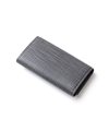 本体には、少し大きめで不規則な角シボの型押し牛革を使用しています。染色は凹部を明るく、凸部を暗めにし、マットな質感で表現しています。この革は顔料で発色が良く、傷もつきにくく、非常に丈夫な素材です。時間が経ってもへたれにくいので、長くお使いいただけます。また、ロゴはクロニッケルの極薄の金具を熱圧着で密着させ、非常に繊細で上品な表現に仕上げました。