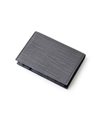 本体には、少し大きめで不規則な角シボの型押し牛革を使用しています。染色は凹部を明るく、凸部を暗めにし、マットな質感で表現しています。この革は顔料で発色が良く、傷もつきにくく、非常に丈夫な素材です。時間が経ってもへたれにくいので、長くお使いいただけます。また、ロゴはクロニッケルの極薄の金具を熱圧着で密着させ、非常に繊細で上品な表現に仕上げました。