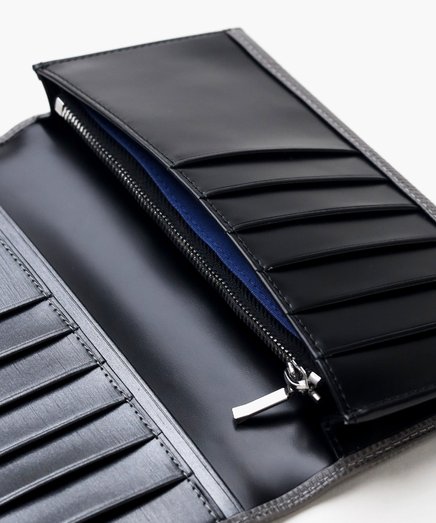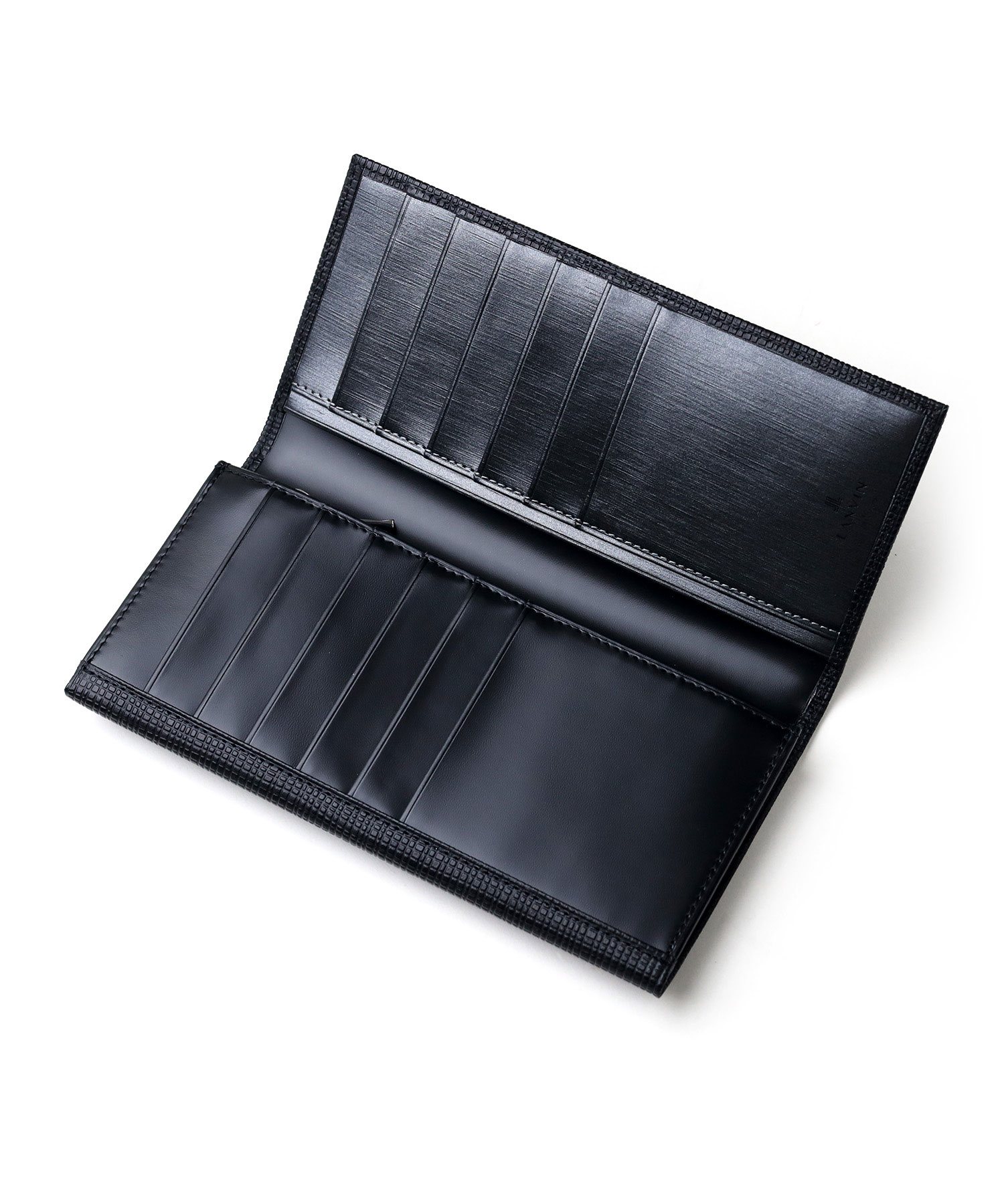 ラグジュアリーなデザインと耐久性を兼ね備えた、ランバンオンブルーの長財布。傷がつきにくく長期間美しい状態を保つ革を使用しており、革の凸凹を利用したツートンカラーのデザインが洗練された印象を与えます。ビジネスシーンにおいても、使いやすいデザインに仕上げました。