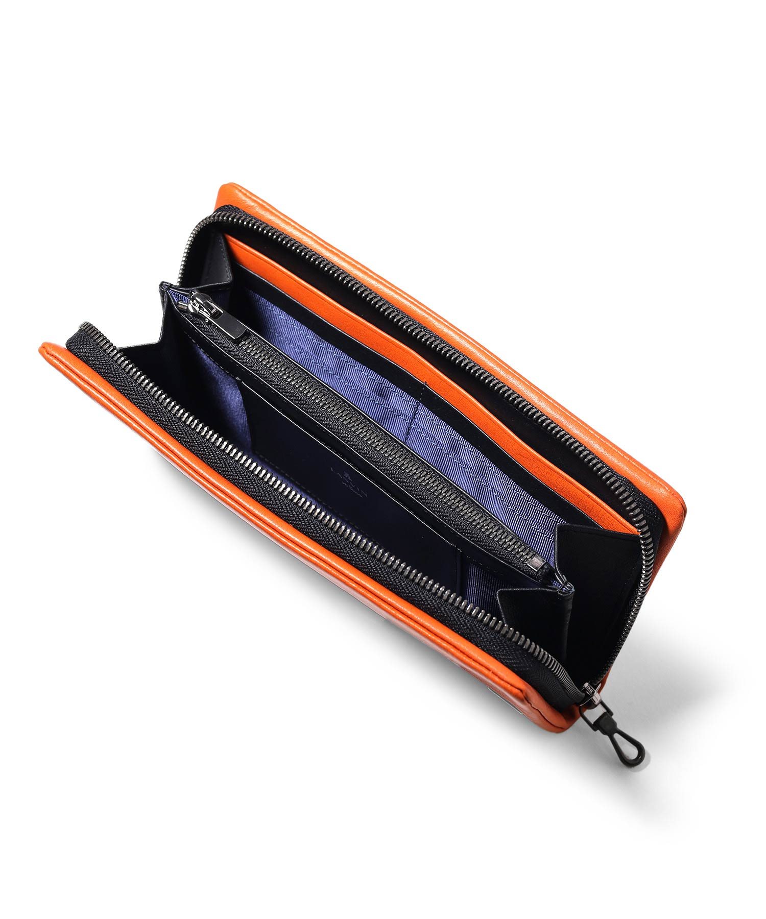 姫路のタンナーで鞣された、国産レザーの風合いを活かして作られたランバンオンブルーのラウンドファスナー長財布。革の特徴をデザインに表現するため、縫い代の目立たない「袋縫い」で縫製しています。また、この縫製方法は、頑丈に仕上がる事も特徴の一つです。