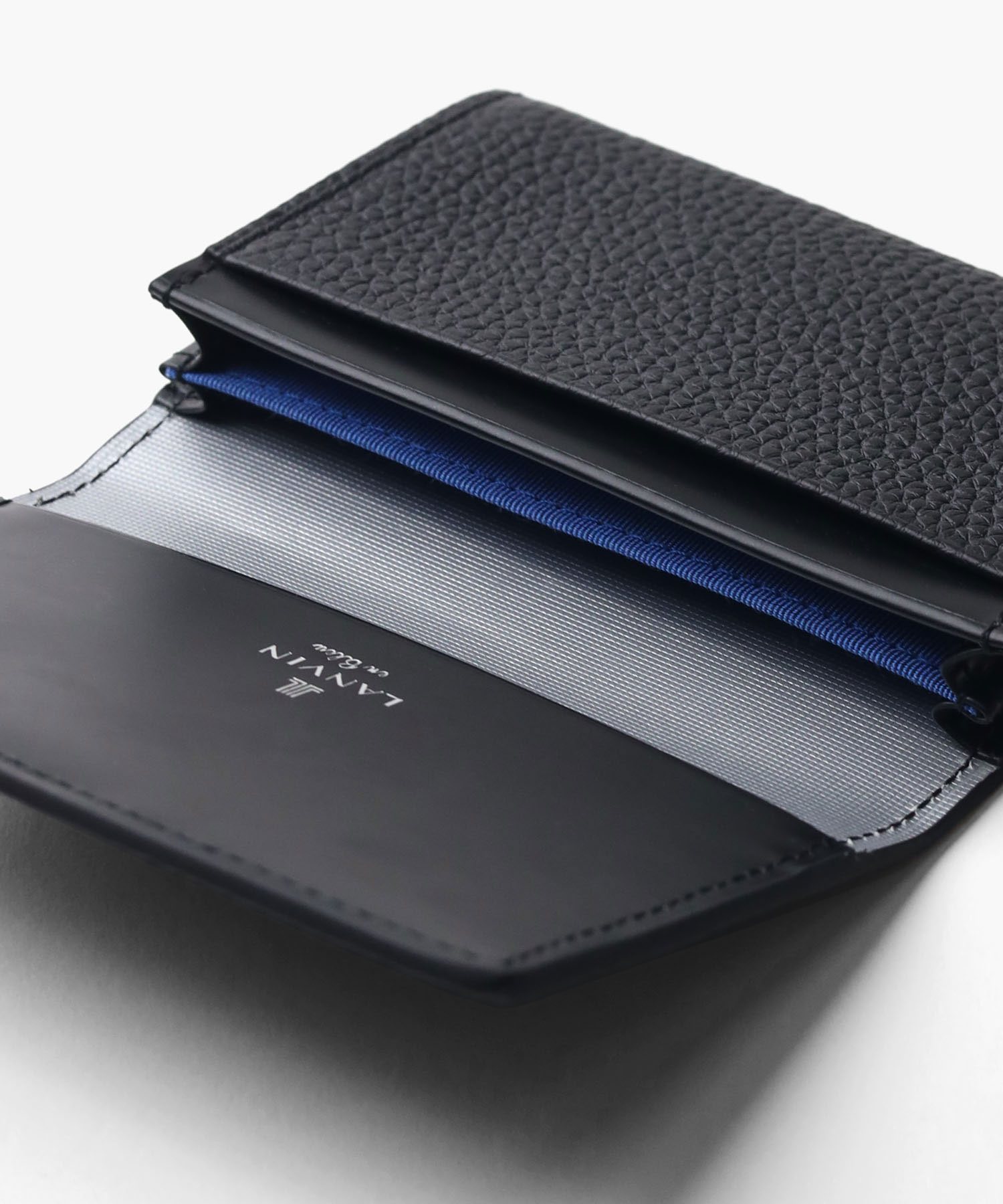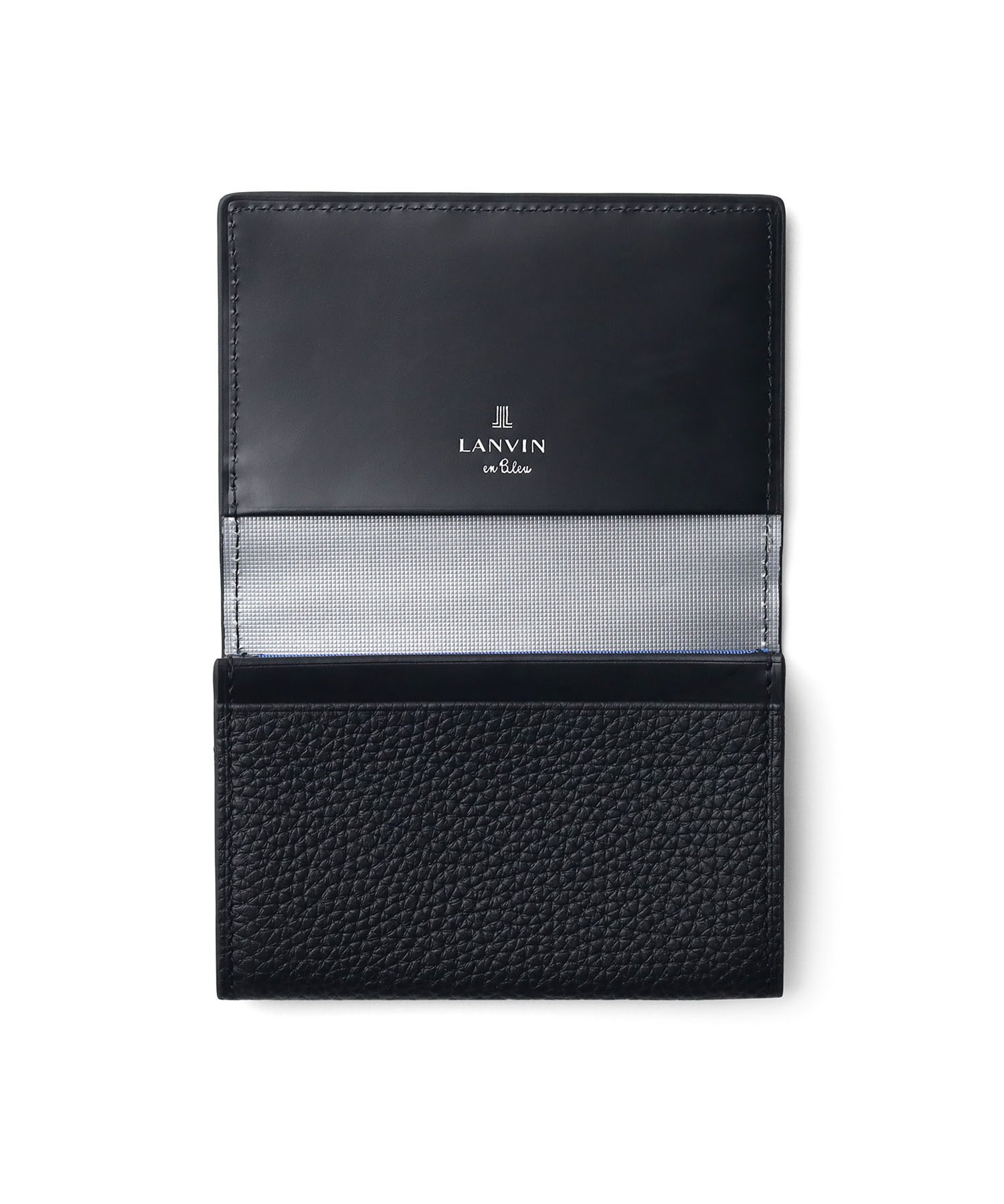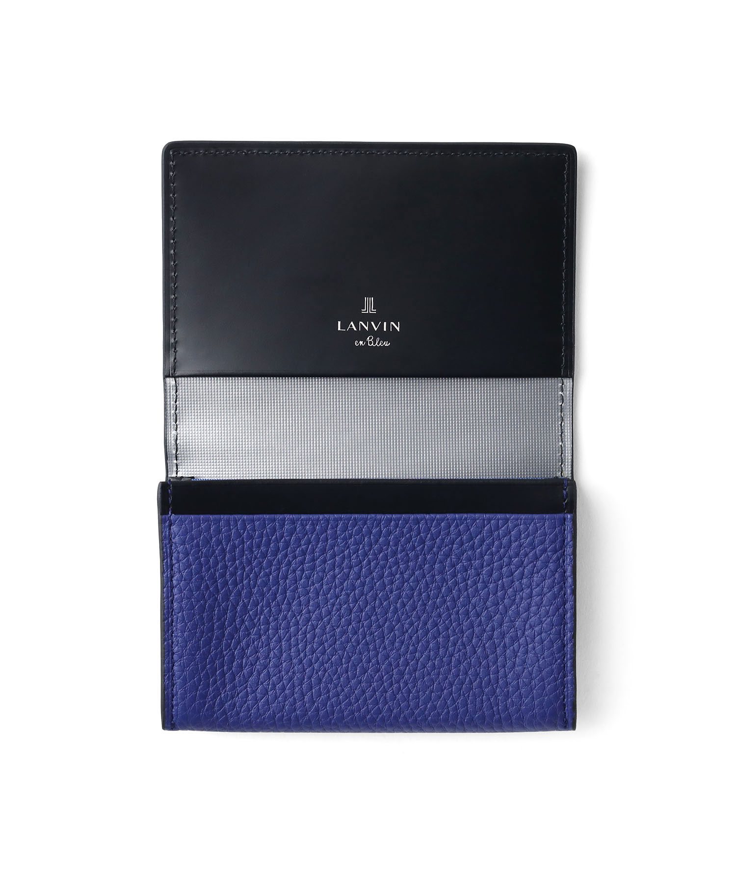 柔らかく上質な手触りが魅力のランバンオンブルーの名刺入れ。シュリンク加工を施したソフトな風合いの牛革を使用しており、傷が目立ちにくく、長く美しい状態を保てます。シンプルで無駄のないデザインに、シルバーのメタルロゴが上品なアクセントを添えています。