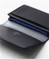 仕切り付きのメインルームは名刺を整理して収納でき、2つのカードポケットは名刺の仕分けやよく使うカードの収納に便利です。また、内装のシルバーの革がさりげないデザインポイントとなっています。