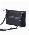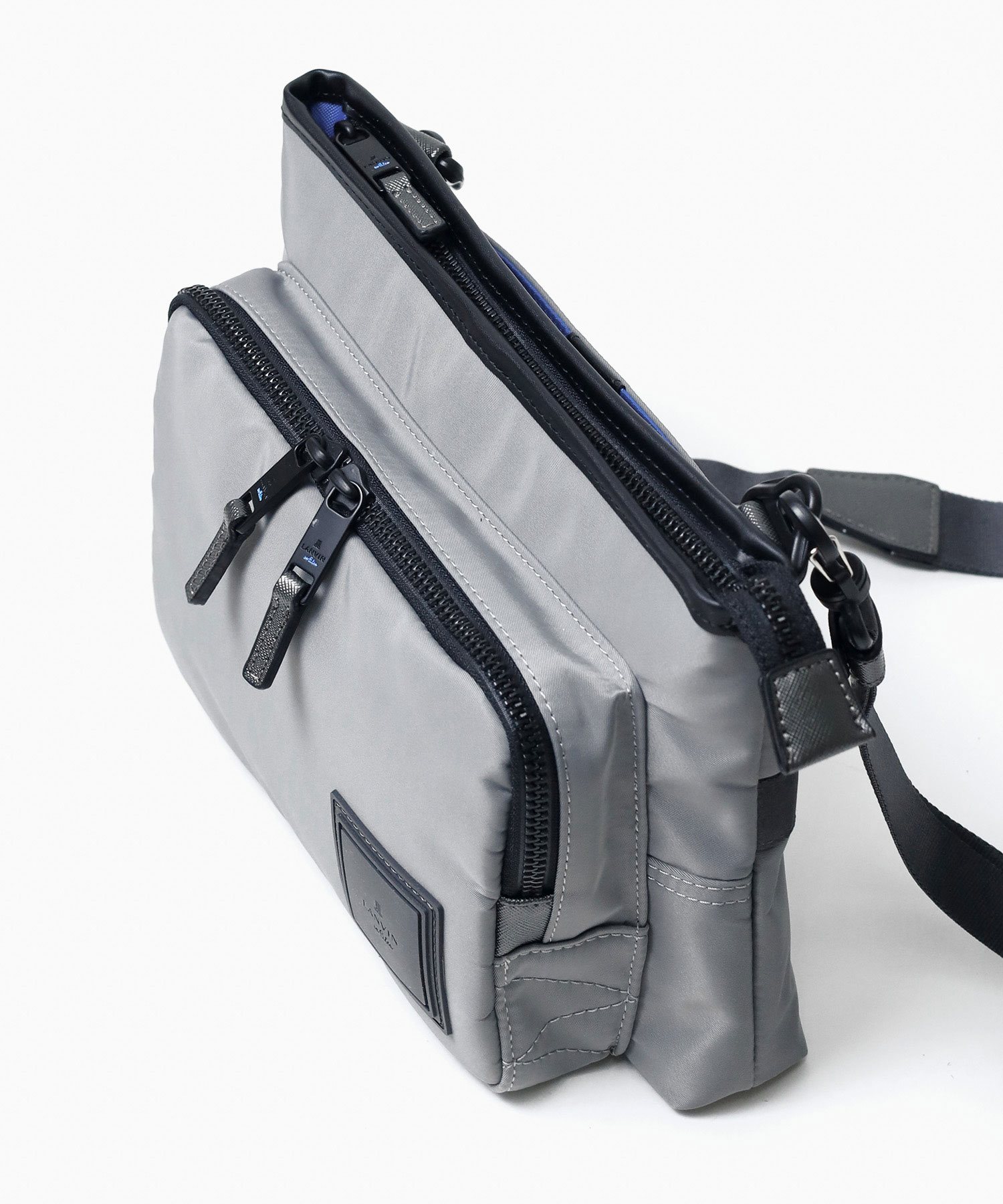 上品な質感と艶感が特徴のカジュアルショルダーバッグ。本体素材には、高密度ナイロンツイルを使用。裏加工を施すことで、防水性を高めています。天候を気にすることなくお使いいただけるので日常使いにはもちろん、旅行にもおすすめです。 アクセントカラーとなるメタリックレザーが、ランバンオンブルーらしい個性を表現しています。