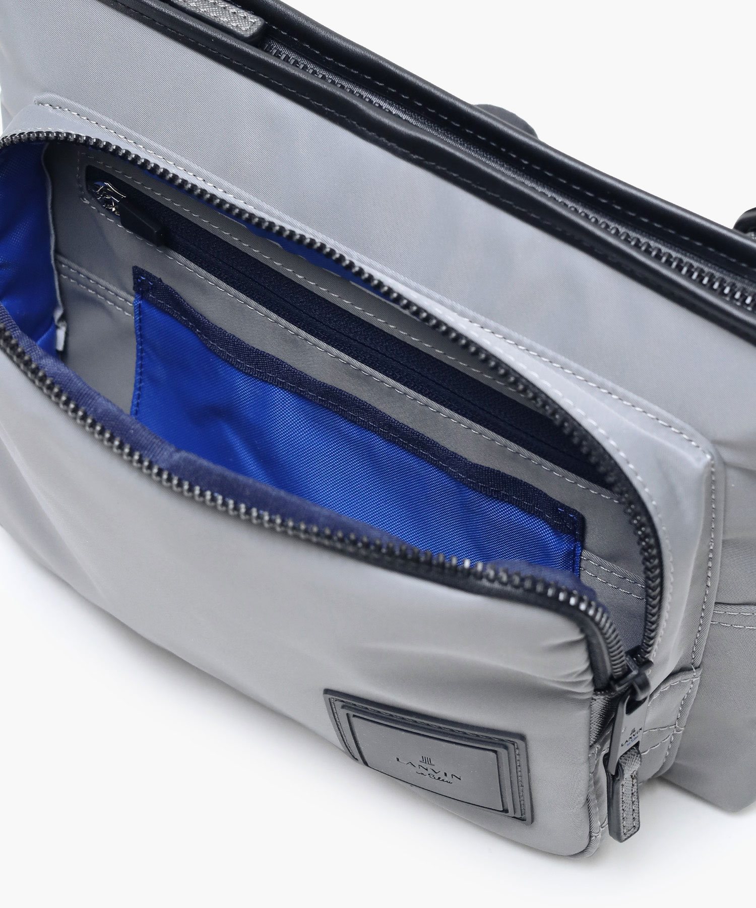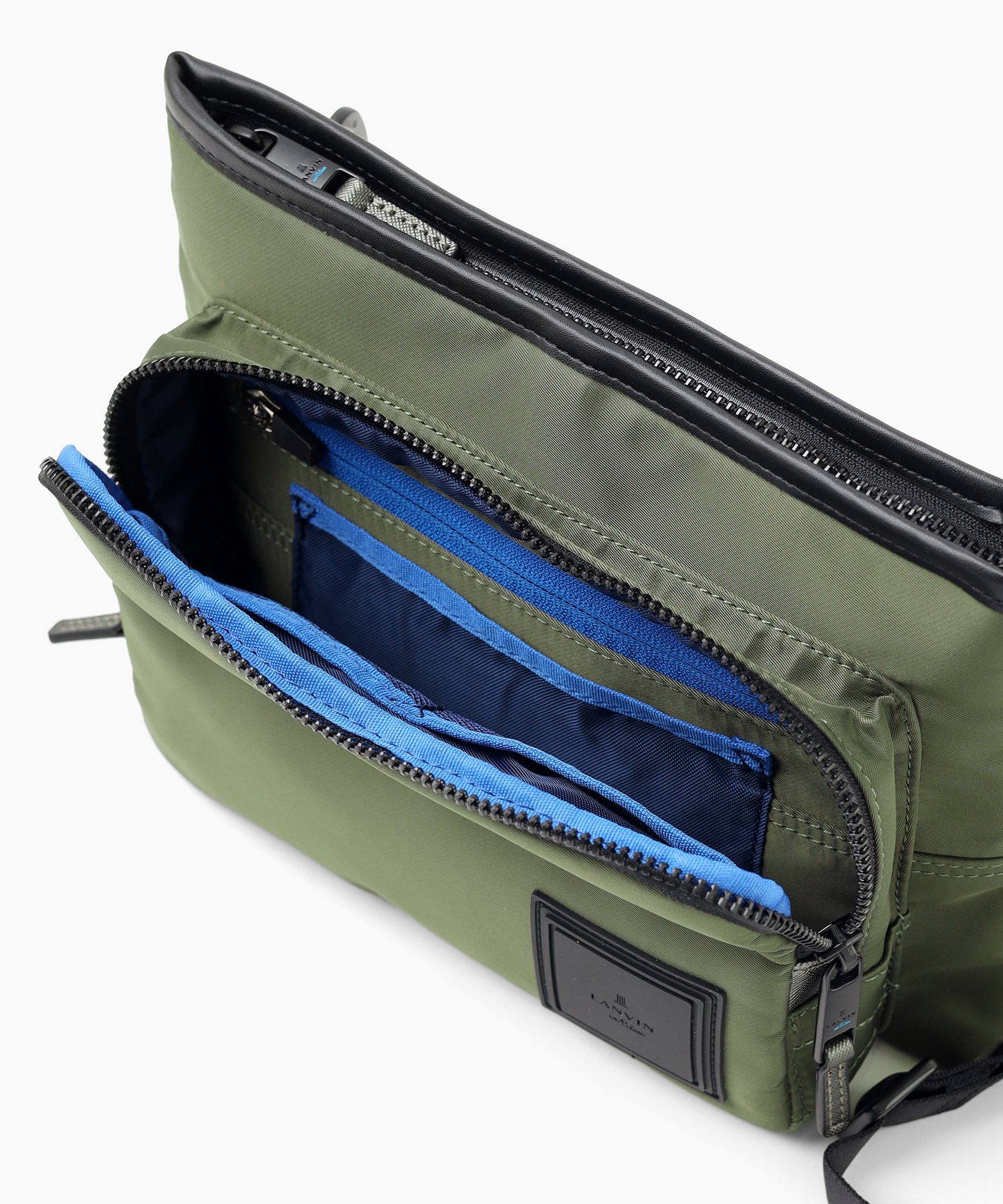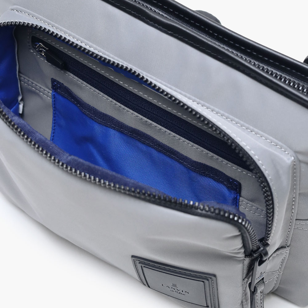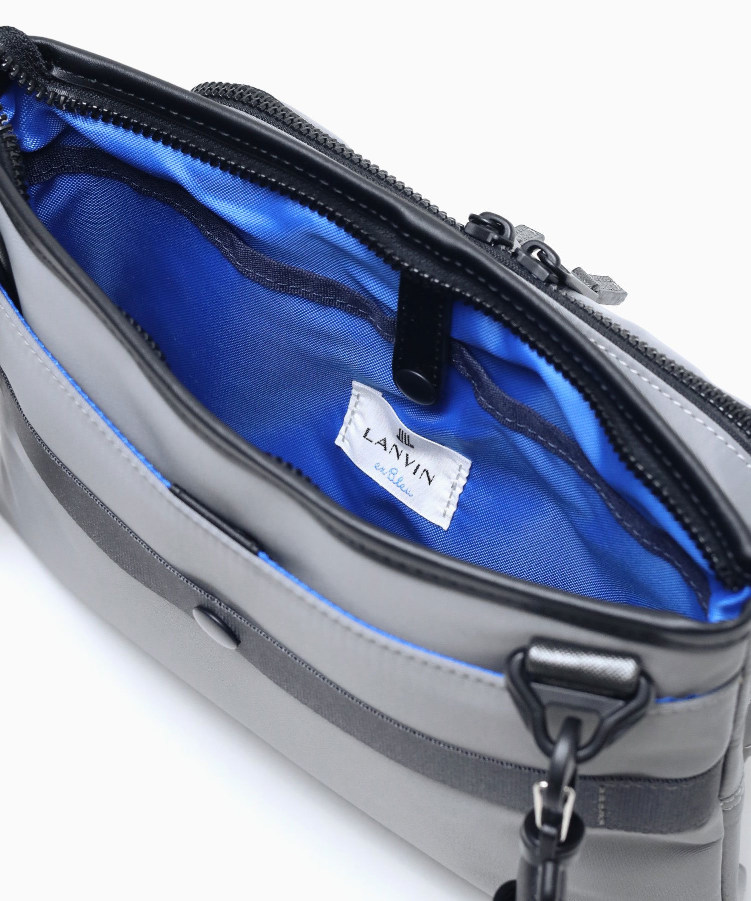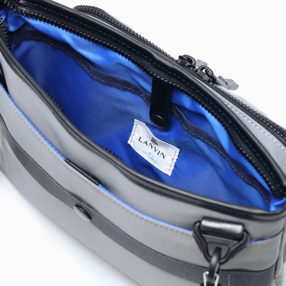 上品な質感と艶感が特徴のカジュアルショルダーバッグ。防水性に優れた機能的な素材で、天候を気にすることなくお使いいただけます。ポケット類が多数備わっており、日常使いにはもちろん旅行にもおすすめです。アクセントカラーとなるメタリックレザーが、ランバンオンブルーらしい個性を表現しています。