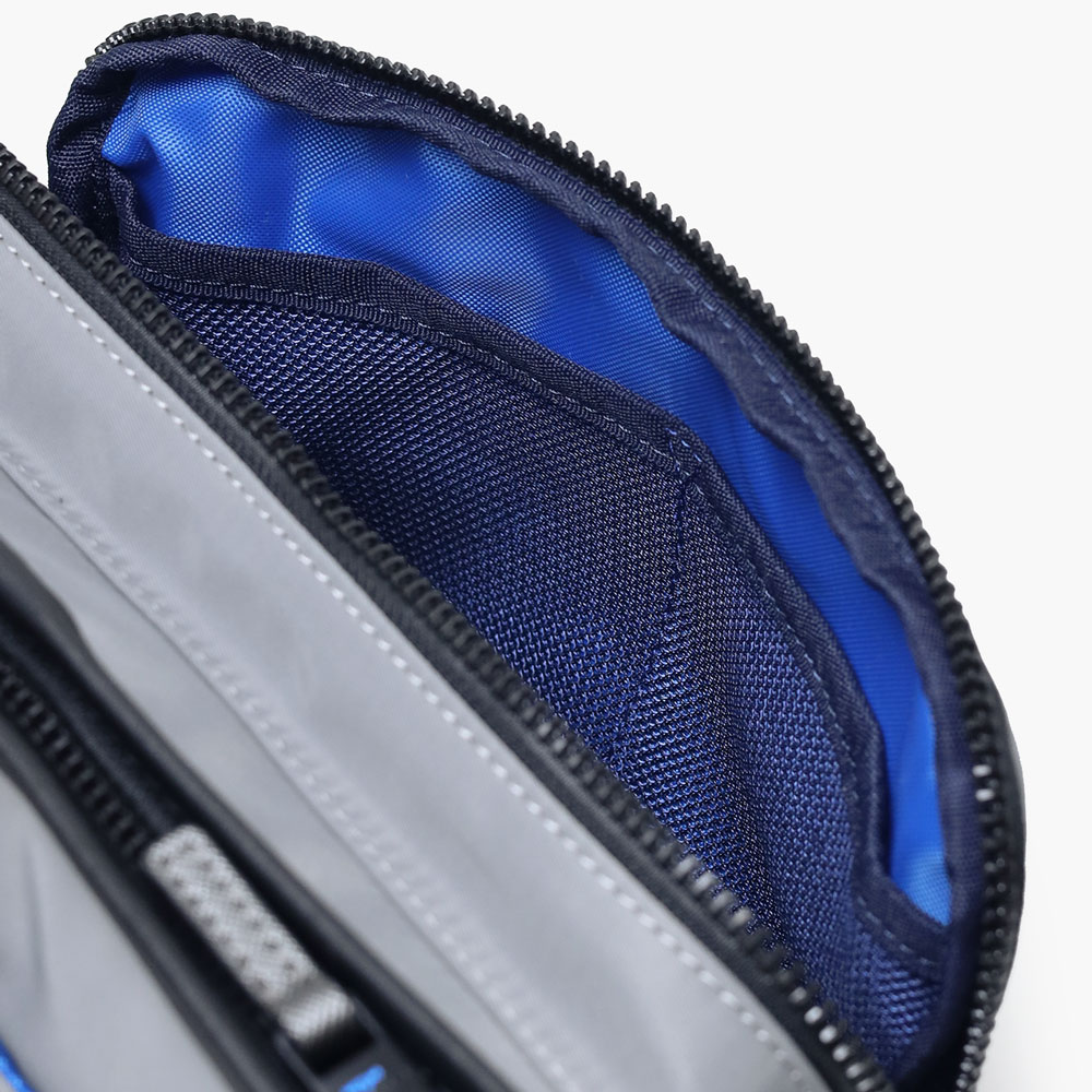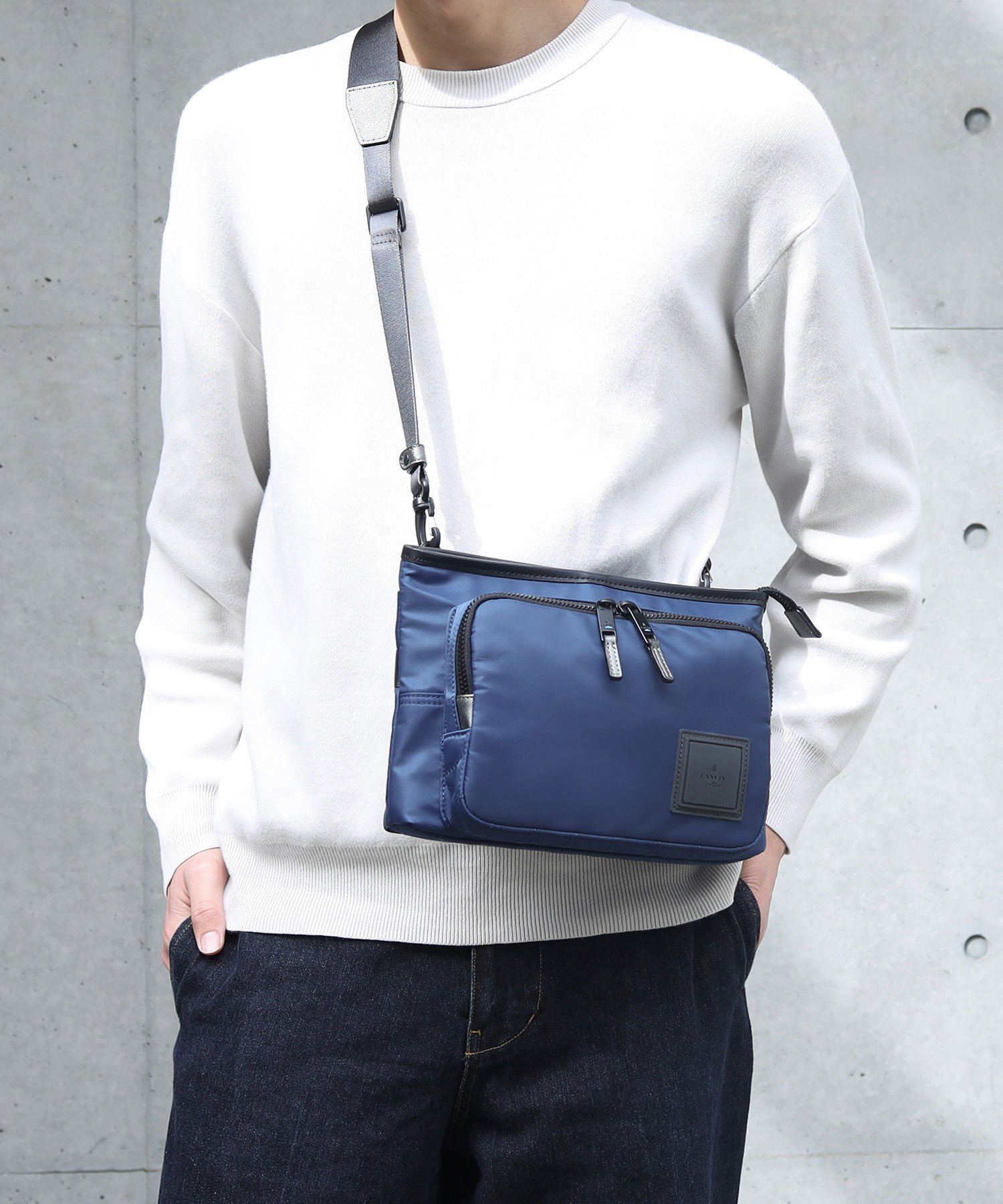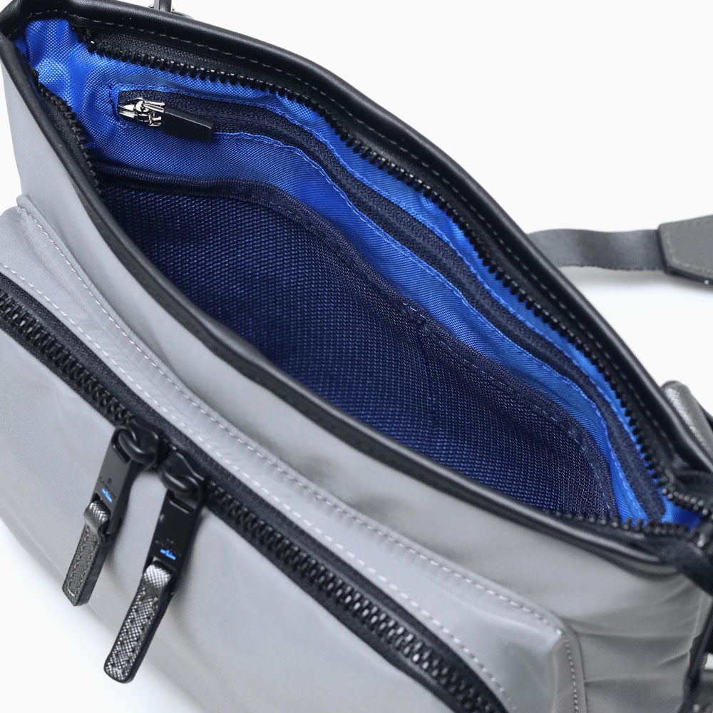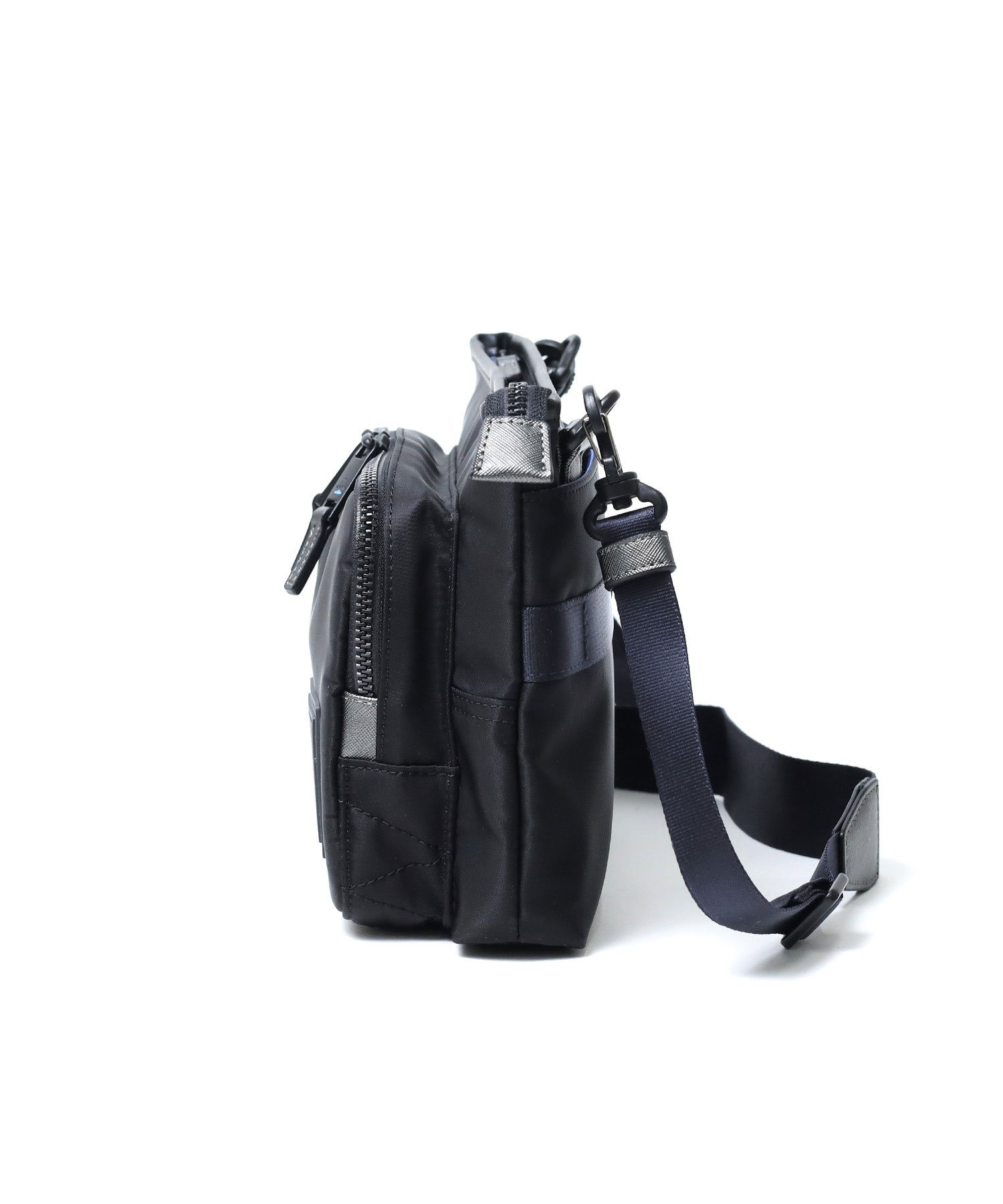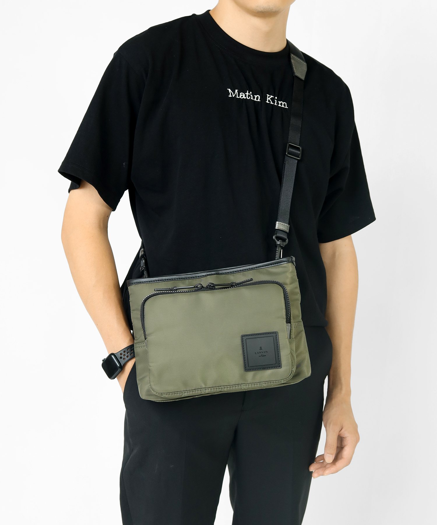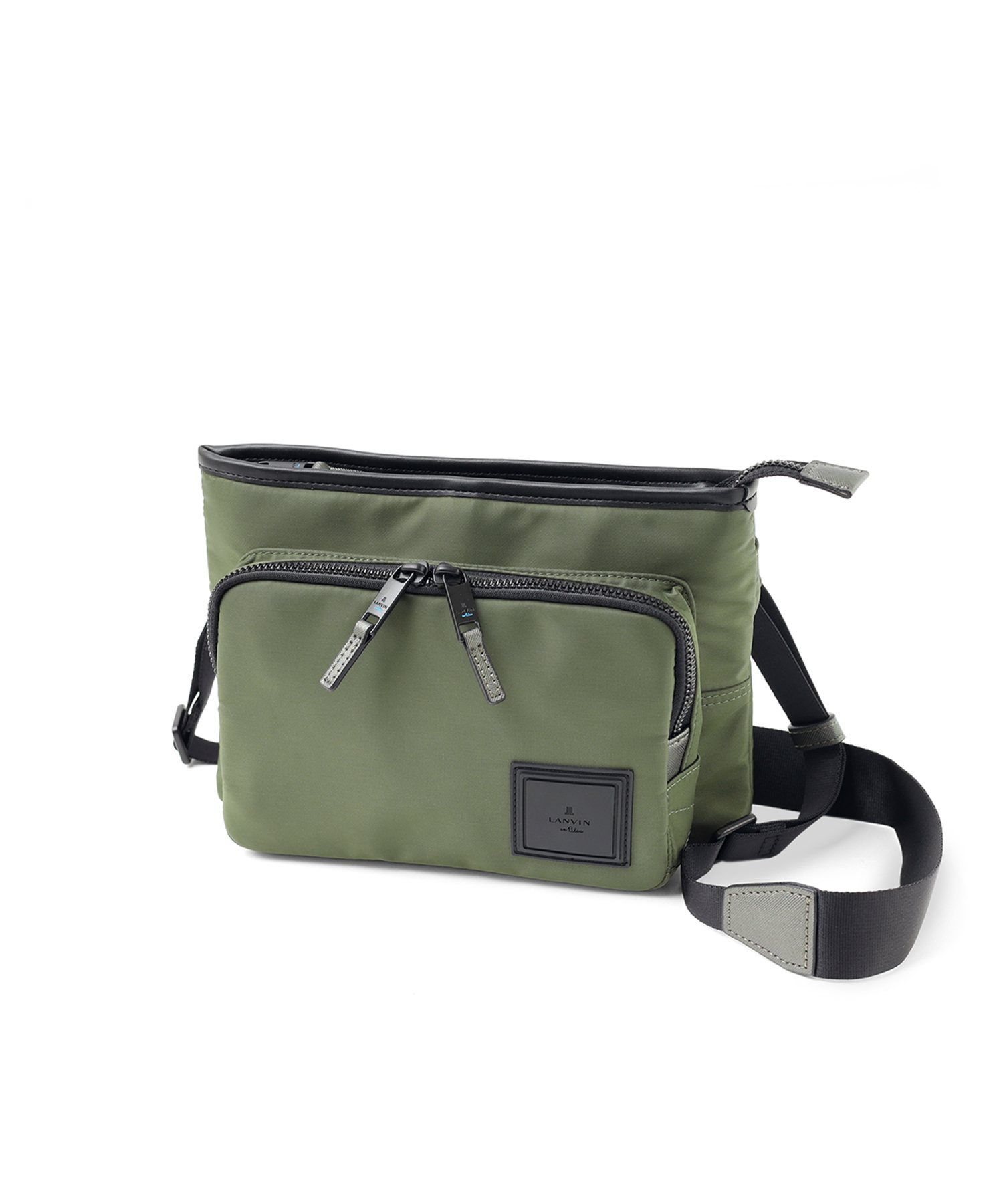 上品な質感と艶感が特徴のカジュアルショルダーバッグ。防水性に優れた機能的な素材で、天候を気にすることなくお使いいただけます。ポケット類が多数備わっており、日常使いにはもちろん旅行にもおすすめです。アクセントカラーとなるメタリックレザーが、ランバンオンブルーらしい個性を表現しています。