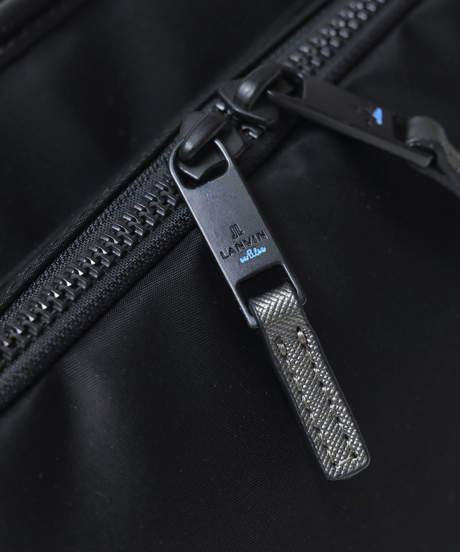 ファスナーには高強度で軽量なメタリックタフを使用。メタル調のエレメントが高級感を演出しています。また、付属革にアクセントカラーとしてガンメタリック色の革を使用しており、ランバンオンブルーらしさを表現しています。