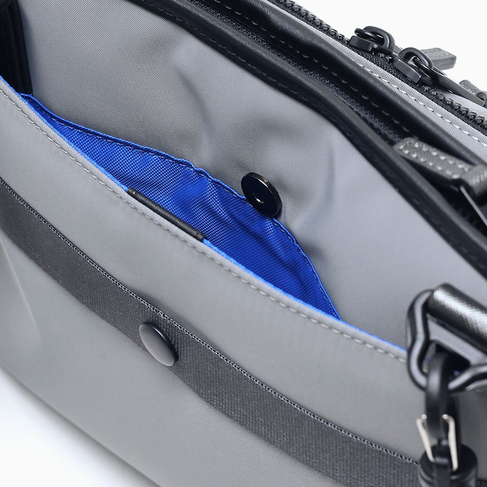 本体素材には、上品な質感と艶感が特徴の高密度ナイロンツイルを使用。裏加工を施すことで、防水性を高めています。