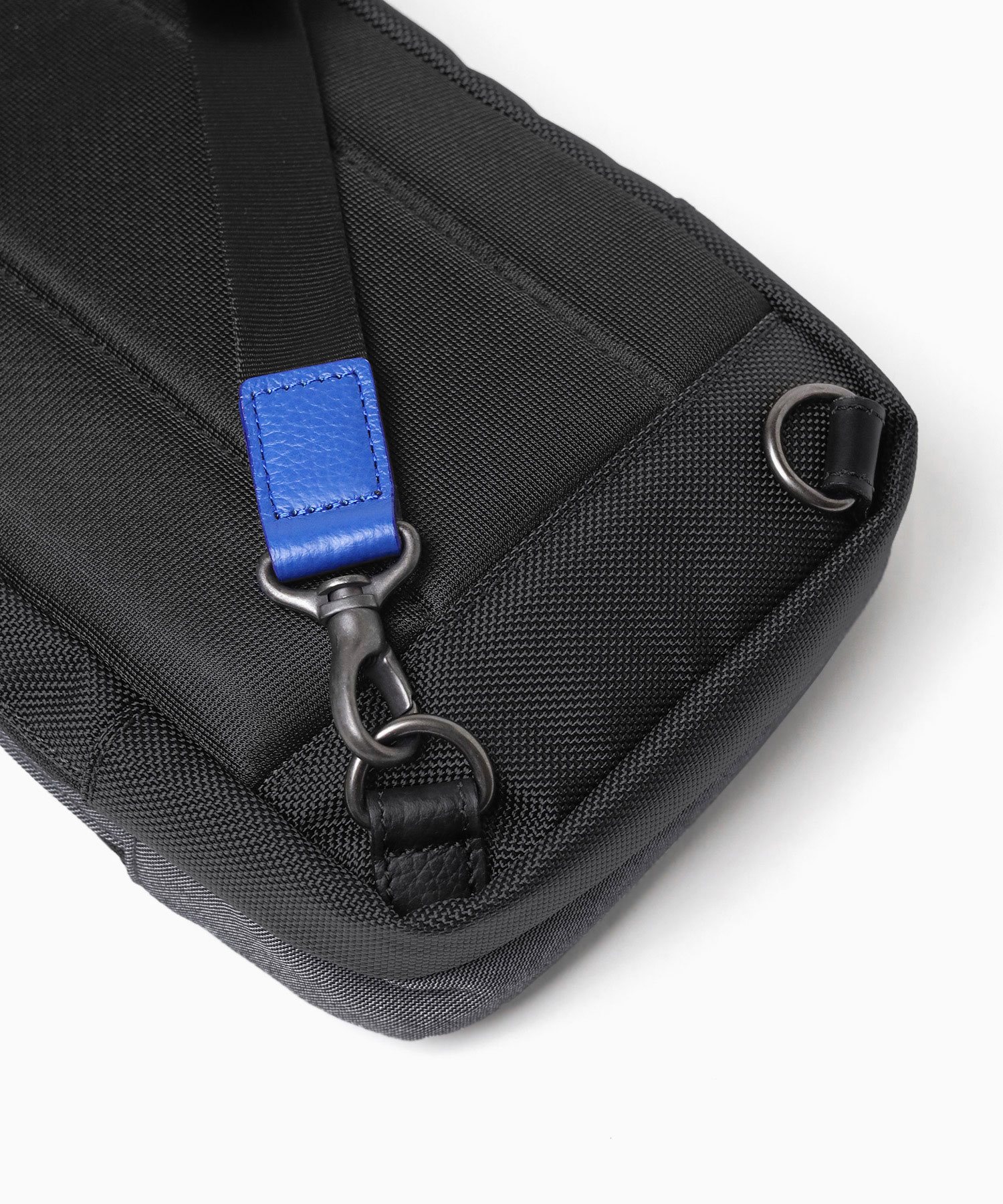 本体素材には、高感度・多機能素材として主に服地で用いられる、毛玉や糸飛びが発生しにくくする抗ピリング加工が施された、LANATEC(ラナテック)という杢調ポリエステルを使用しています。表面には撥水加工を施し、裏加工でカツラギを貼り合わせることによって耐久性のある鞄用素材に仕上げました。マチと底部分には耐摩耗性や引き裂き強度に優れたコーデュラ社製1680dバリスティックナイロンを使用しています。