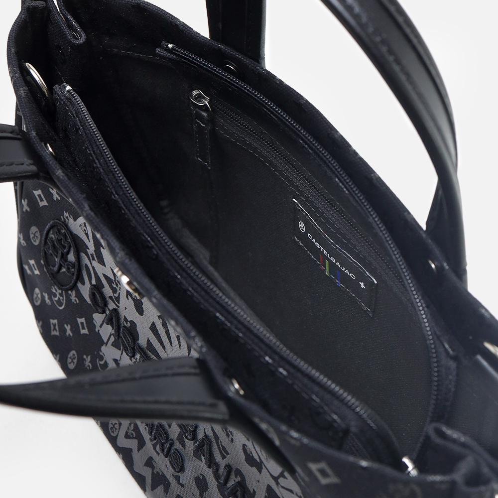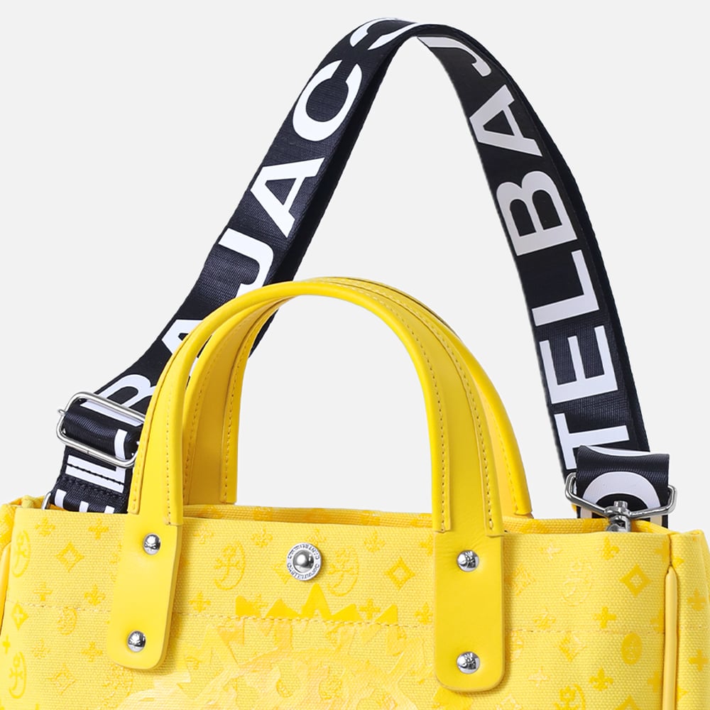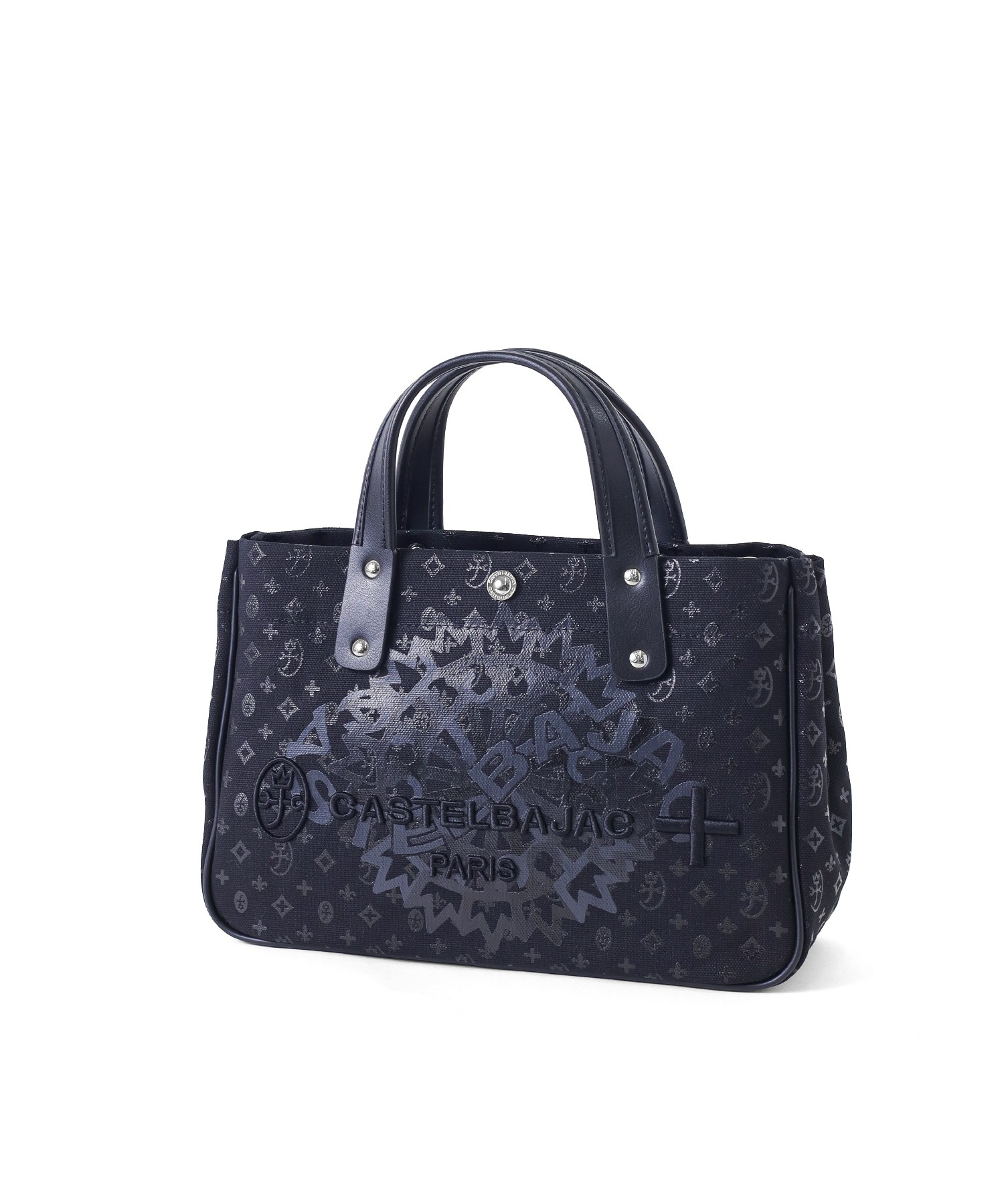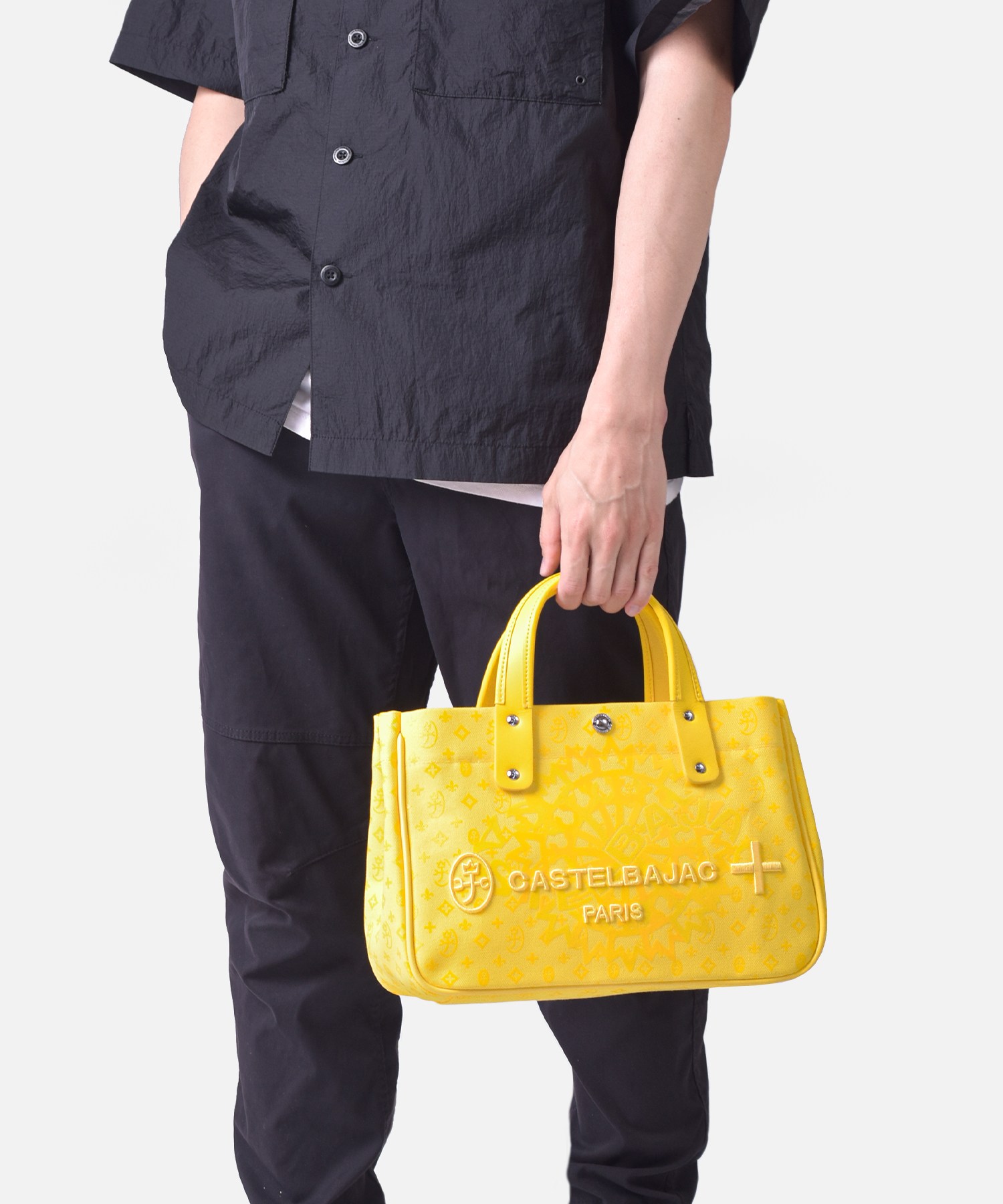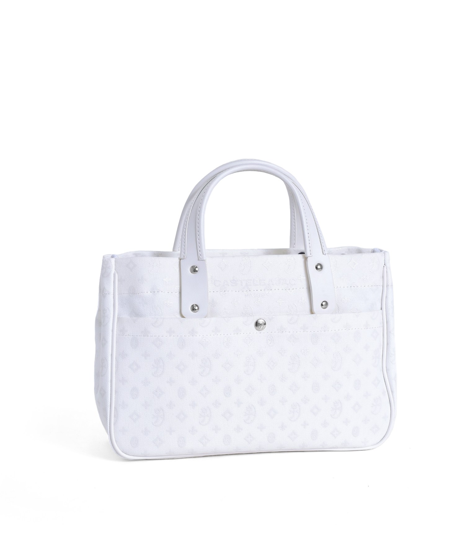カステルバジャックの8号帆布を使用したB5サイズのドライビングトートバッグ。本体はブランドの定番であるモノグラムと正面に大胆にデザインしたブランドロゴをプリントした遊び心溢れるデザインです。