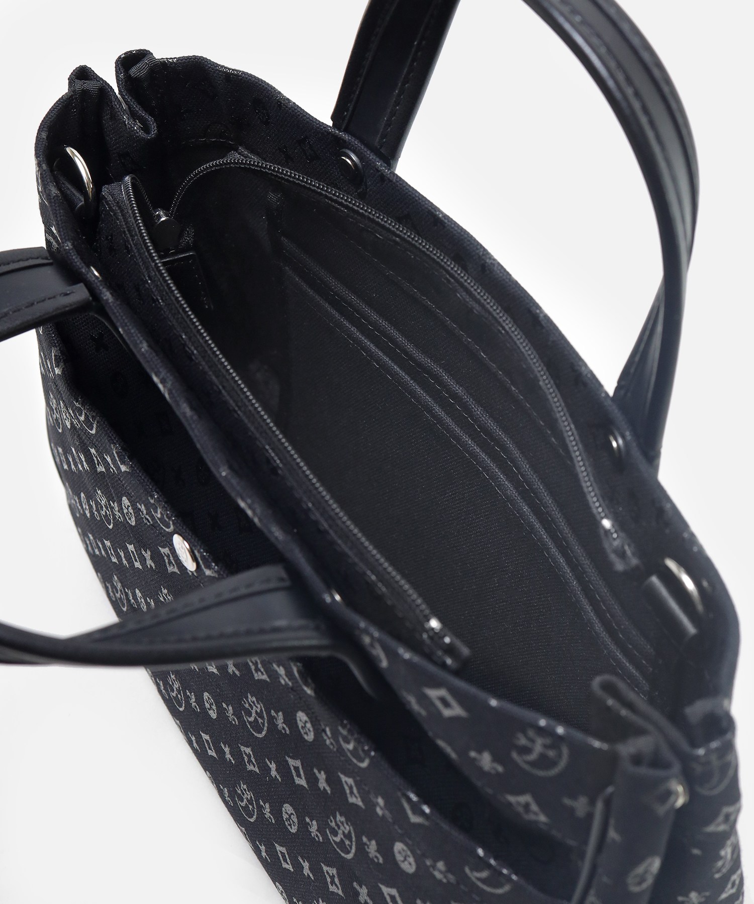 バッグ端のボタンを外すことでマチ幅を広げられる構造で取り外し可能なショルダーバッグが付属しています。収納機能は本体背側にファスナーポケットがあり、すぐに取り出したいモノの収納に便利です。内装部分はメインルームの正面側にオープンポケットが2つ、背面側にファスナーポケットがあります。