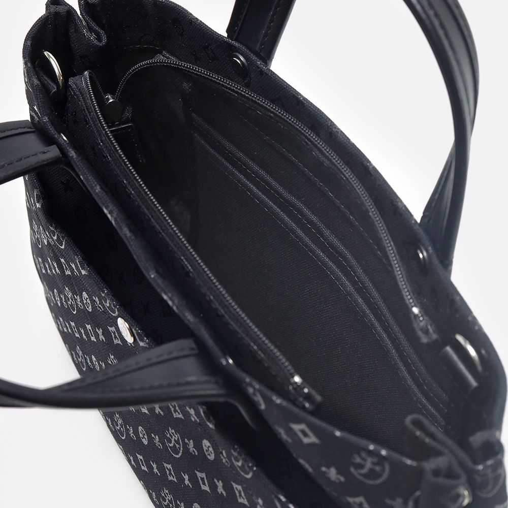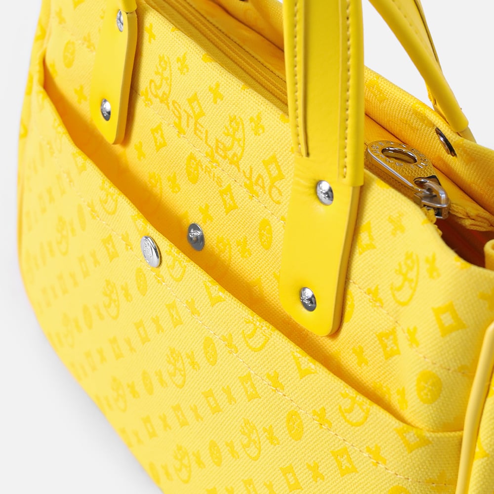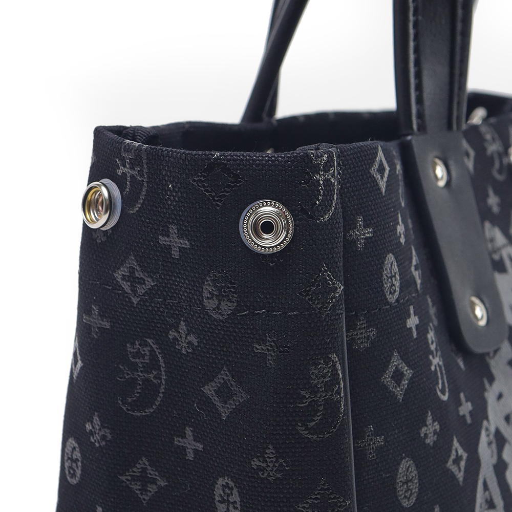 本体素材は8号帆布を使用しています。この素材は厚みのある丈夫な生地でできており様々なバッグに使用される素材です。この素材にブランドデザインをプリントして帆布感をなくすことでよりカジュアルに、使いやすいデザインに仕上げています。
