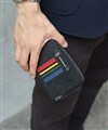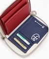 本体素材にはエンボス加工を施したイタリアンショルダーレザーを使用。植物タンニンで丁寧になめされた素材で革本来の自然な艶感が魅力になり、使い込むことで味わいの深まるエイジングが堪能できることもポイントです。また4原色のバジャックカラーを、革をくり抜き手作業で繊細に埋め込むことで表現。ブランドロゴメタルと箔押しを組み合わせた表現で価値観を高めています。メタルパーツは革に埋め込むことで、衣服などへの引っ掛かりを軽減する工夫がございます。