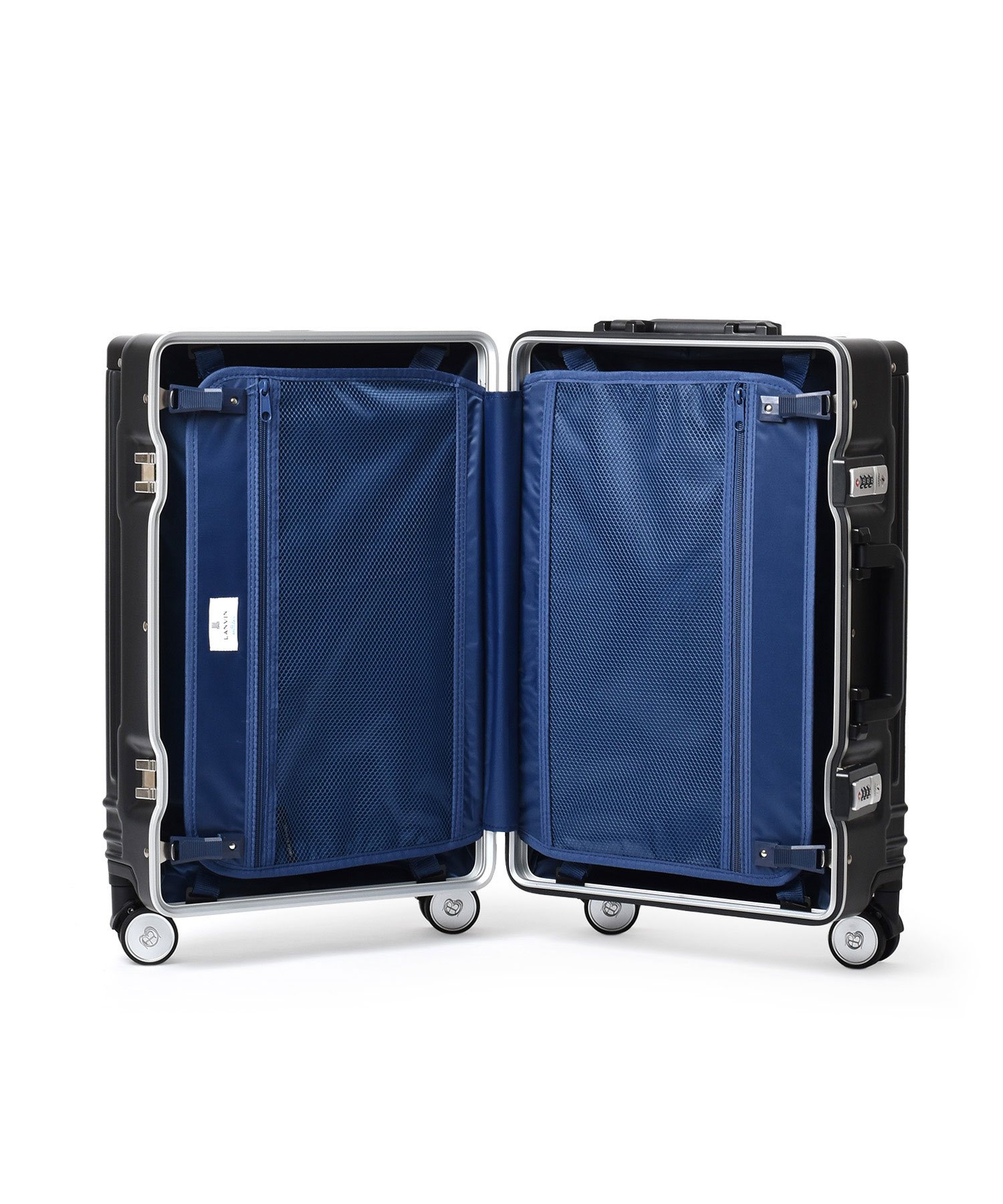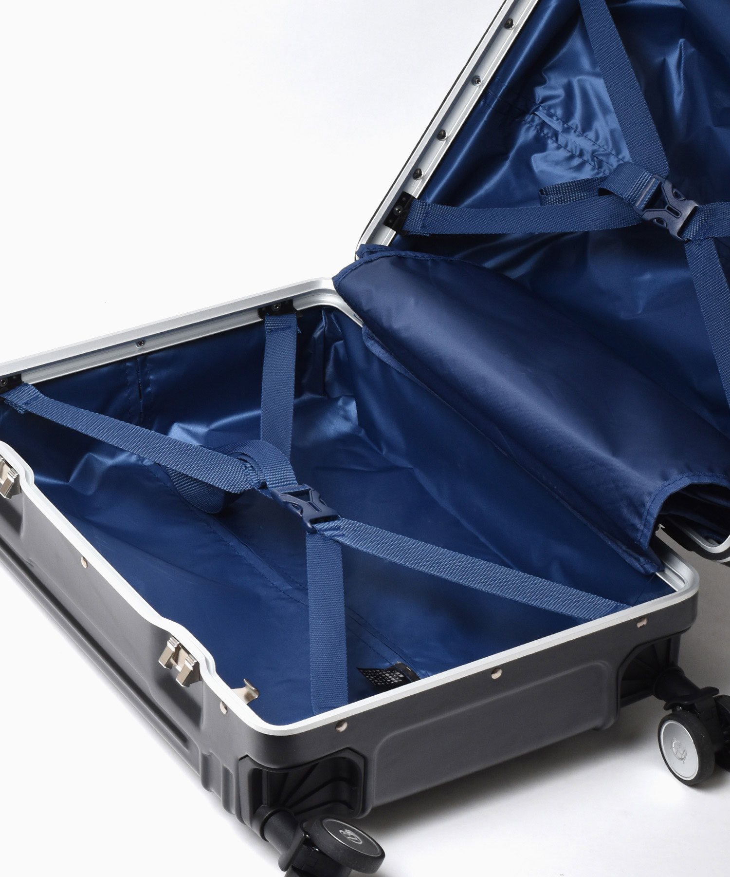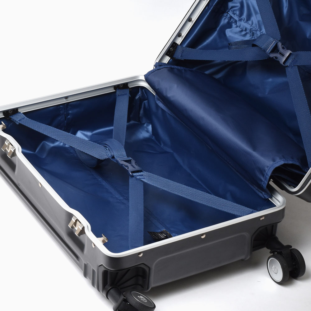 収納容量32L。1~2泊分の旅行・出張に最適な、機内持ち込みに対応したサイズです。両面に仕切り板とクロスベルトがそれぞれ付いており、荷物の荷崩れを防いでくれます。仕切り板のメッシュファスナーポケットは小物の整理に便利です。