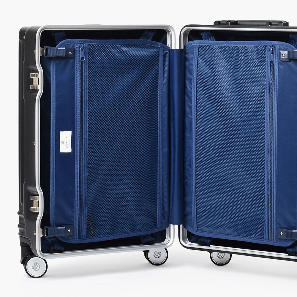 ブランドアイコンを全体に取り入れた、スタイリッシュで機能的なランバンオンブルーのキャリーケース。軽量で強度のあるPPE素材を使用しています。1~2泊の旅行に最適な、機内持ち込み可能サイズです。