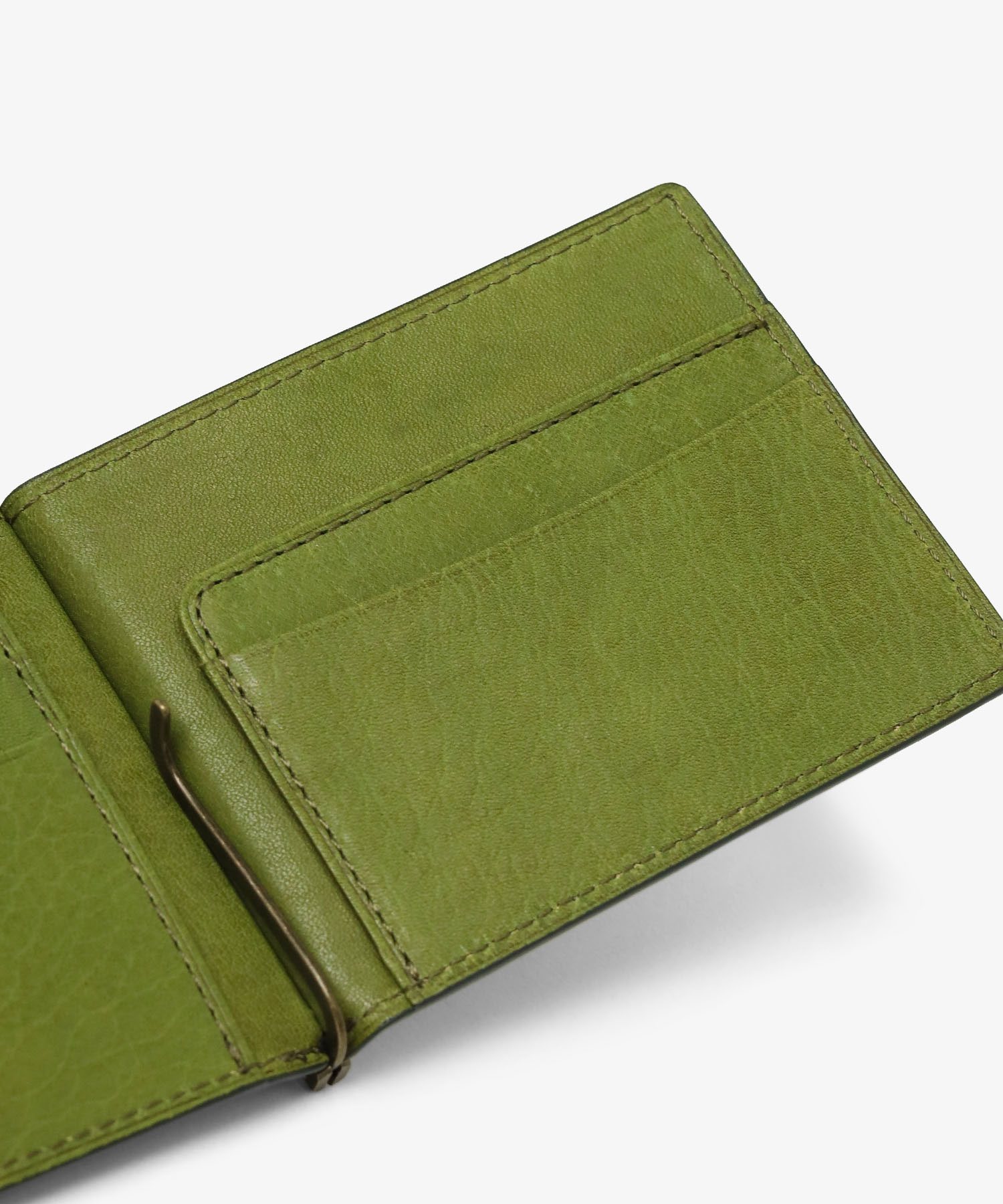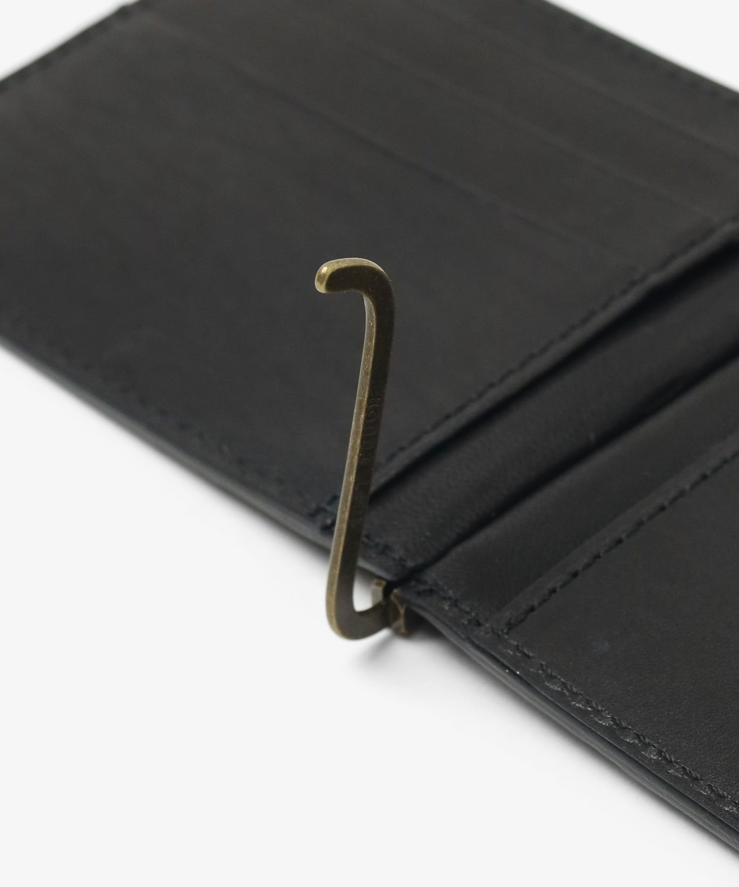 必要なものだけをスマートに持てるスリムな札ばさみ。カード段4つを備え、紙幣は中央のマネークリップに挟み、ポケットに収まりやすい薄さで日常使いに最適です。