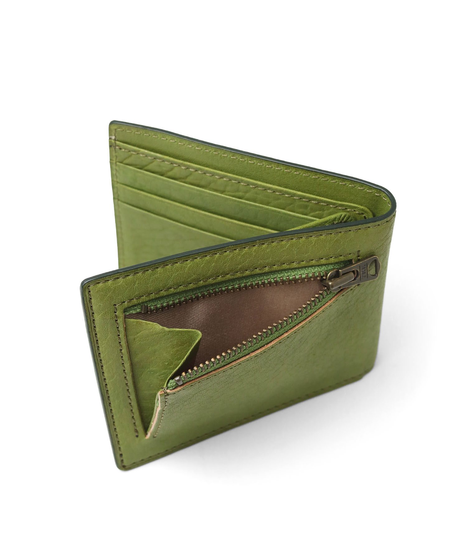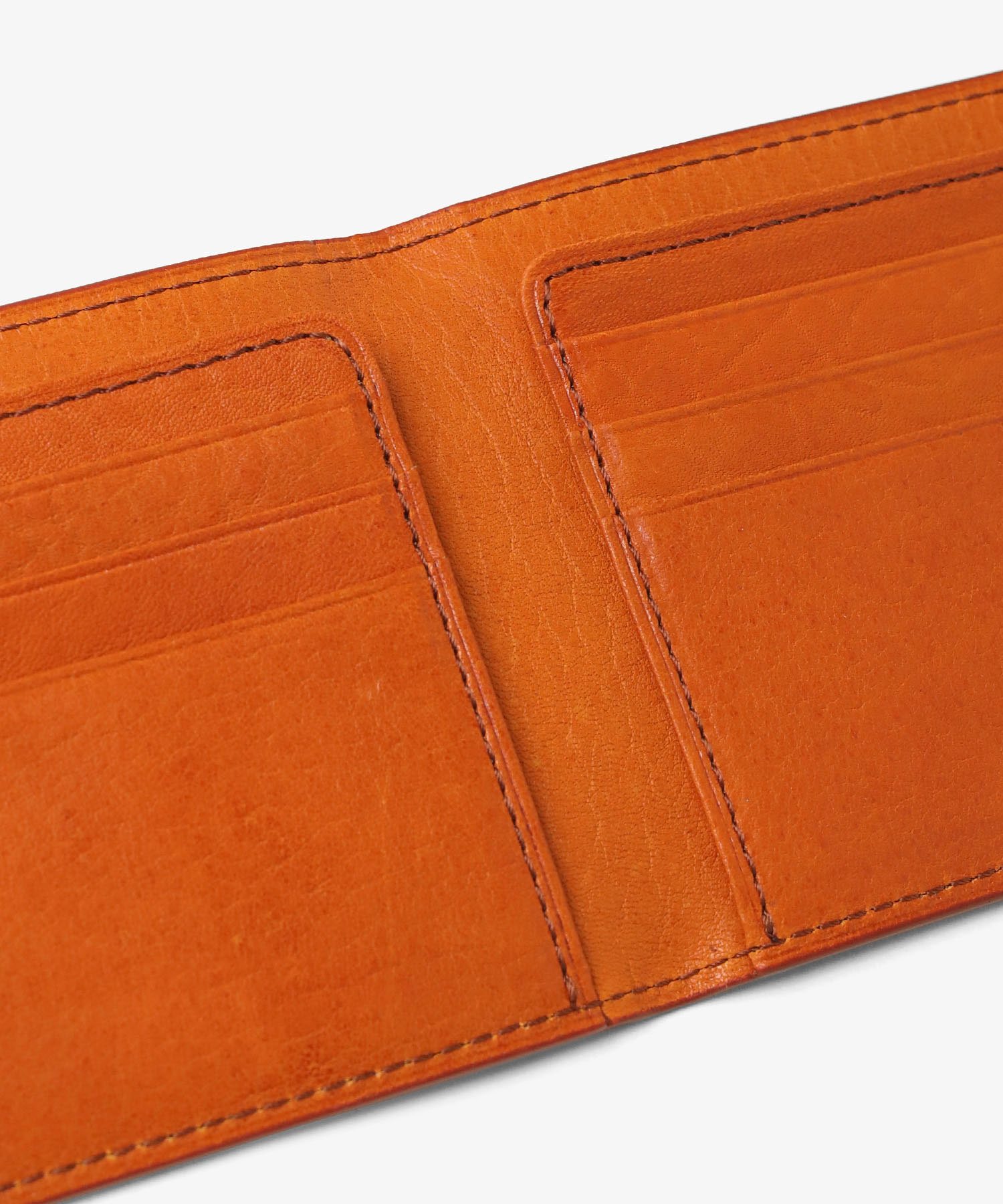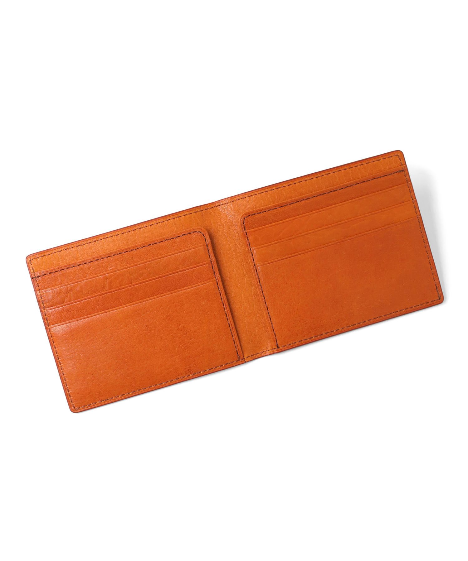 薄さにこだわったコンパクトな二つ折り財布。ミニマルな見た目ながら、紙幣・小銭・カード6枚をきちんと収納できる。ポケットに入れてもかさばりにくく、身軽に持ち歩きたい方にぴったりのアイテムです。