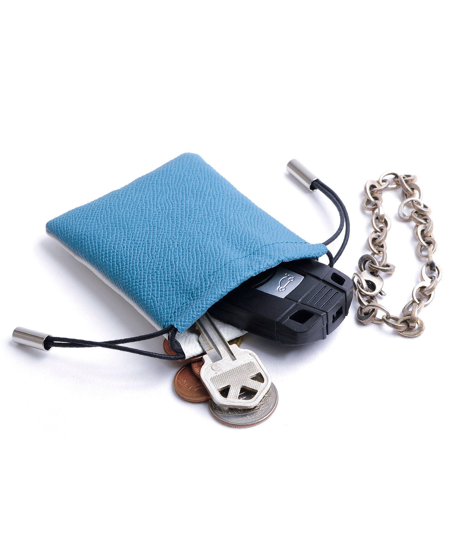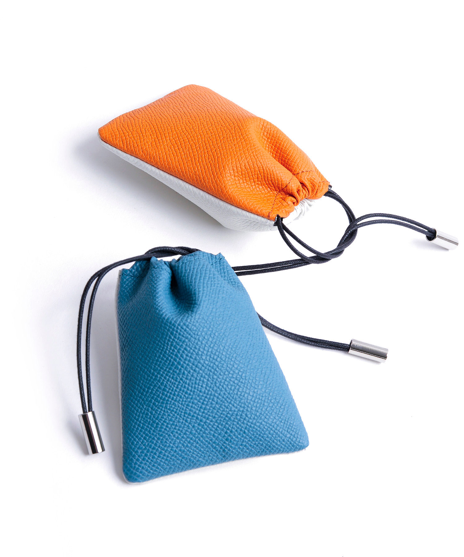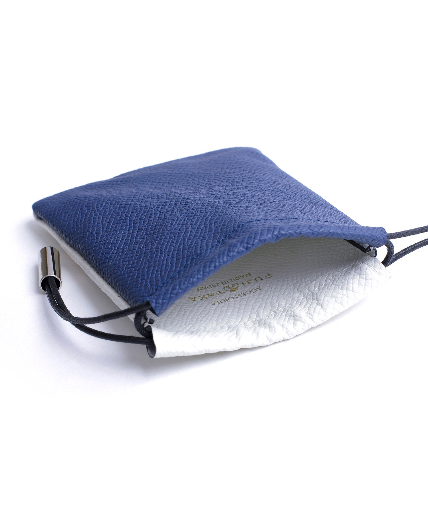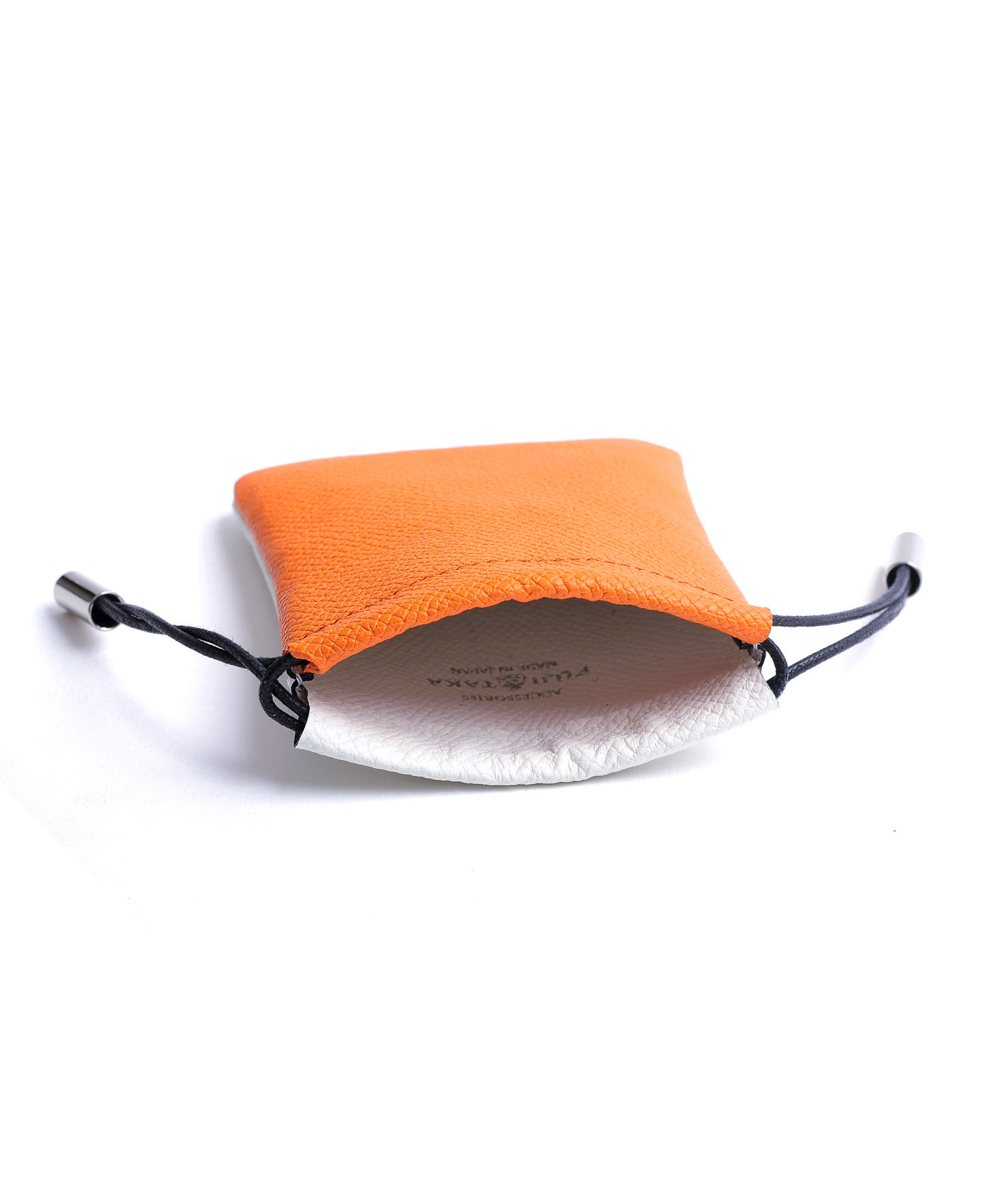 そんな小物をフジタカ流に作りました。クローム鞣しのカーフレザー“WAPROLUX”を使ったミニサイズのかわいい巾着袋。リングやスペアキーを大切に保管したり、まとめにくい薬などを鞄の中へ忍ばせておける多目的ミニポーチとしてお使いいただけます。