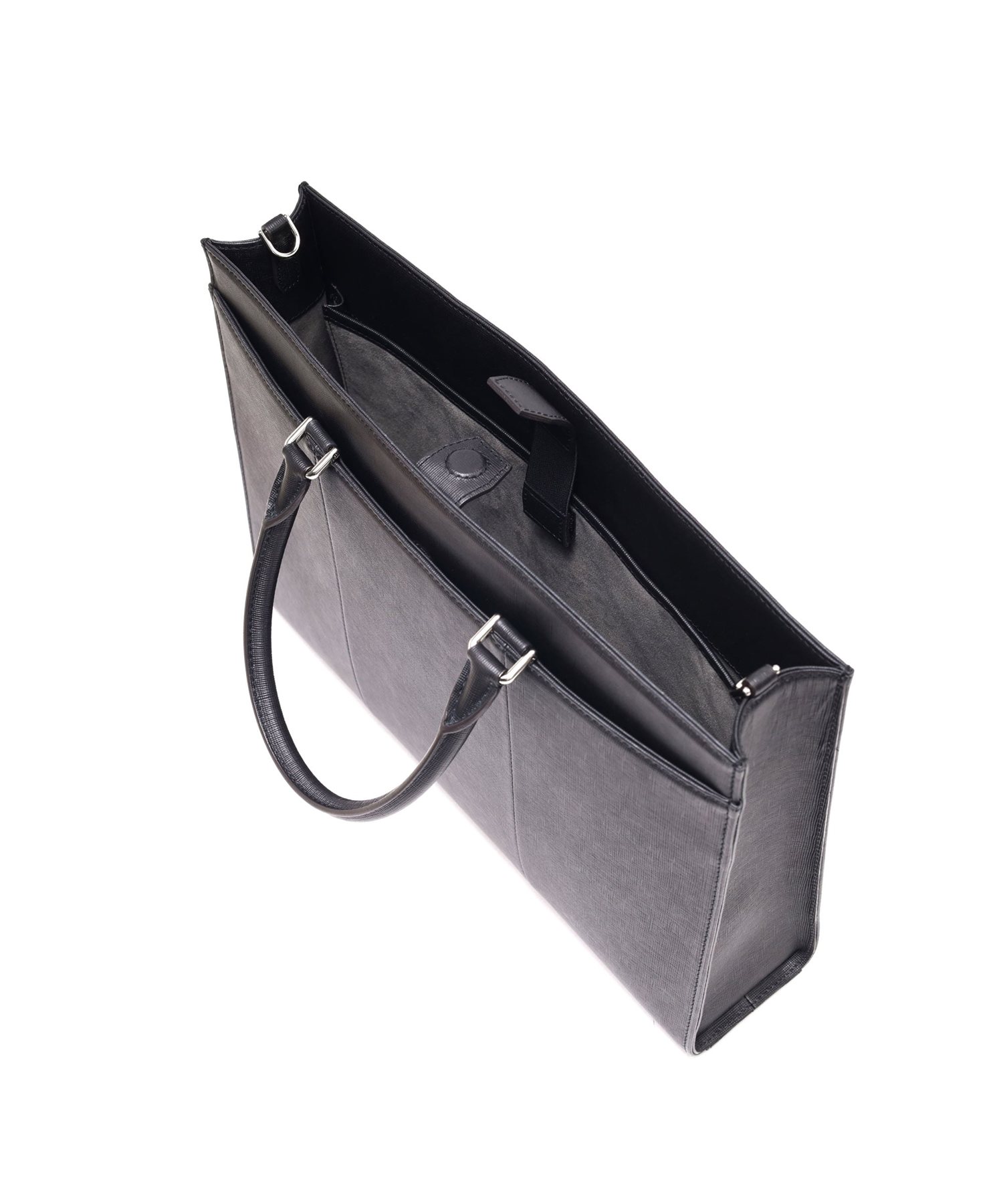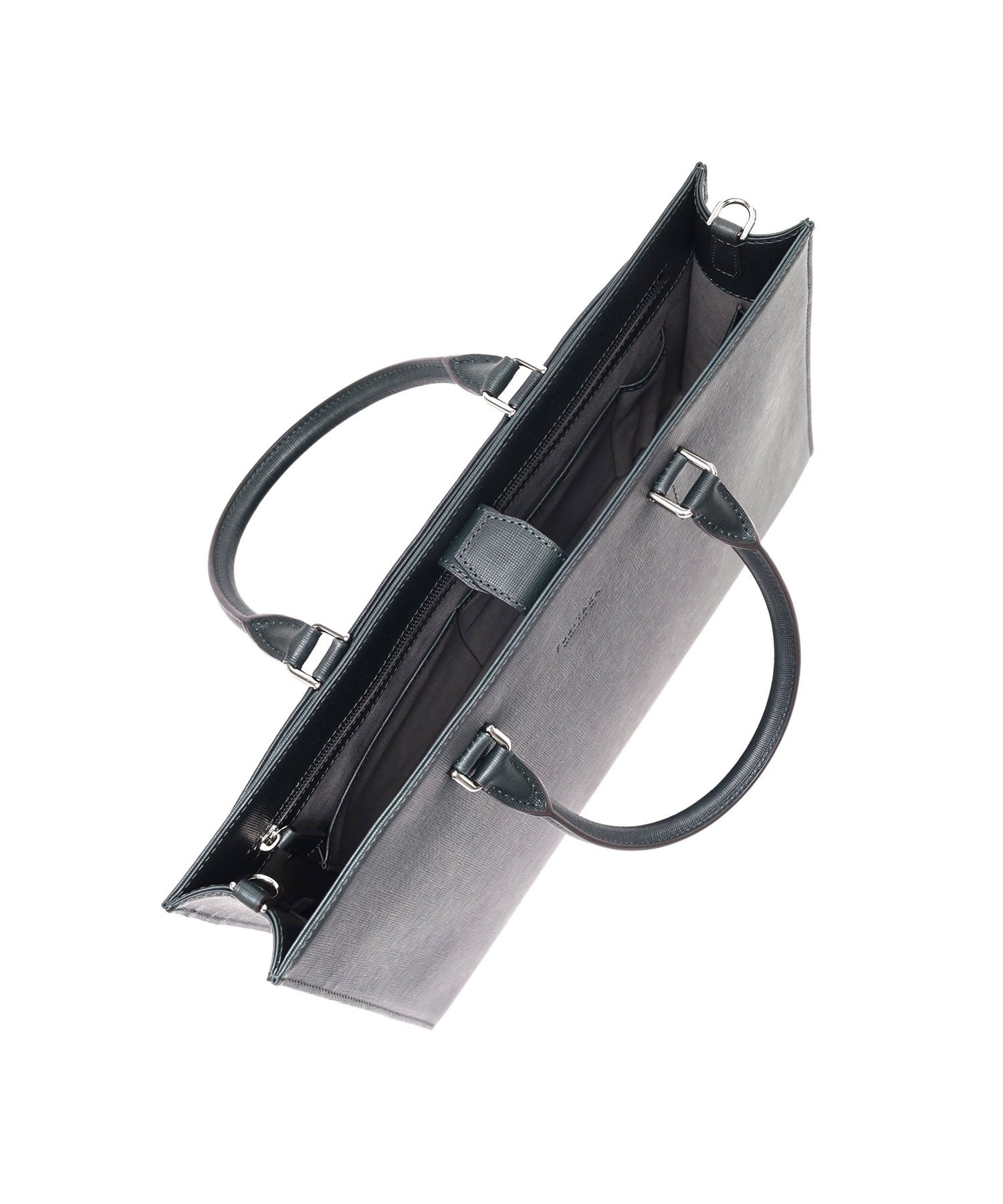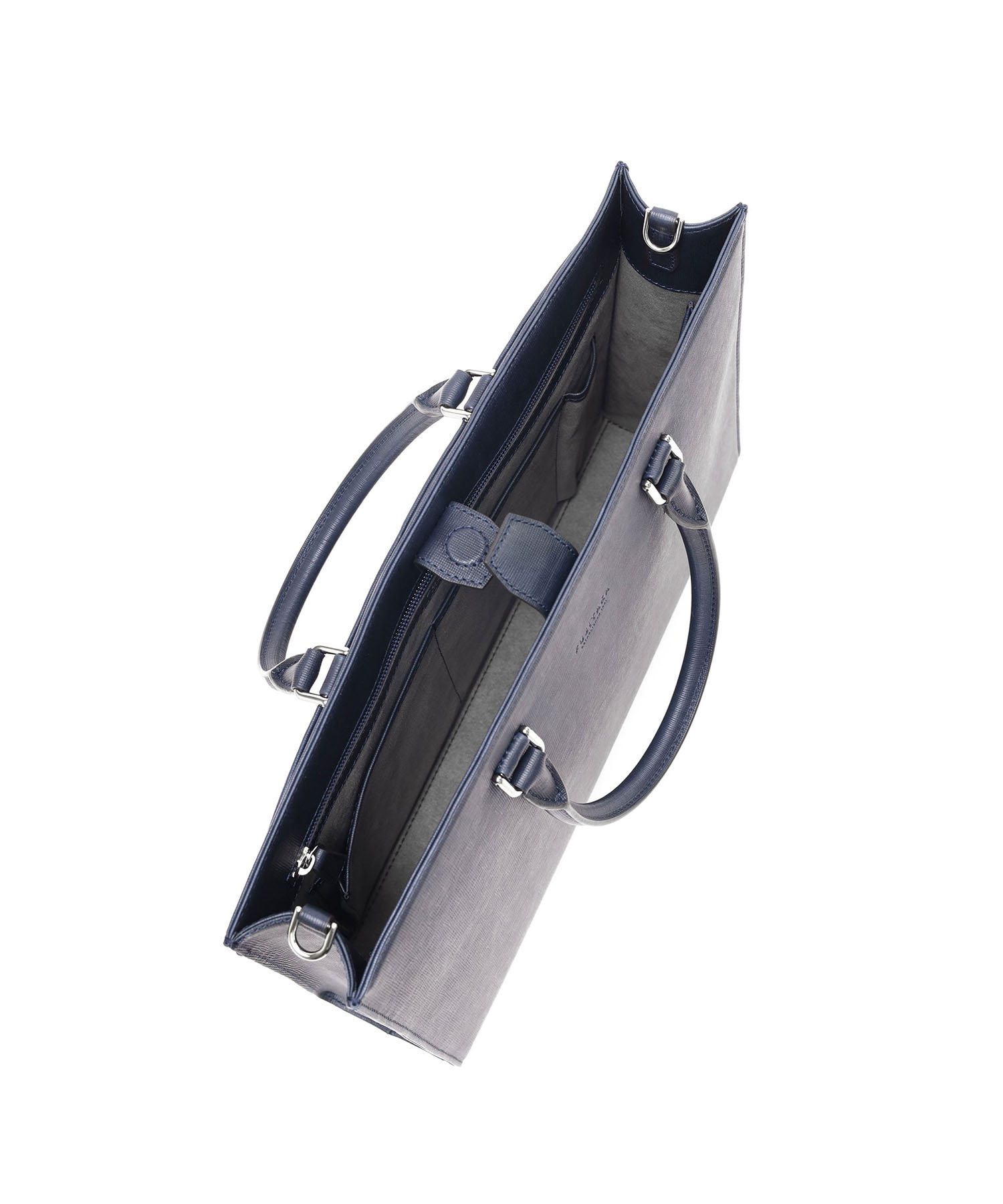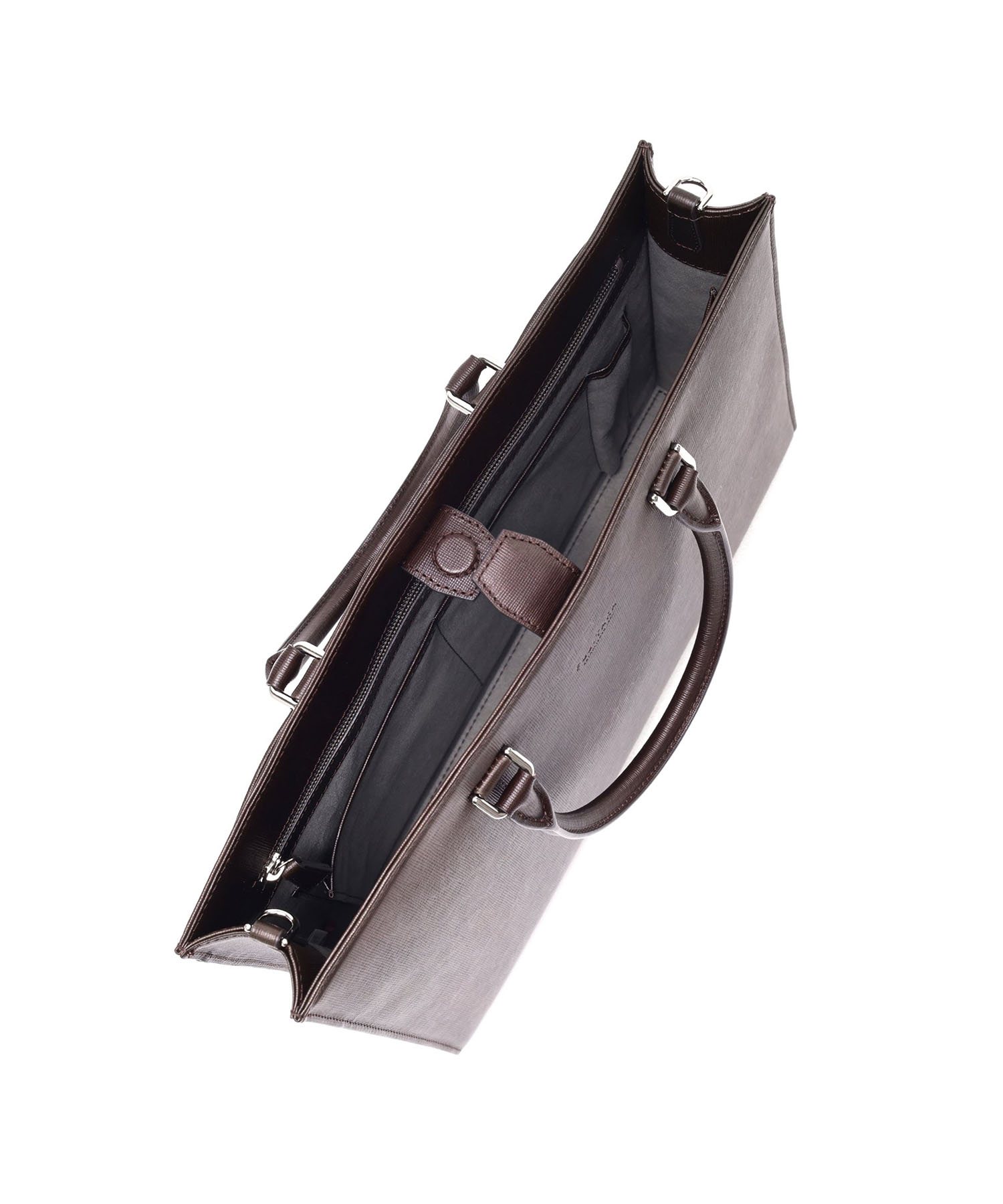 奥行きあるアンティック染色と型押しを施したオリジナルレザーを使用した、FUJITAKA Extra Antiqueシリーズのレザートートブリーフ。クラシックでスタイリッシュな角マチのデザインが特徴で、軽量で持ち運びがしやすいカバンです。メインコンパートメントファスナー部分の金具には、FUJITAKAのシンボルマークが刻印されています。