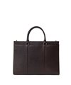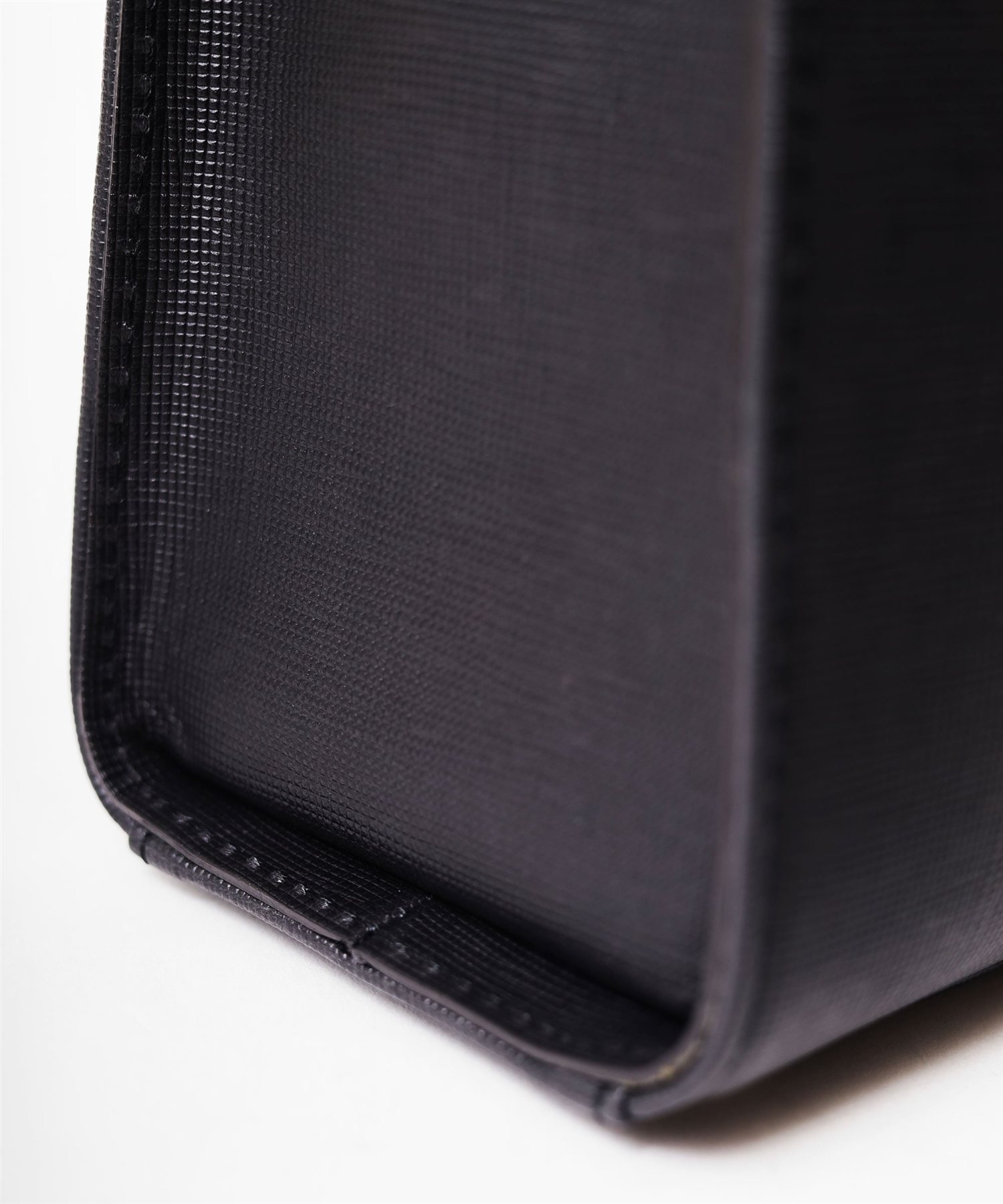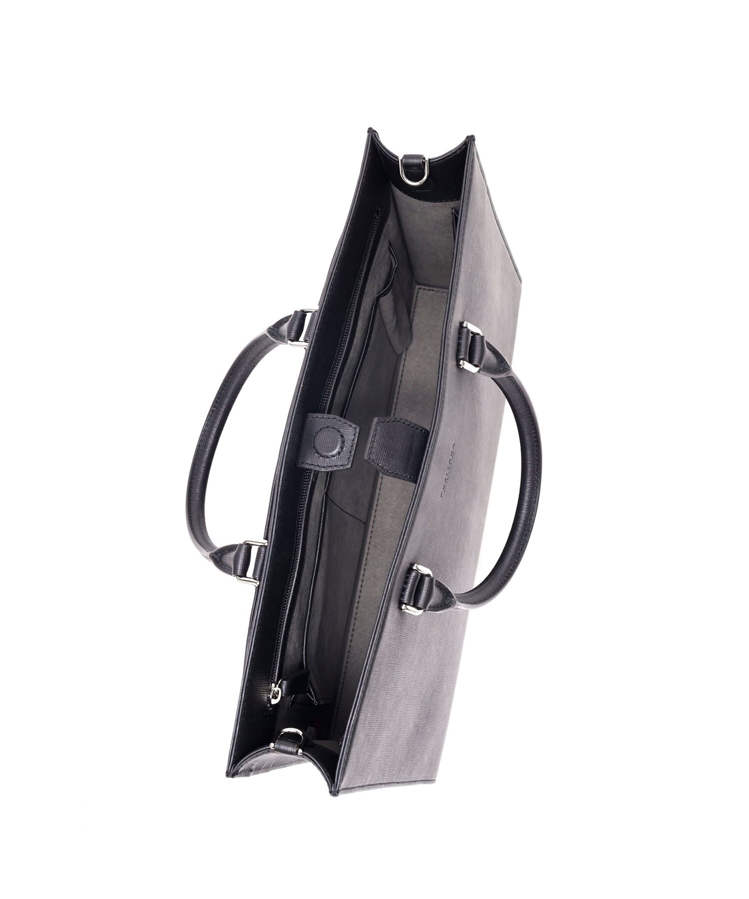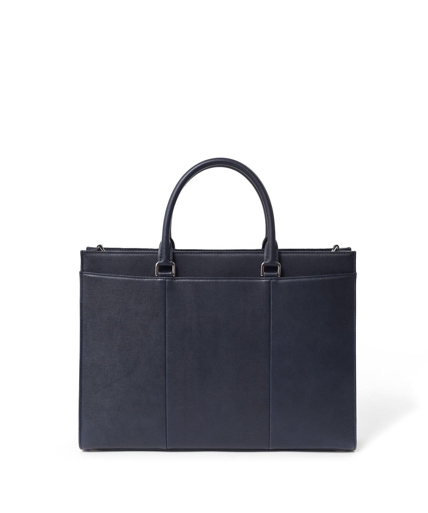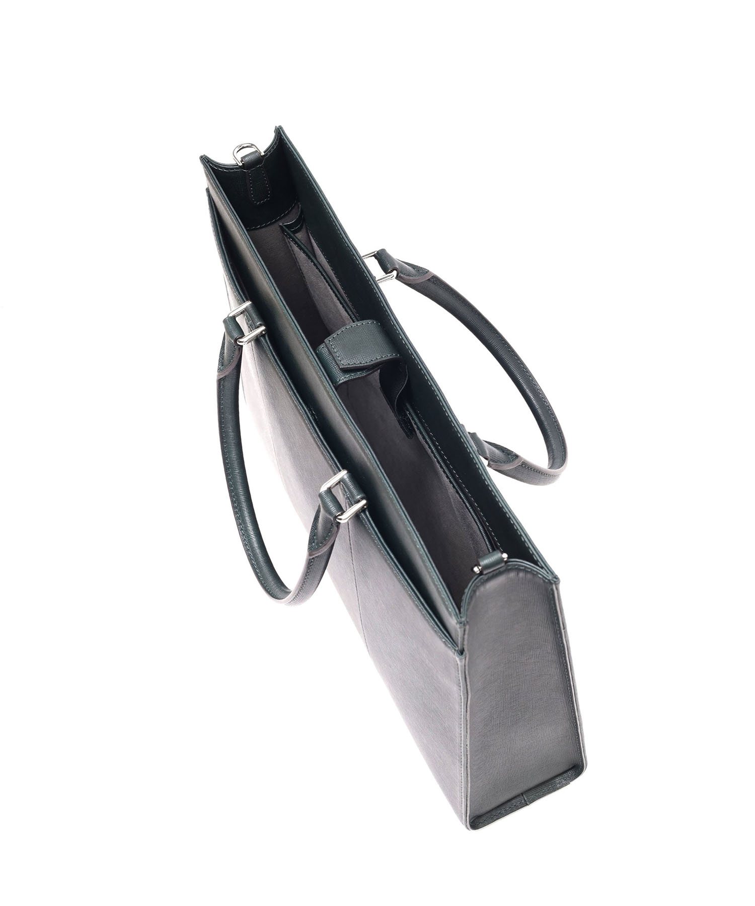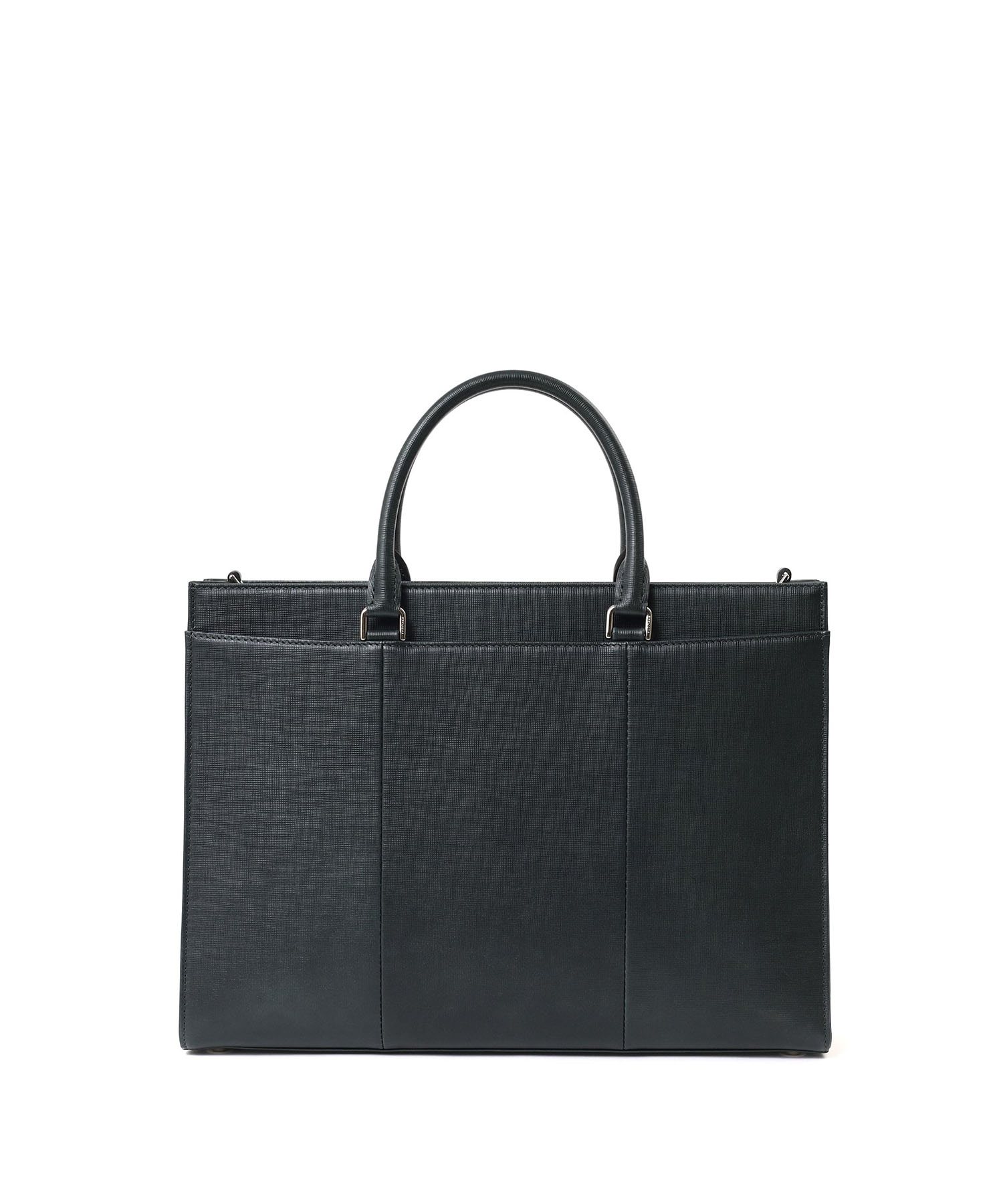 奥行きあるアンティック染色と型押しを施したオリジナルレザーを使用した、FUJITAKA Extra Antiqueシリーズのレザートートブリーフ。クラシックでスタイリッシュな角マチのデザインが特徴で、軽量で持ち運びがしやすいカバンです。メインコンパートメントファスナー部分の金具には、FUJITAKAのシンボルマークが刻印されています。