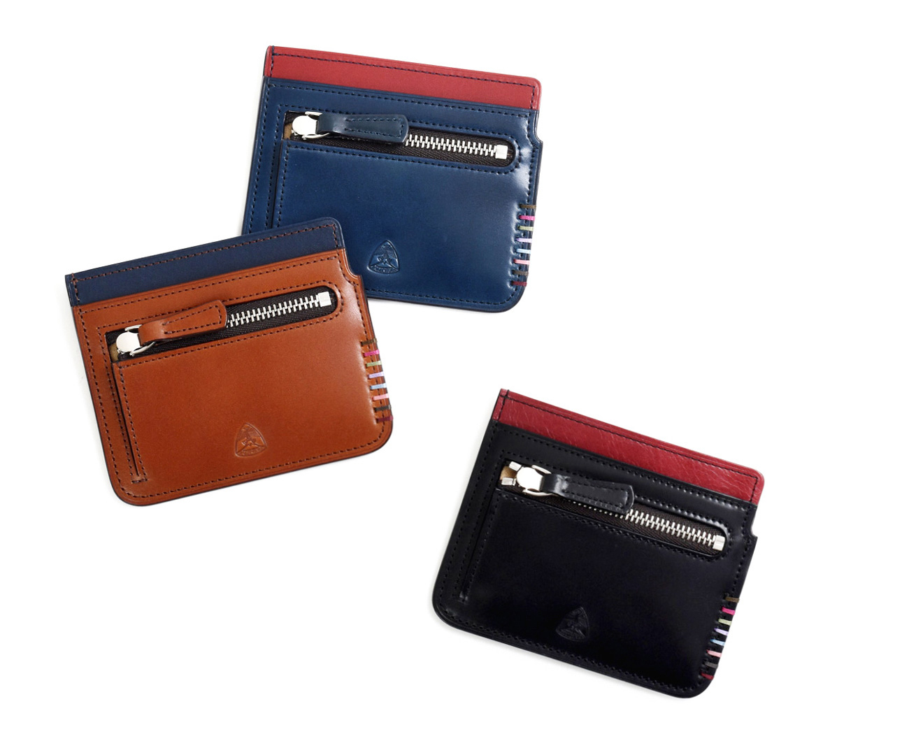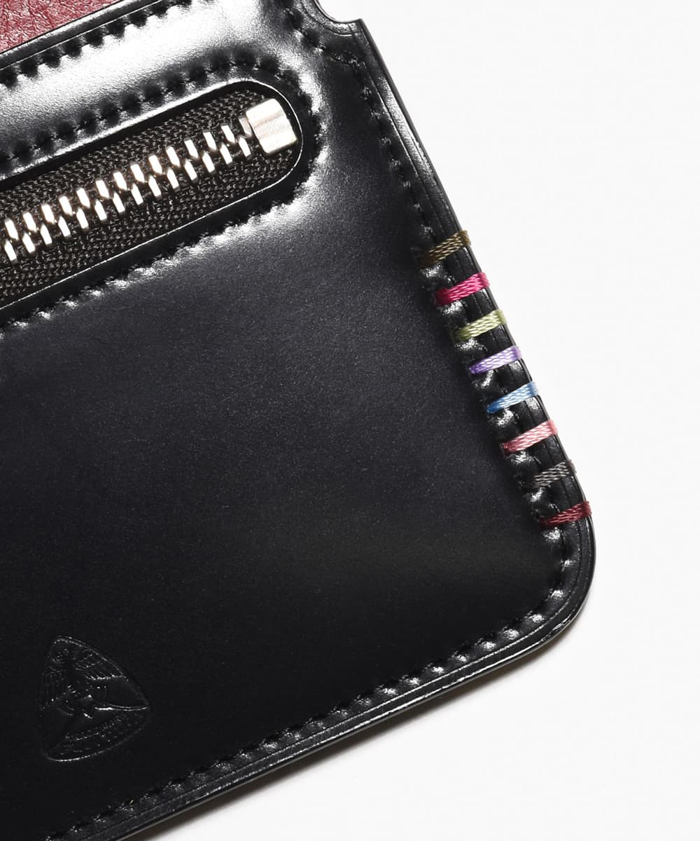 職人が一針一針、丁寧に縫い上げたカラフルなかがりステッチ。日本の”美”を、その絶妙な色合いで奏でる「藤」「桜」「梅」「若竹」「小豆」「銀鼠」「臙脂」「漆喰」「漆黒」などは、日本古来より自然の中にある身近な土・石・草花の色をイメージしたカラーです。主張しすぎない上品な色遣いが、お会計時のお手元をさりげなく彩ります。
