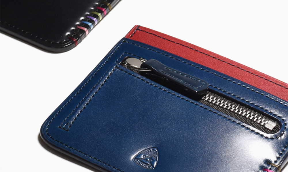 希少なオイルコードバンを主素材とし、内革に発色の良いアニリンレザーを使用したフジタカの『フォール カードケース』。カードと少量の小銭を持ち歩けるコンパクトでかつスマートな形です。