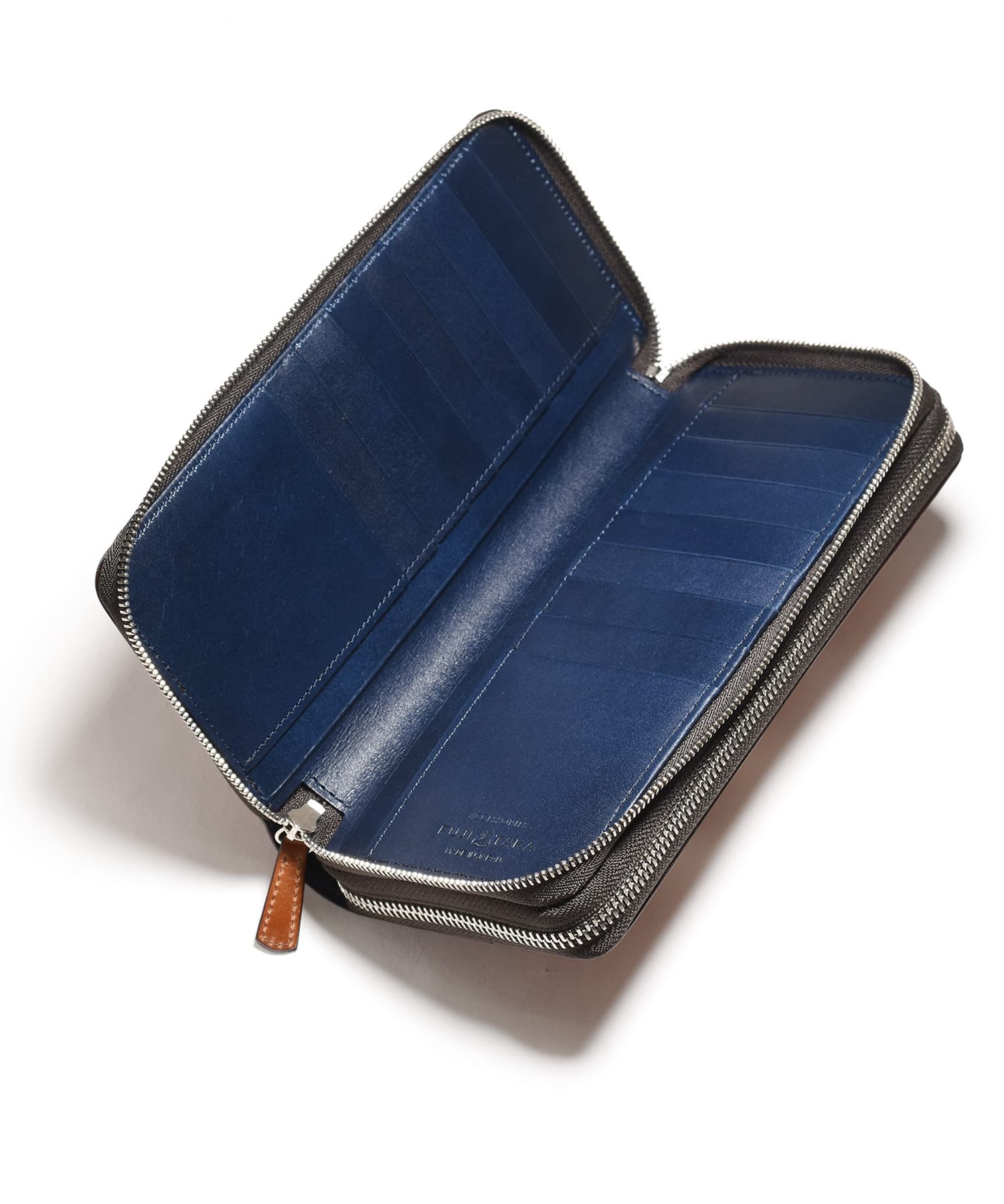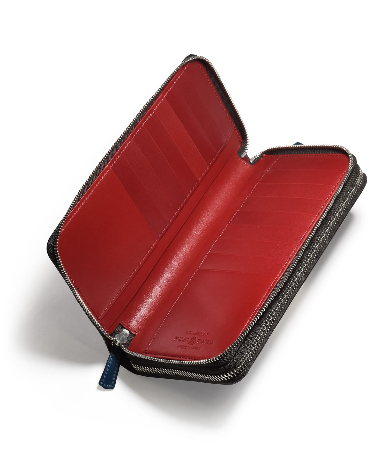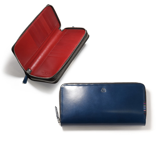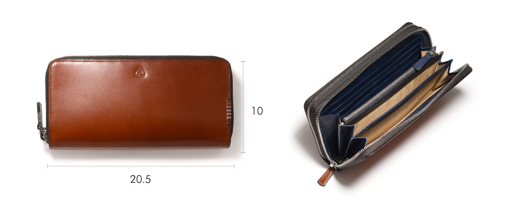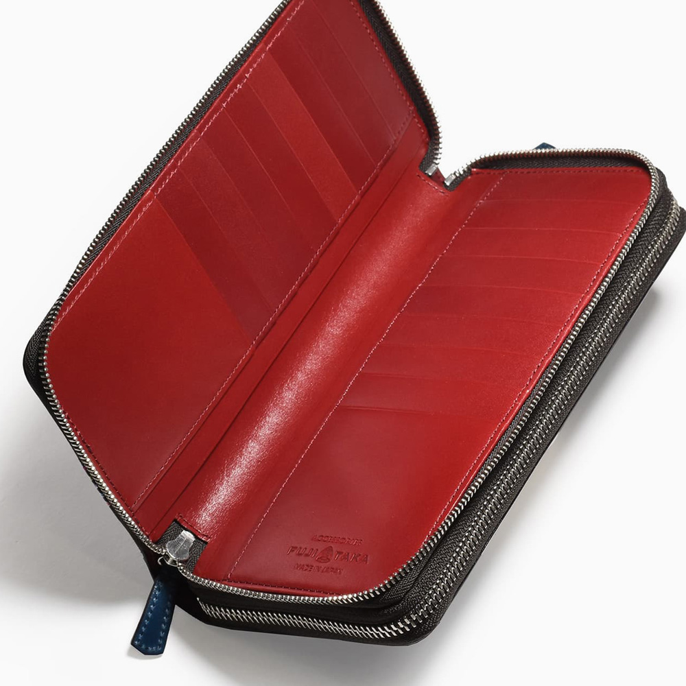 希少なオイルコードバンを主素材とし、内革に発色の良いアニリンレザーを使用したフジタカのフォール小物シリーズのセカンドウォレット。ラウンドファスナーを開けきれば口が大きく開き、出し入れも簡単です。