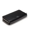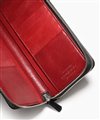 通常の長財布よりも一回り大きく、スマートフォンも収納でき、収納部分には磁気遮蔽シートを挟み込み、磁気カードなどへの影響を考慮した工夫を施しています。