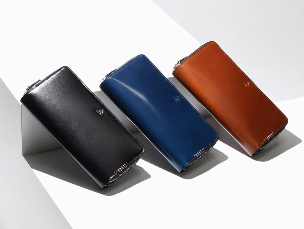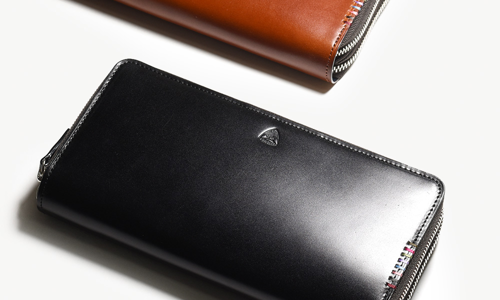 希少なオイルコードバンを主素材とし、内革に発色の良いアニリンレザーを使用したフジタカの『フォール 長財布 ラウンドファスナー セカンドウォレット』。