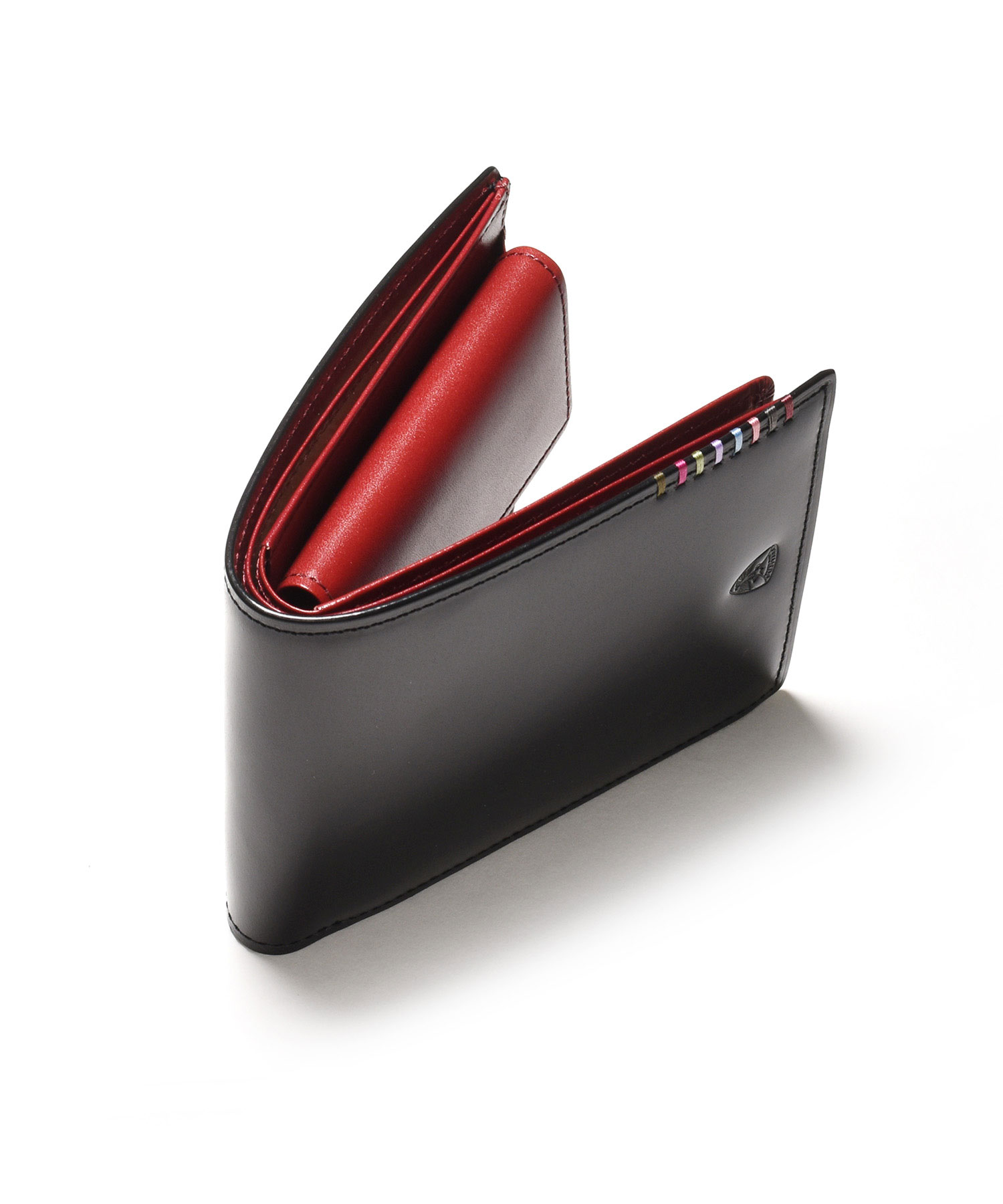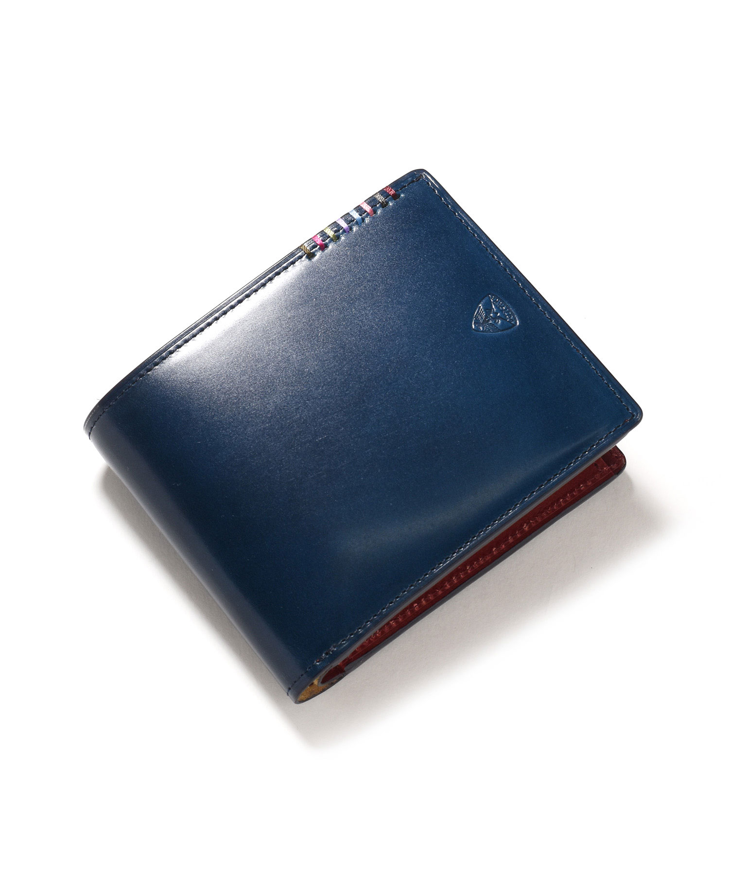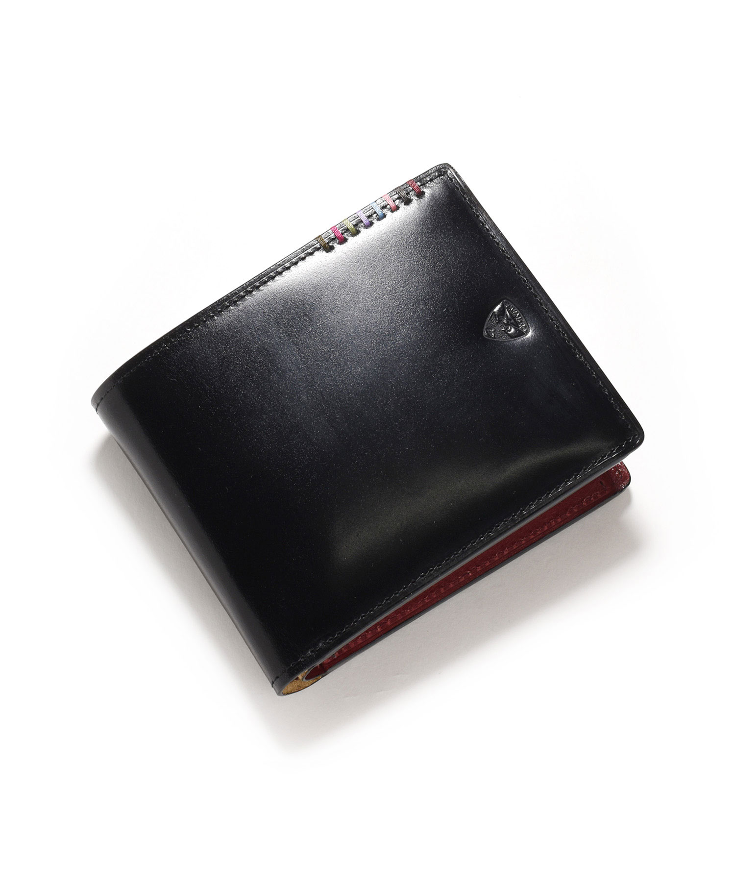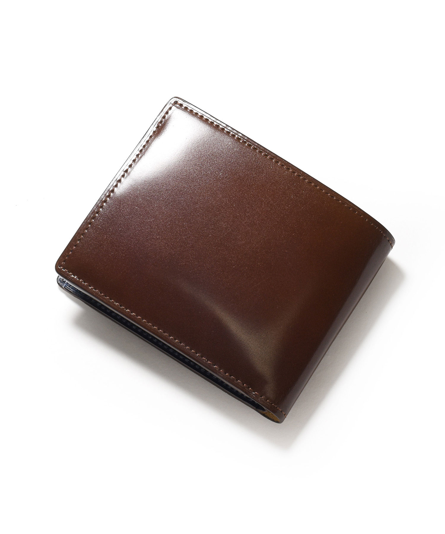希少なオイルコードバンを主素材とし、内革に発色の良いアニリンレザーを使用したフジタカのフォール小物シリーズの2つ折り財布。アオリ付きのため、カード室が通常よりも多いのが特徴です。