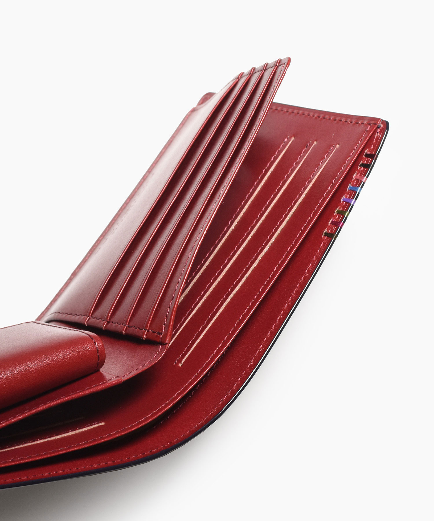 メインルームには札入れが2室、仕切り付き小銭入れ、フリーポケットが3、カード段が10あり、十分な収納力を持っています。