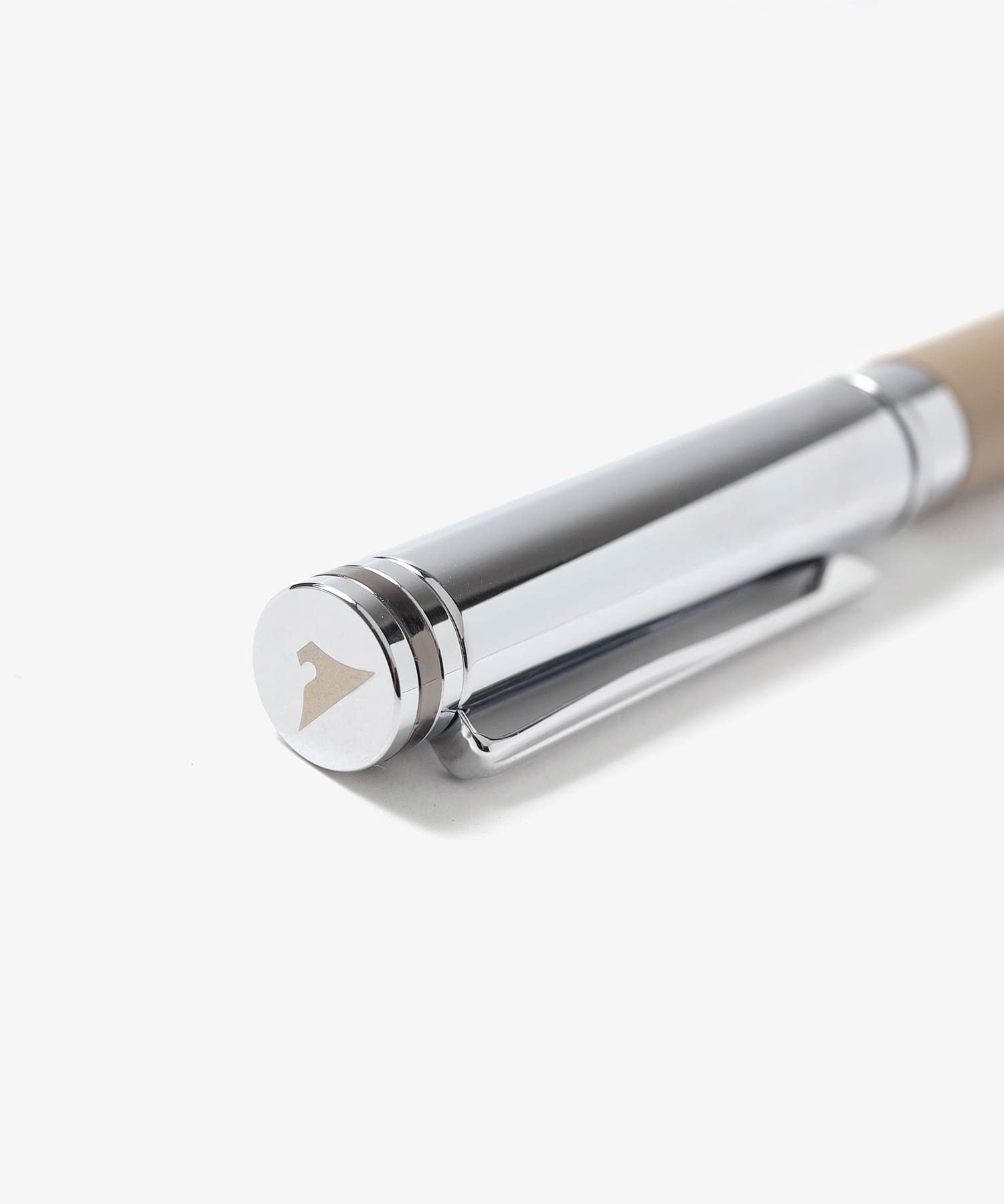 国産オイルヌメ革を手持ち部分に巻いてより高級感を演出。 ワンポイントでヘッド部分に富士山のマークをあしらい、 FUJITAKAオリジナルのボールペンに仕上げました。