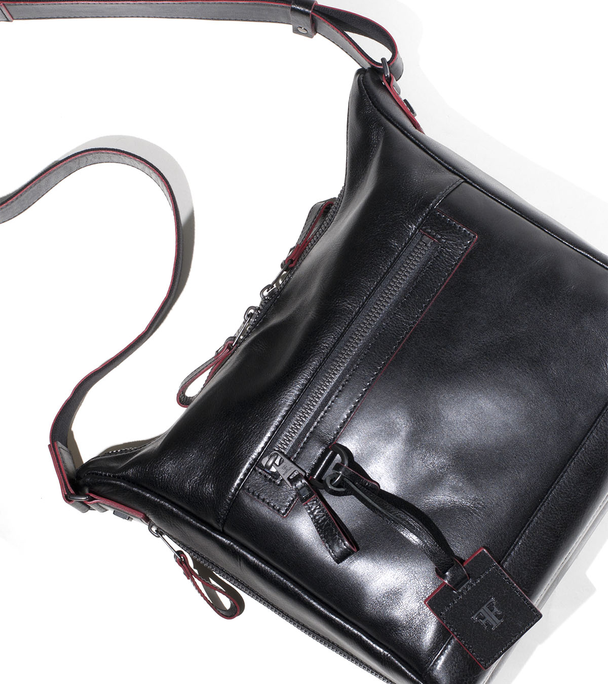 大人の上質な休日スタイルを提案する、FT by FUJITAKA ホークのレザーショルダーバッグ。シンプルでラグジュアリーなデザインと質感が、ワンランク上のカジュアルスタイルを演出。