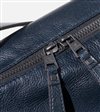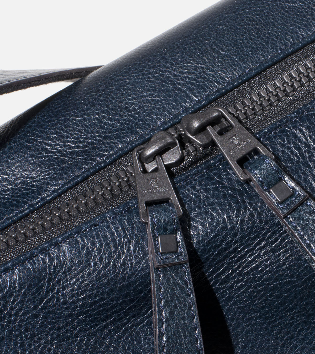 厳選された上質な原皮にオイルを含ませて、アニリン染料で染色したレザー。ブランドのコンセプトカラーでもある[日本古来の伝統色] 深い赤色と渋い藍色、そして黒色を、深みと透明感のある色合いで表現しました。地シボの凸部分を焦がしてから丁寧にこなしたソフトな革の味わいは、コシがありながらもしなやかな質感が魅力。エイジングによって、さらにツヤが増していきます。マットなブラックで統一された金具やファスナーが、モダンでクールな印象を生み出します。