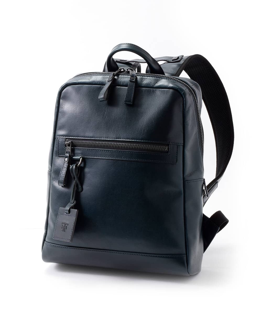 大人の上質な休日スタイルを提案する、FT by FUJITAKA ホークのレザーリュックサック。シンプルでラグジュアリーなデザインと質感が、ワンランク上のカジュアルスタイルを演出。