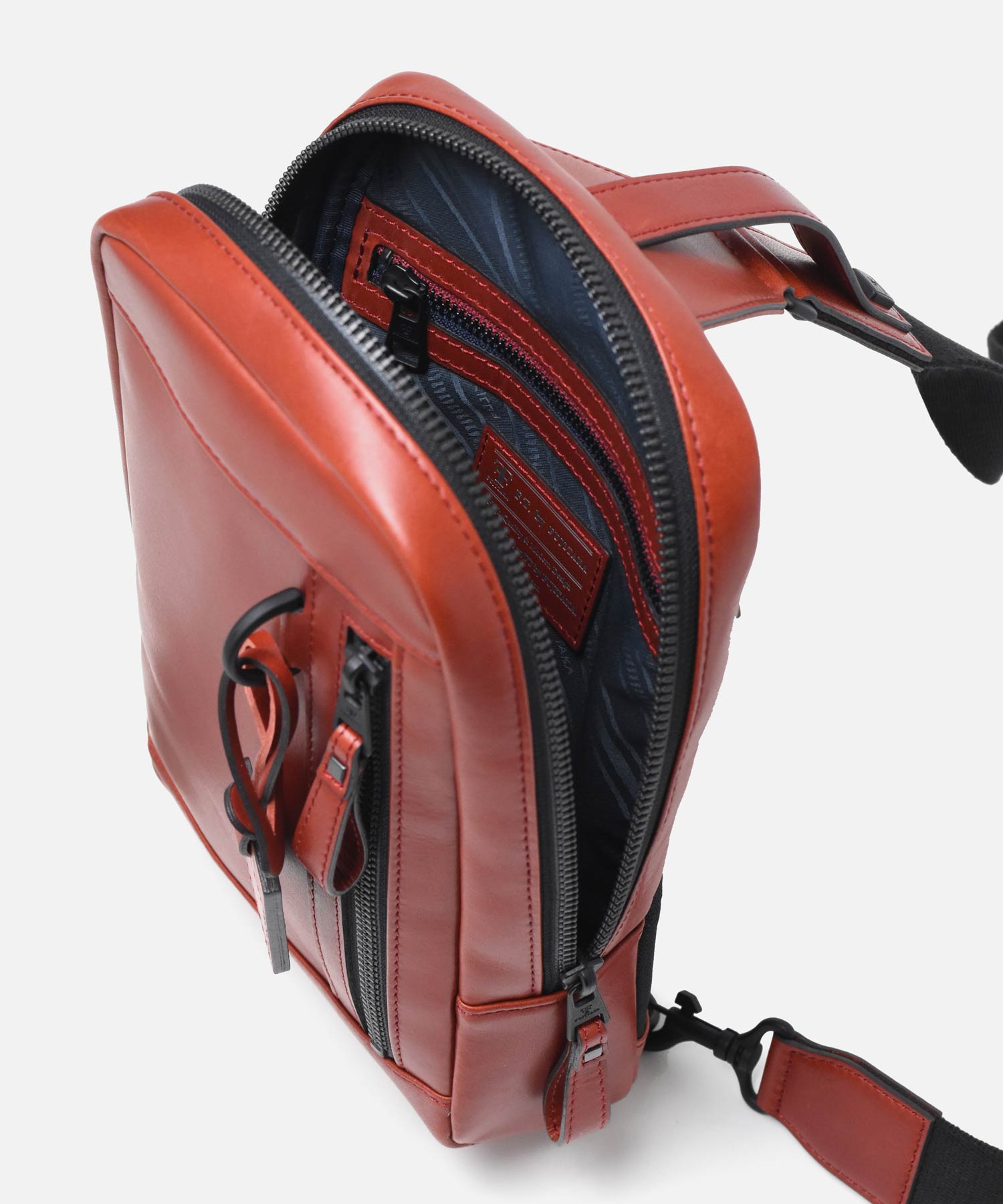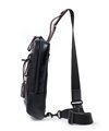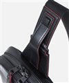 背面のオープンポケットは、すぐに取り出したいスマホや長札などの貴重品の収納に便利です。ショルダーベルトを留める金具は左右にあり、左右どちら掛けにも対応可能。