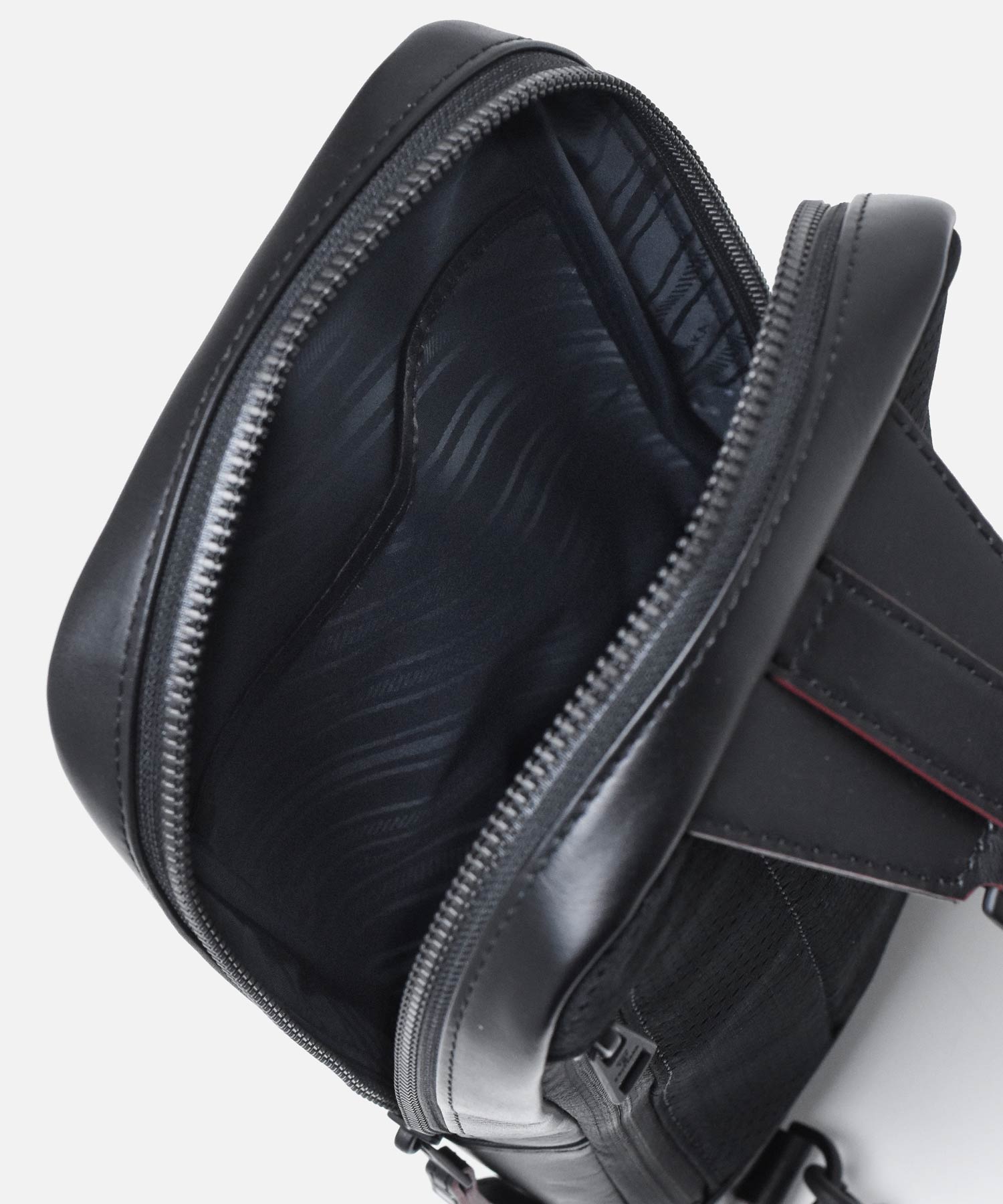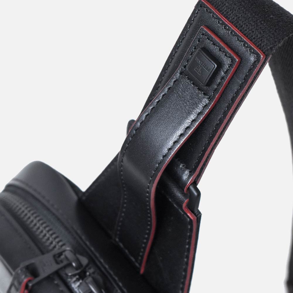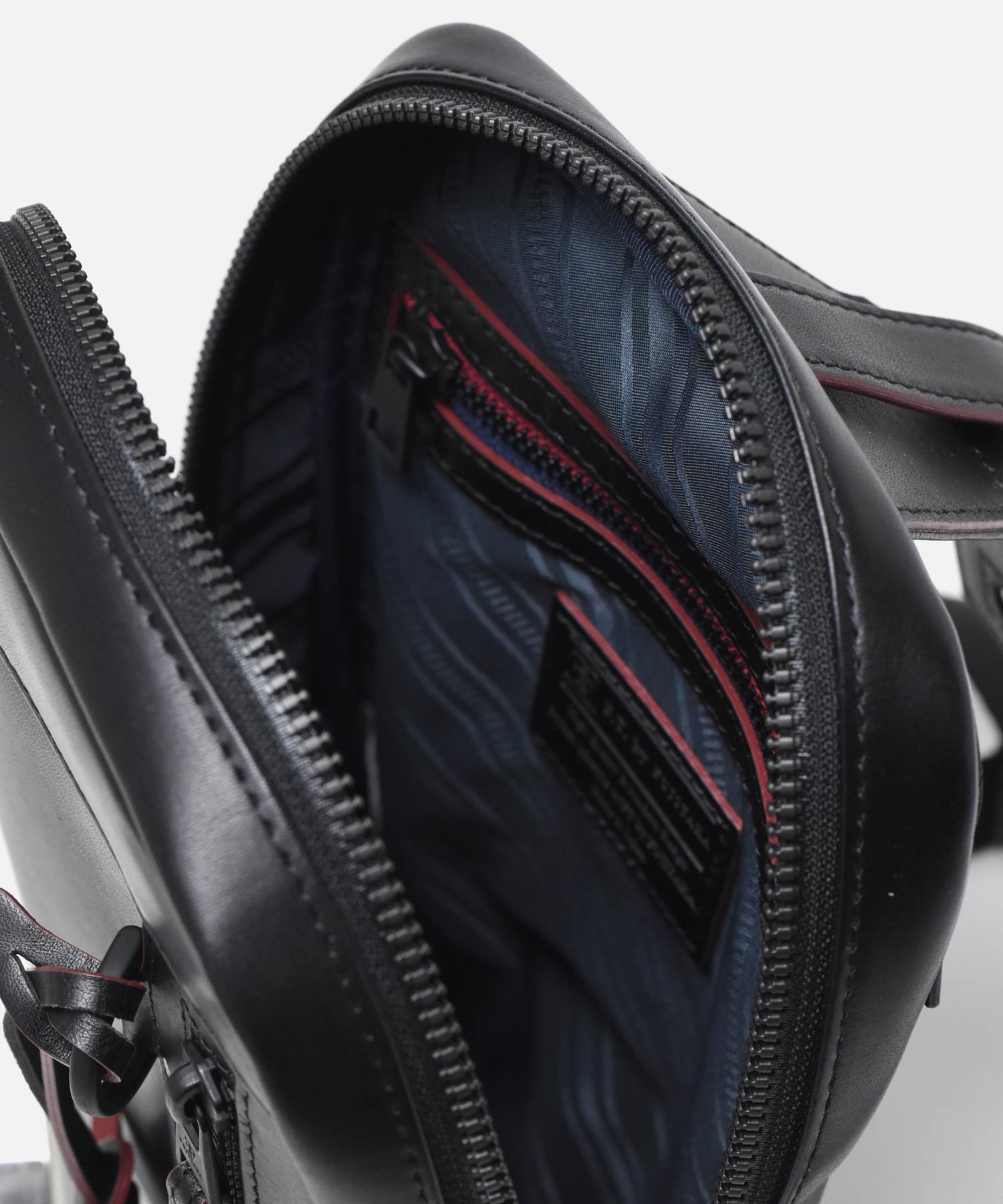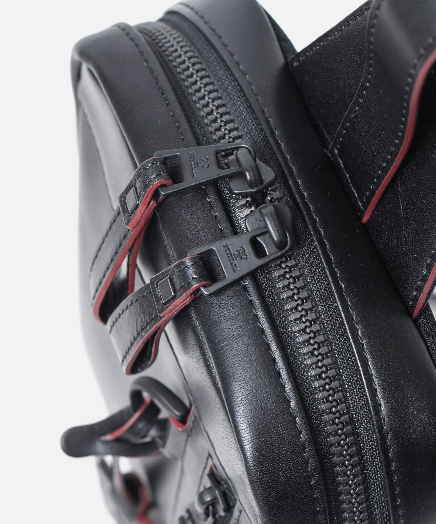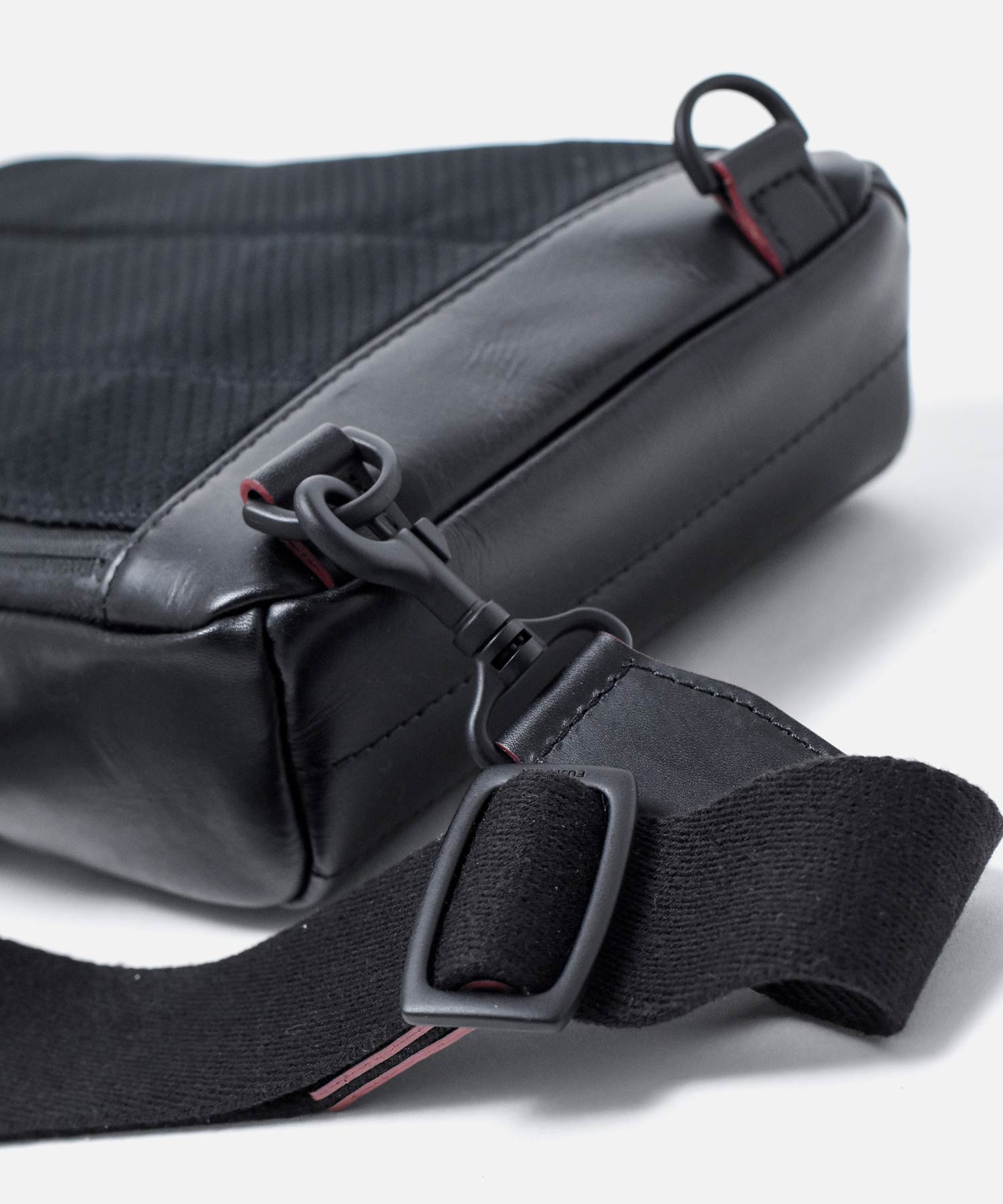 マットなブラックで統一された金具やファスナーはモダンでクールな印象を生み出します。