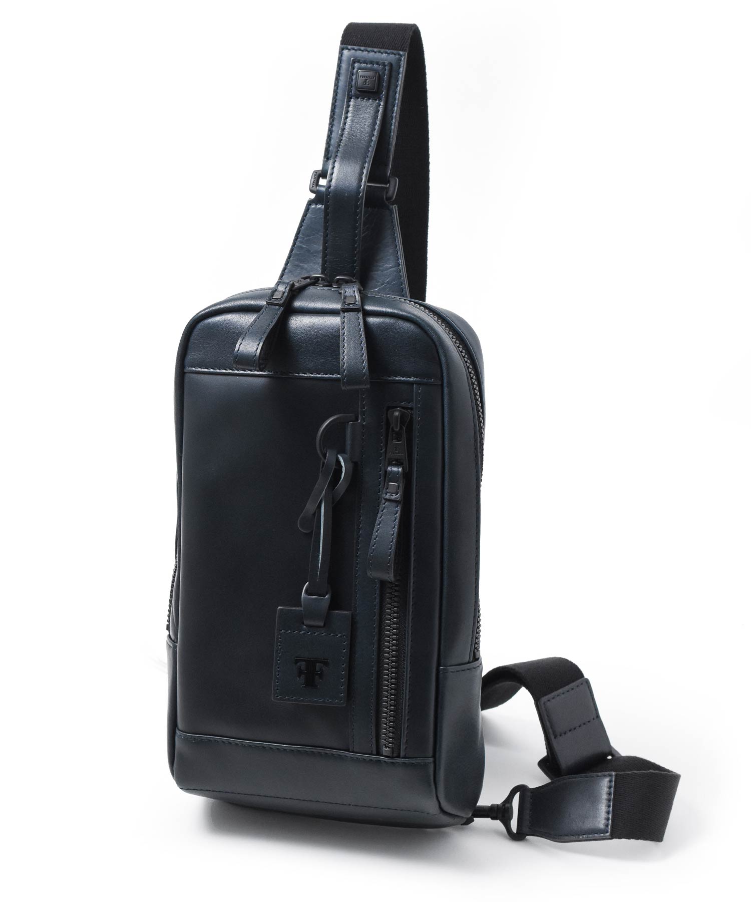 FT by FUJITAKA ホークシリーズのマイボトルサイズのレザーワンショルダーバッグ。500mlペットボトルやマイボトルも楽々収納。背面のオープンポケットは、すぐに取り出したいスマホや長札などの貴重品の収納に便利です。左右どちら掛けにも対応した470gと軽量なレザーワンショルダーバッグ(ボディバッグ)です。