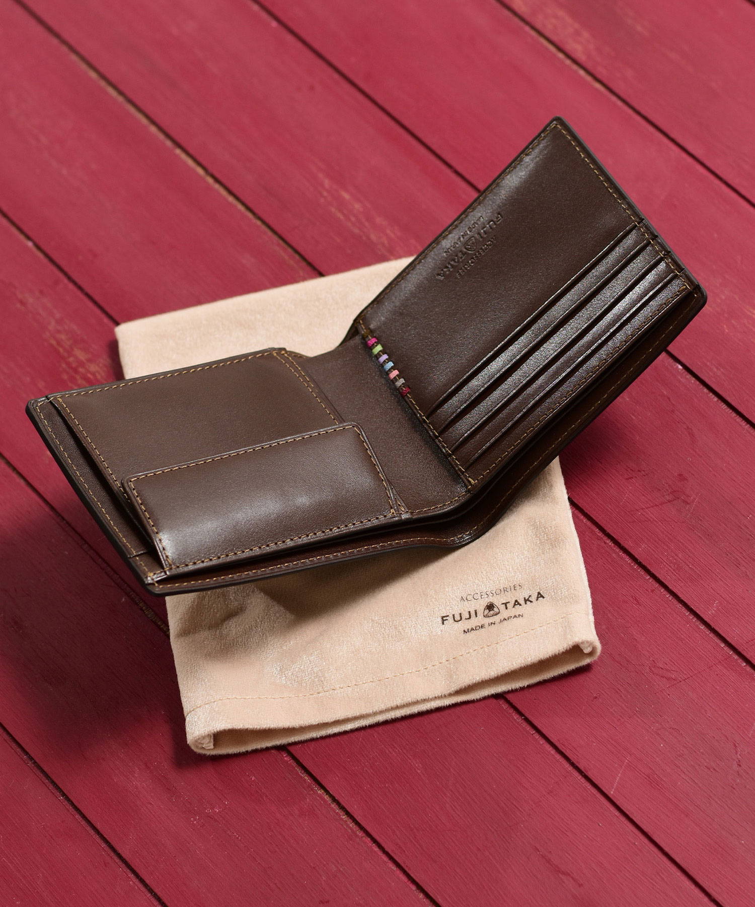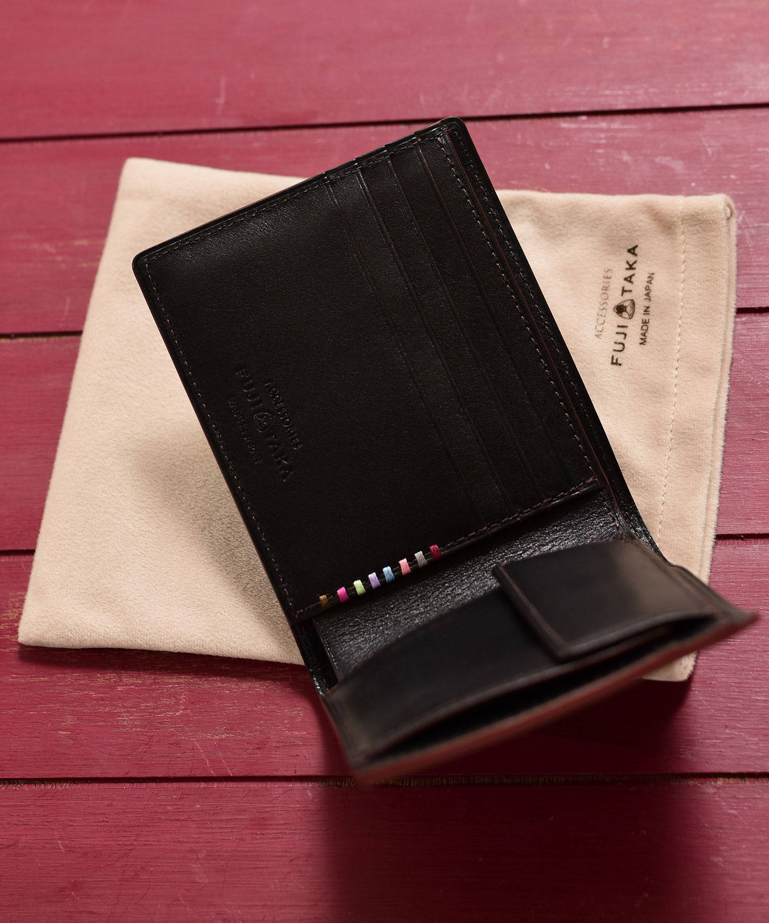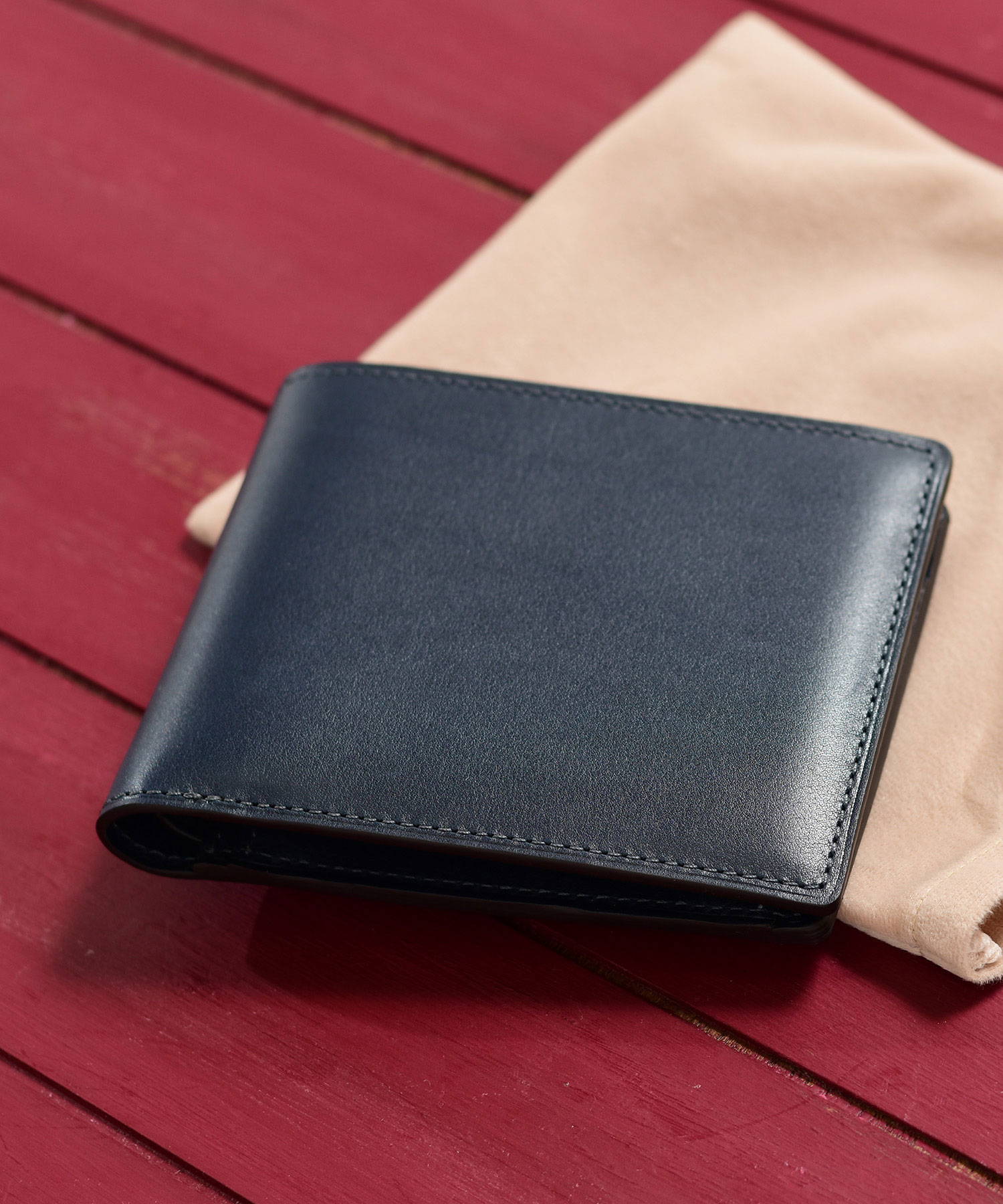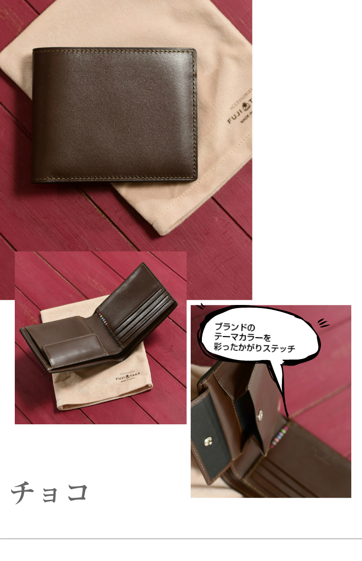 フランスデュプイ社の最高級ボックスカーフでつくられたフジタカの二つ折り財布。最高級カーフの専門タンナーであるフランスデュプイ社"シャトーブリアン"を使用し通常のボックスカーフよりも銀面が柔らかく優しいタッチ感やキメの細かい美しい肌目が魅力の二つ折り財布です。