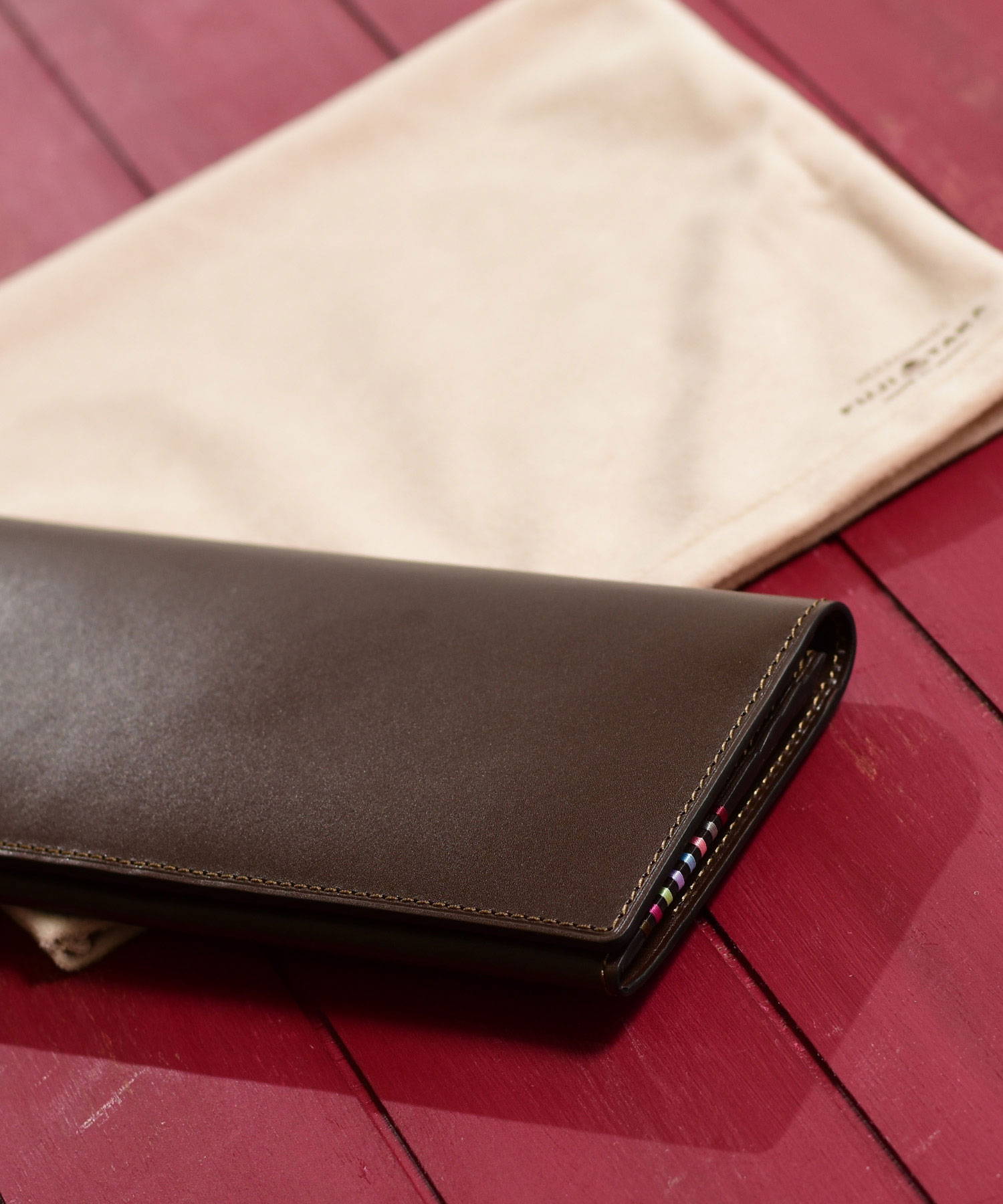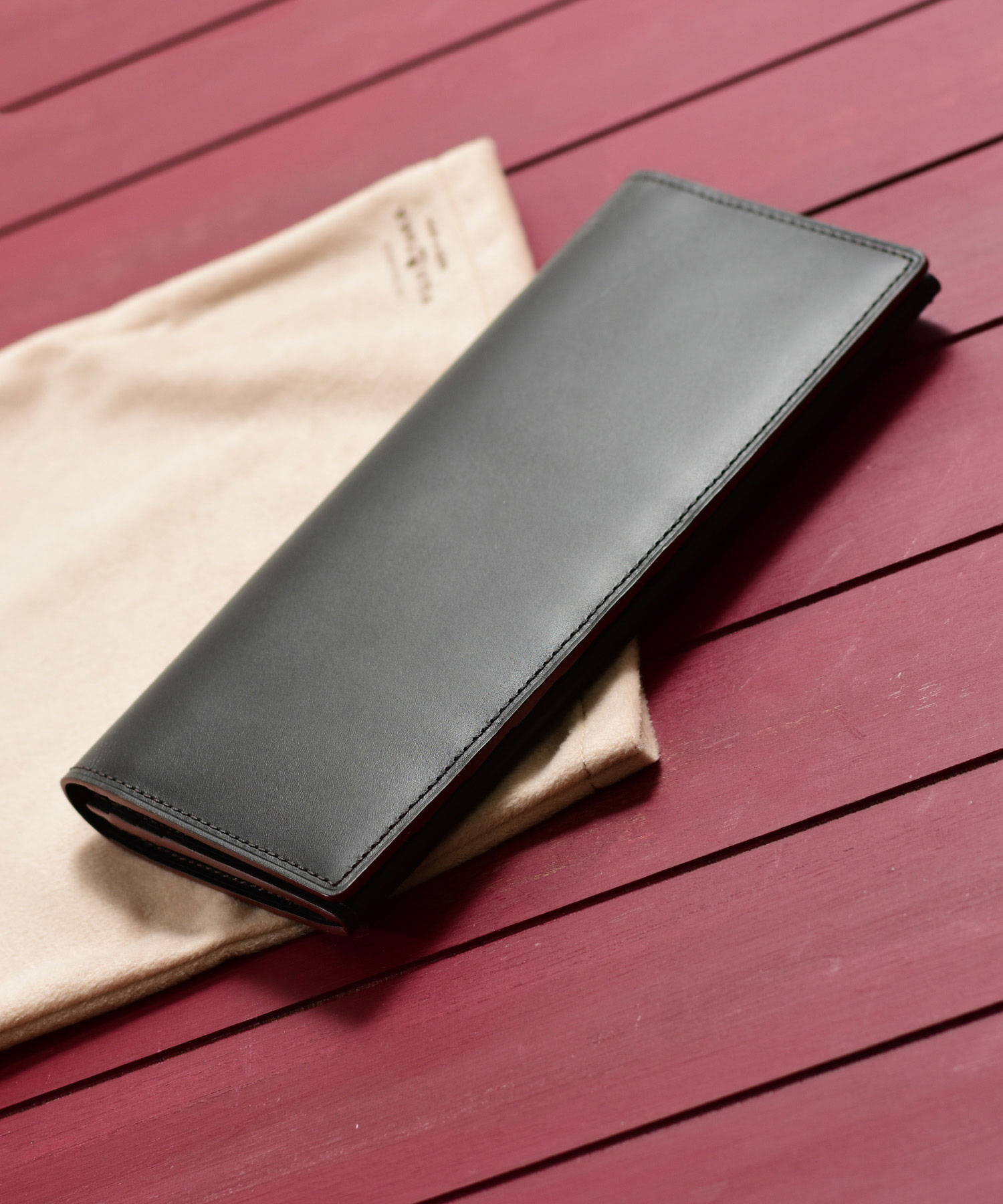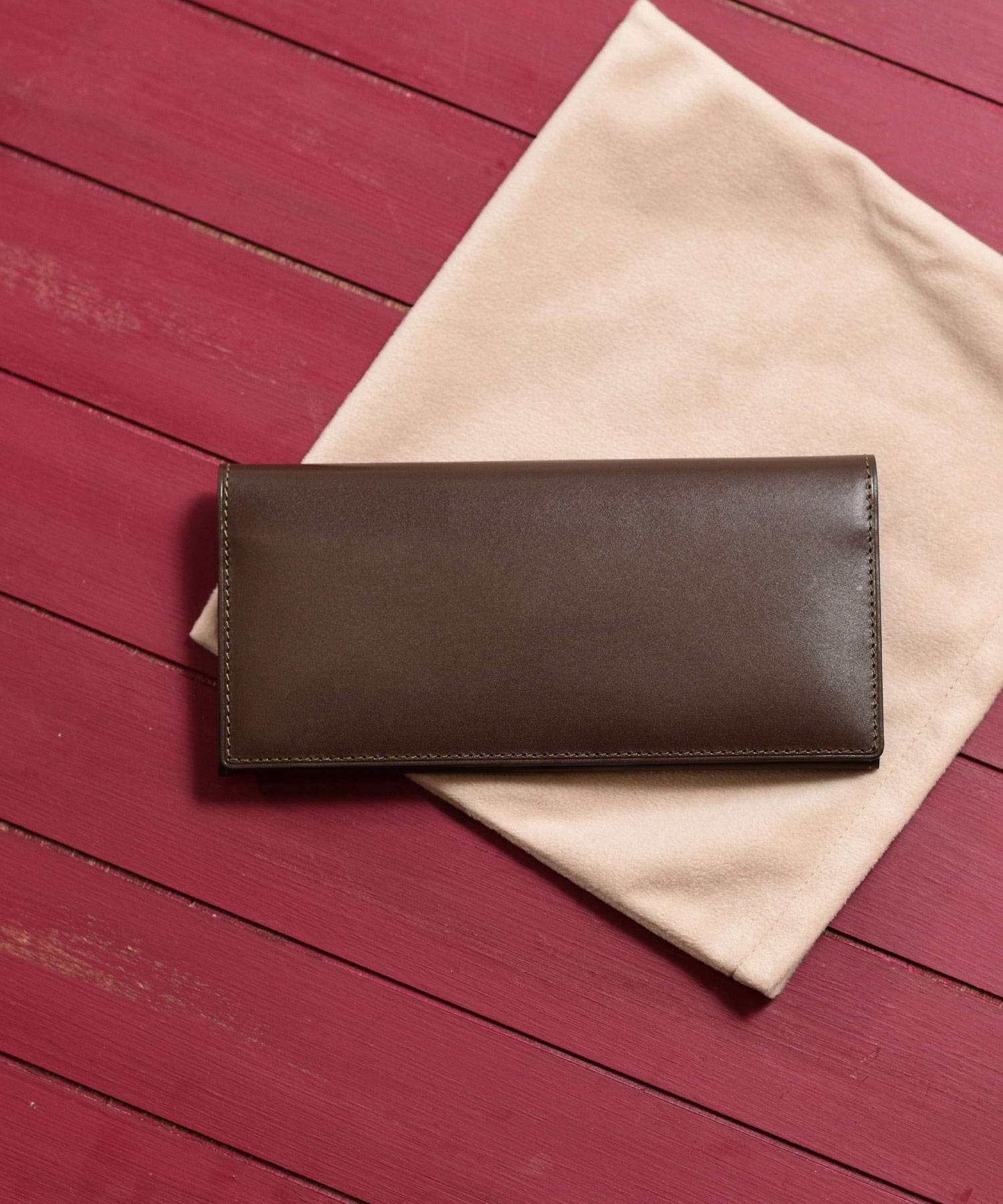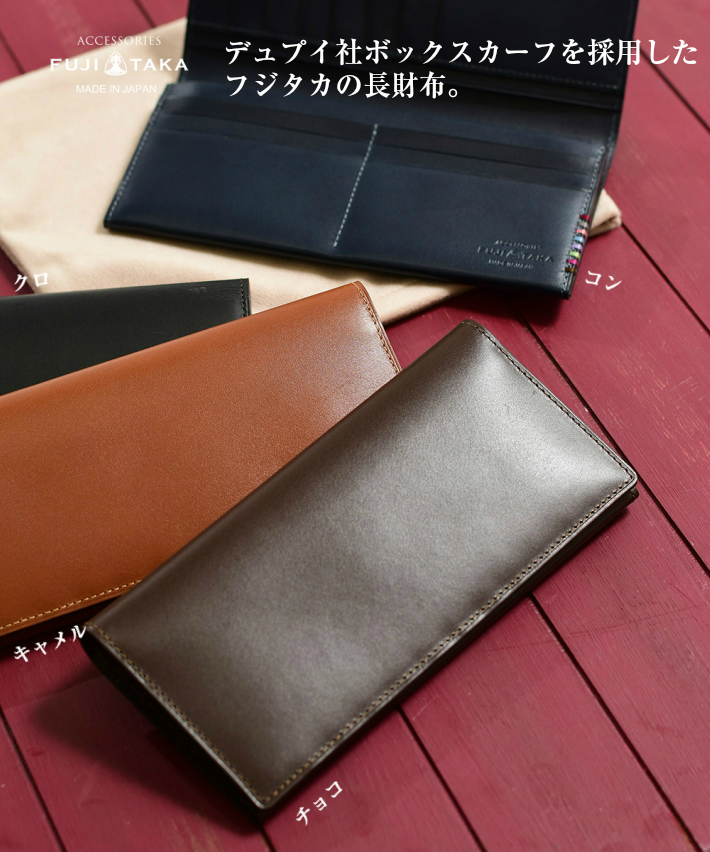 フランスデュプイ社の最高級ボックスカーフでつくられたフジタカの長財布。最高級カーフの専門タンナーであるフランスデュプイ社"シャトーブリアン"を使用し通常のボックスカーフよりも銀面が柔らかく優しいタッチ感やキメの細かい美しい肌目が魅力の長財布です。