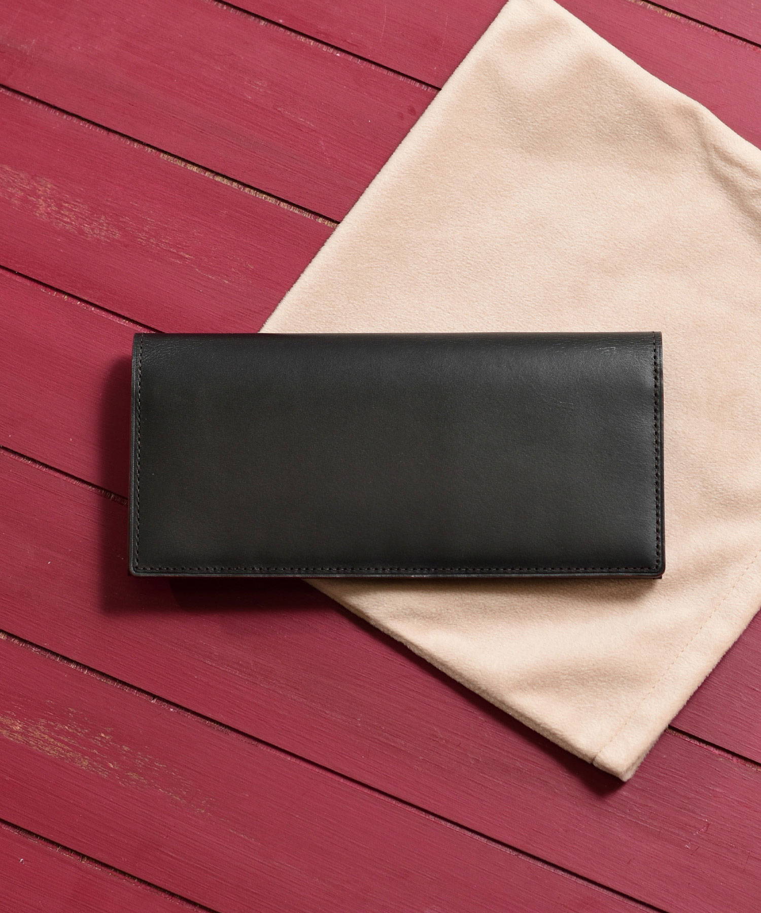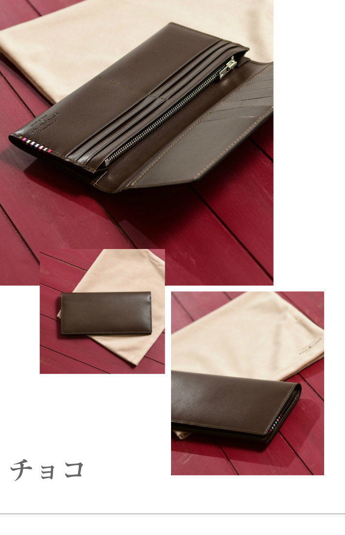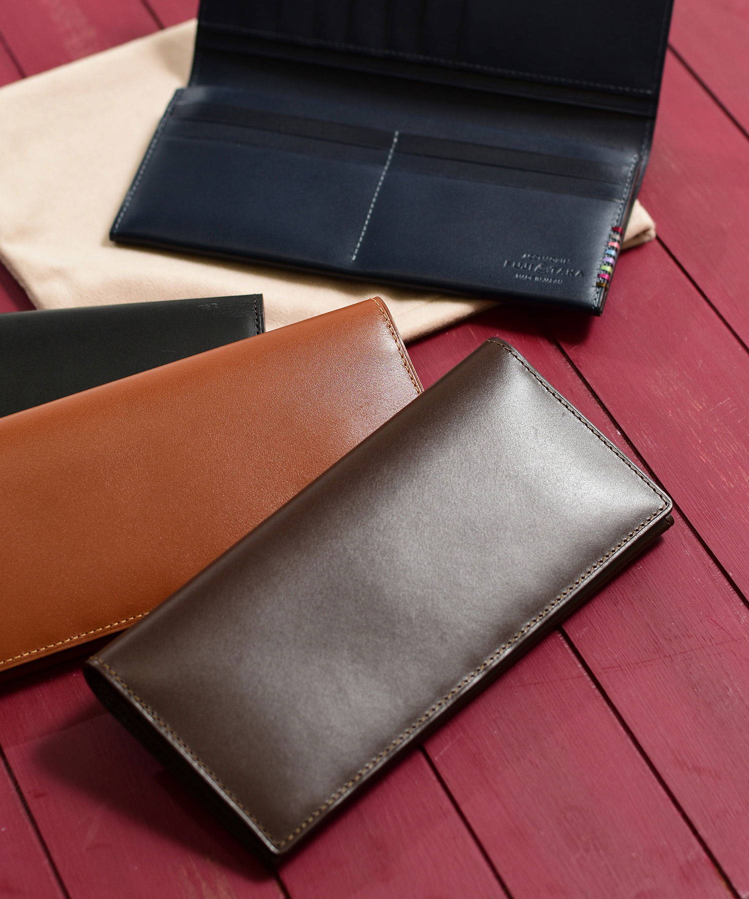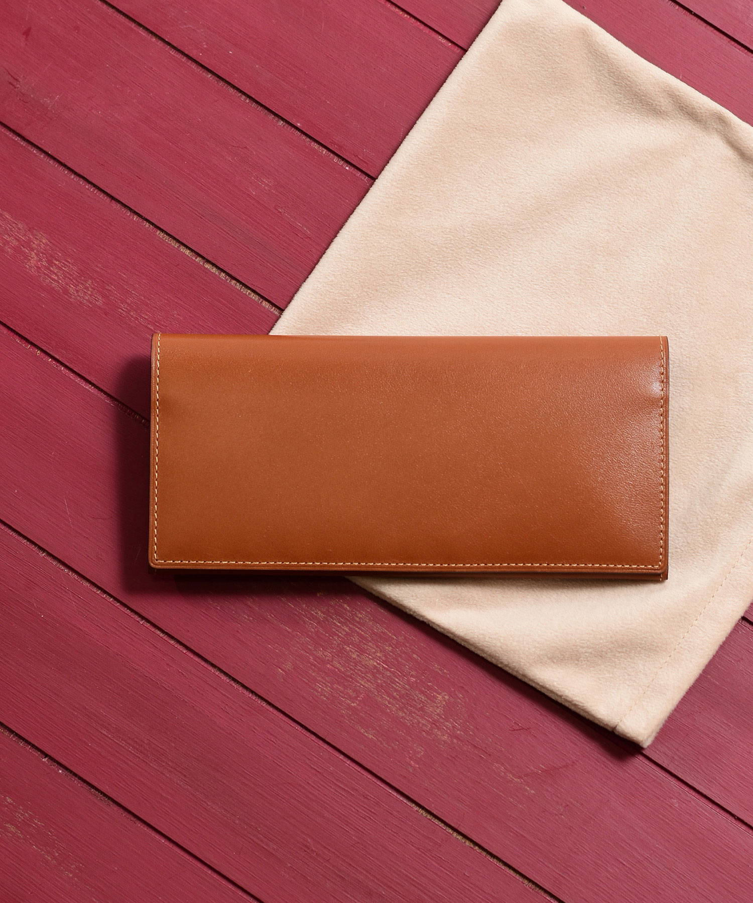 フランスデュプイ社の最高級ボックスカーフでつくられたフジタカの長財布。最高級カーフの専門タンナーであるフランスデュプイ社"シャトーブリアン"を使用し通常のボックスカーフよりも銀面が柔らかく優しいタッチ感やキメの細かい美しい肌目が魅力の長財布です。